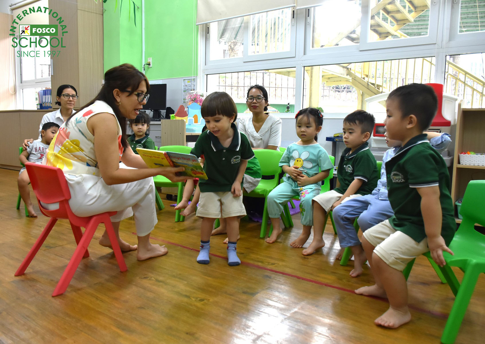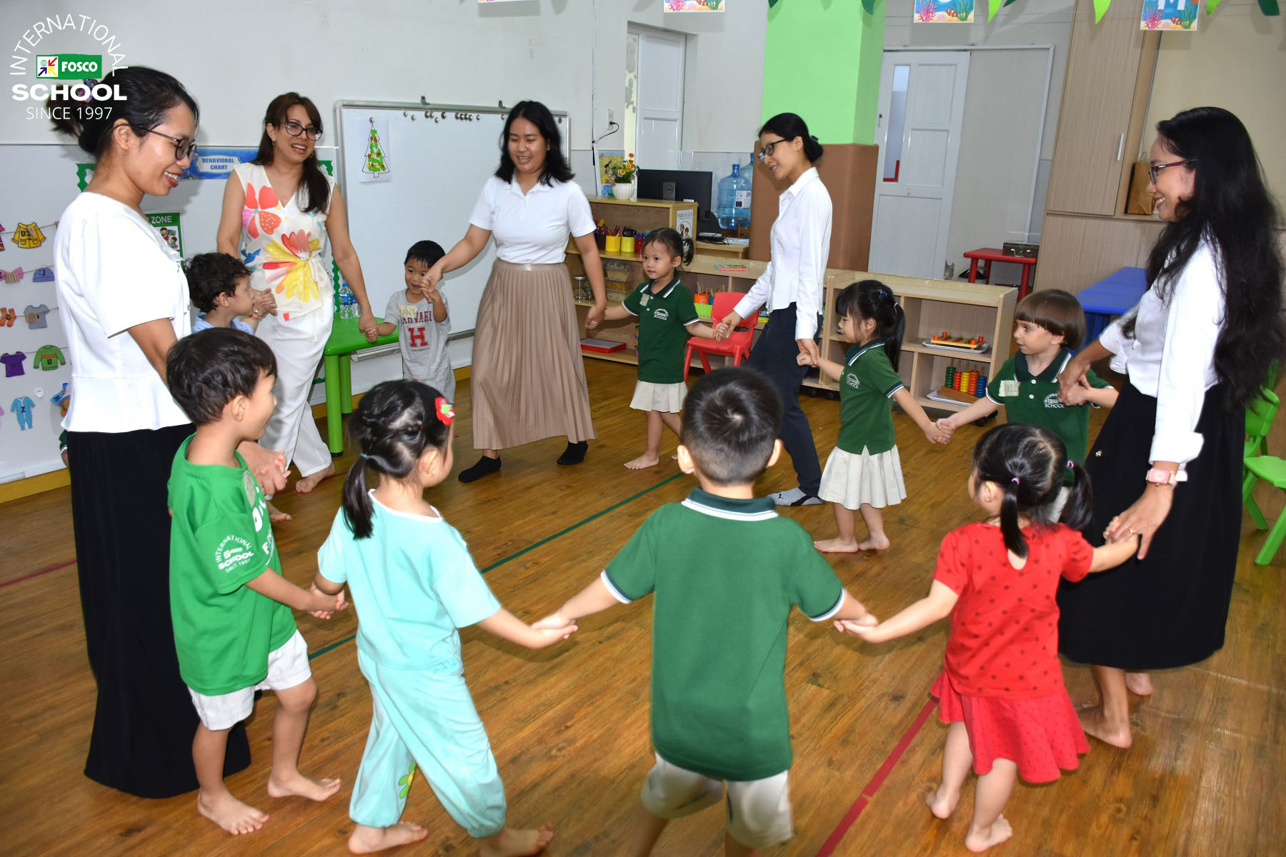Trong lớp, các em được học múa và chơi cùng cô Ariadne - phụ huynh của em Axel, cô đã sắp xếp thời gian trong lịch trình bận rộn của mình để đến lớp dạy các em bài hát đáng yêu này.