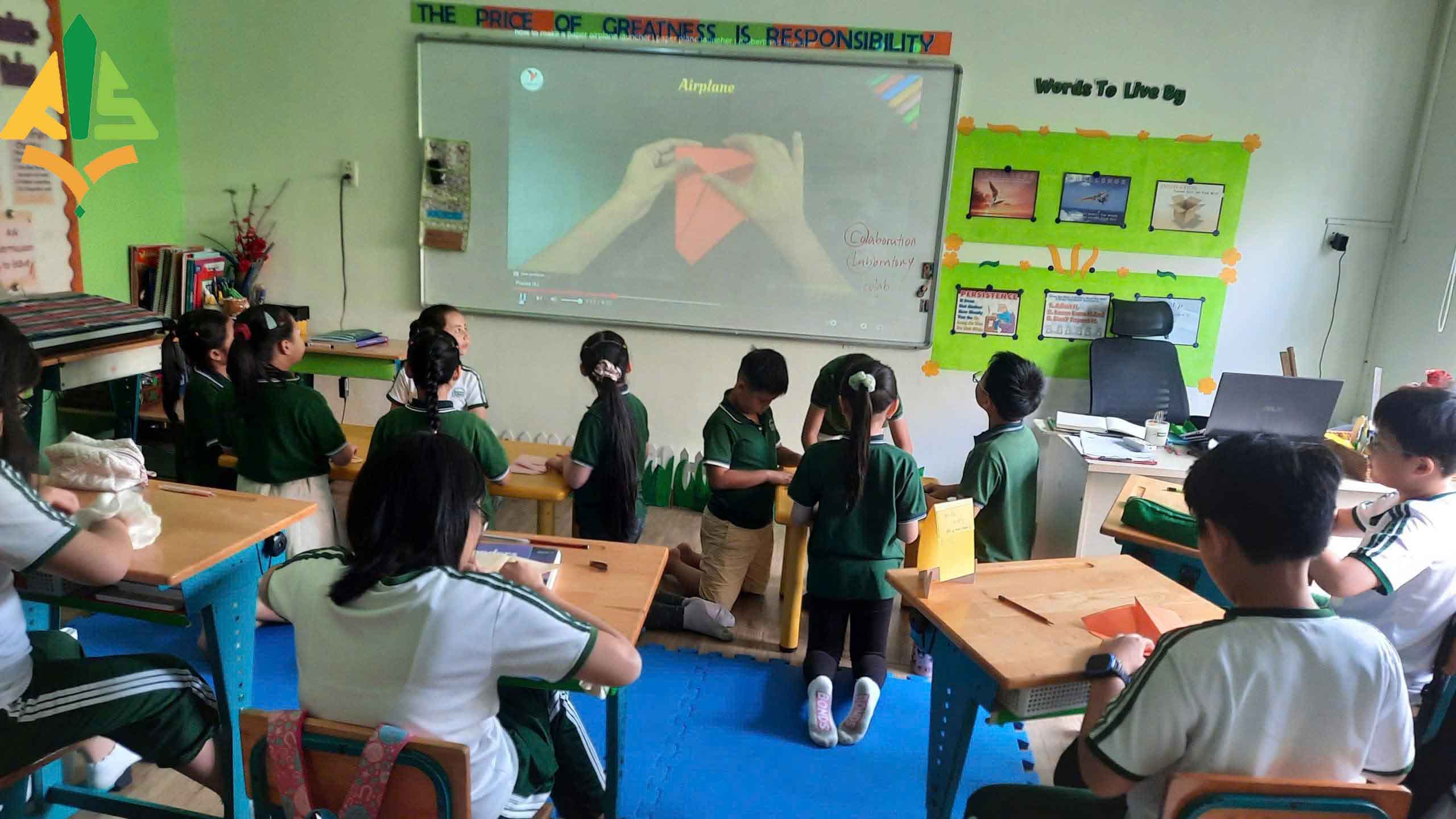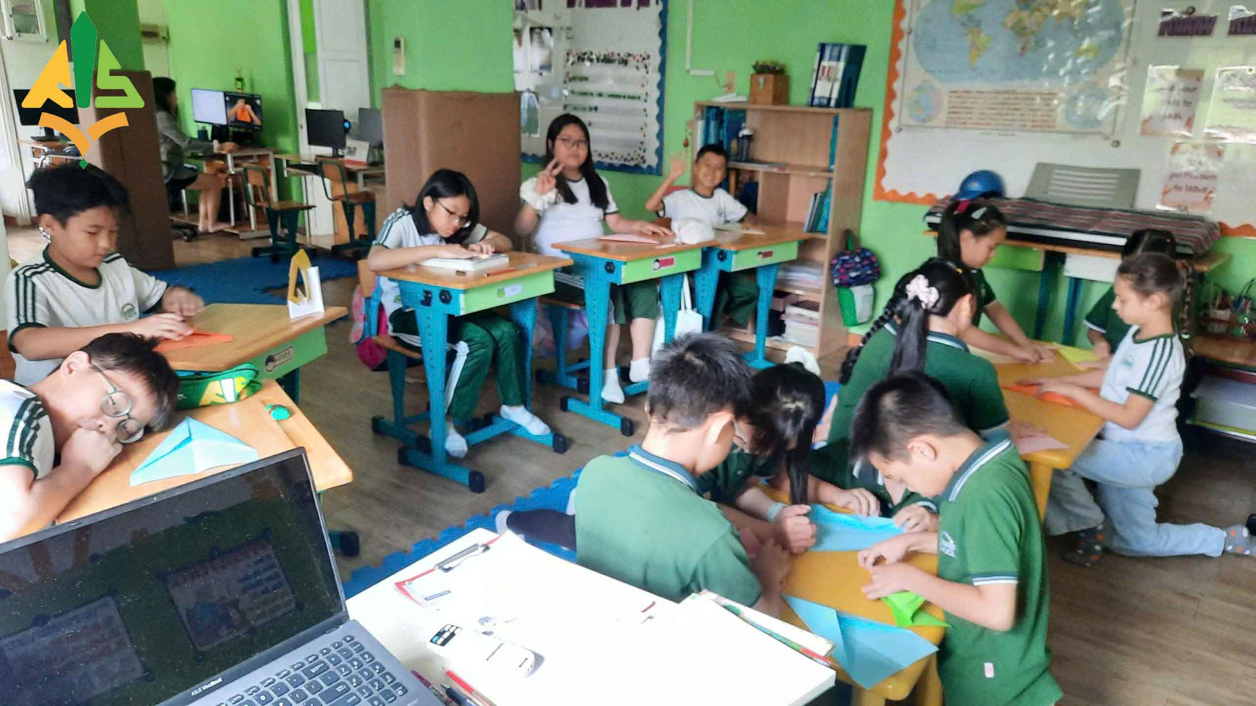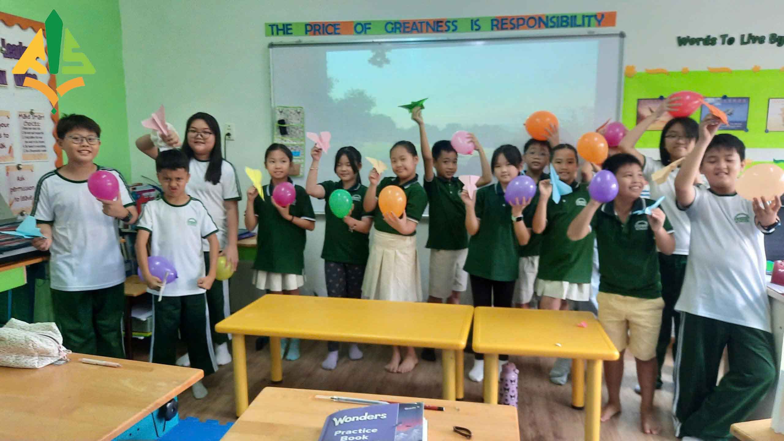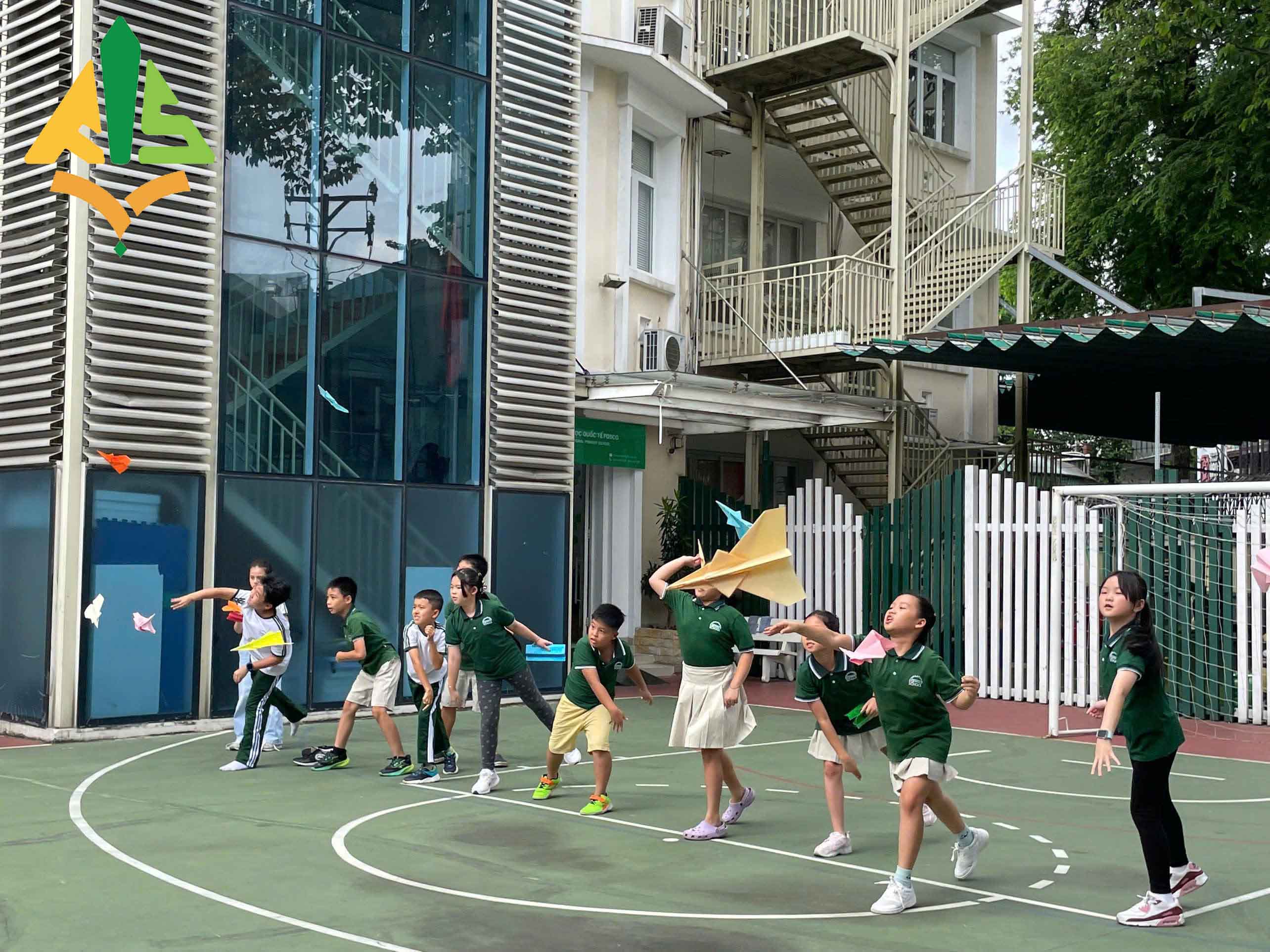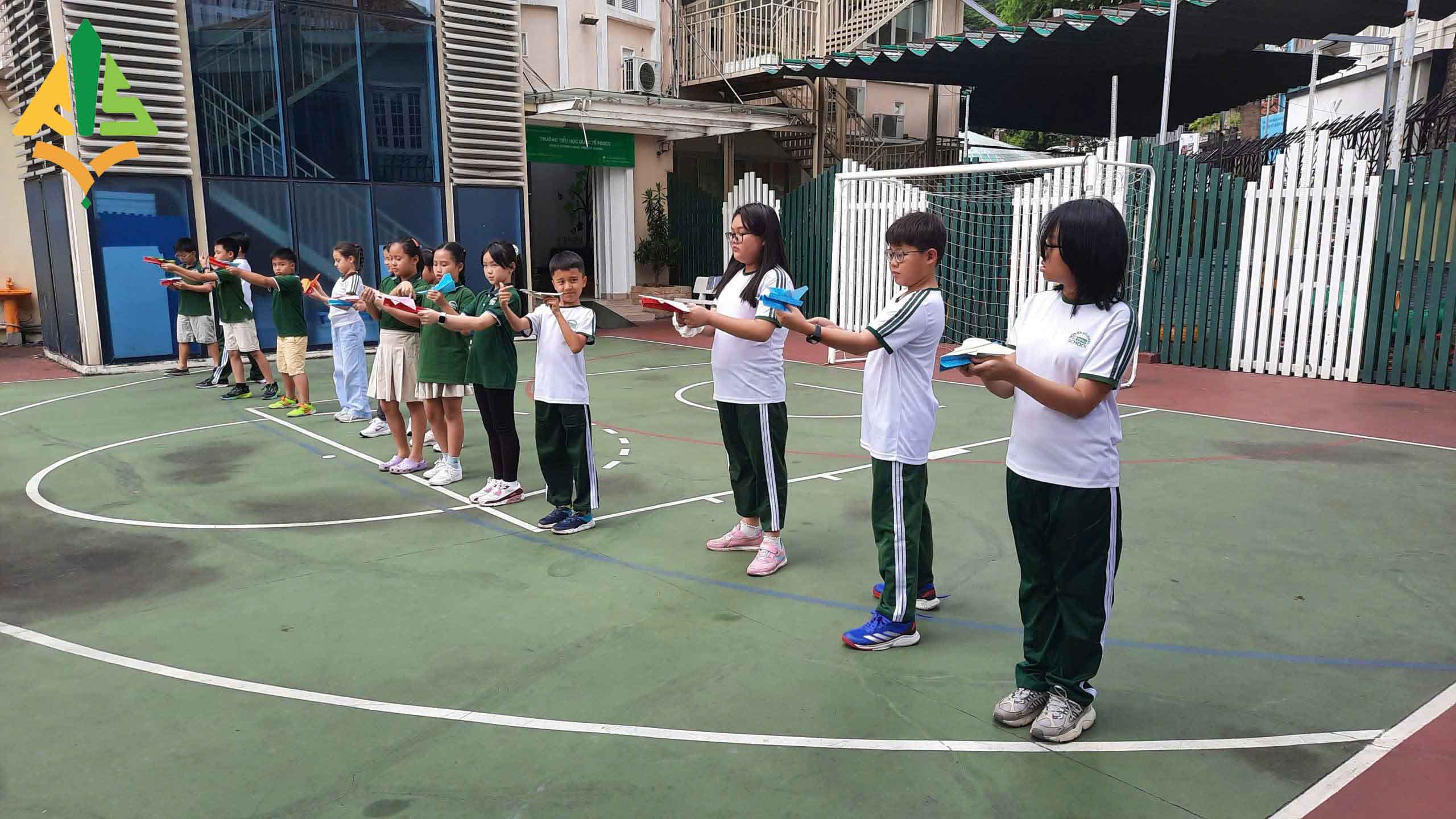 ✨✈️ Buổi hoạt động hợp tác đầu tiên của năm học! Các em học sinh lớp 5 và lớp 4 đáng yêu của chúng ta đã cùng nhau gấp máy bay giấy, ném bóng bay và thử nghiệm súng phóng (cùng một số cú ném tự do đỉnh cao!). 🚀💥 Thật là một khởi đầu năm học tuyệt vời - bay cao nào, các nhà vô địch! 🌟