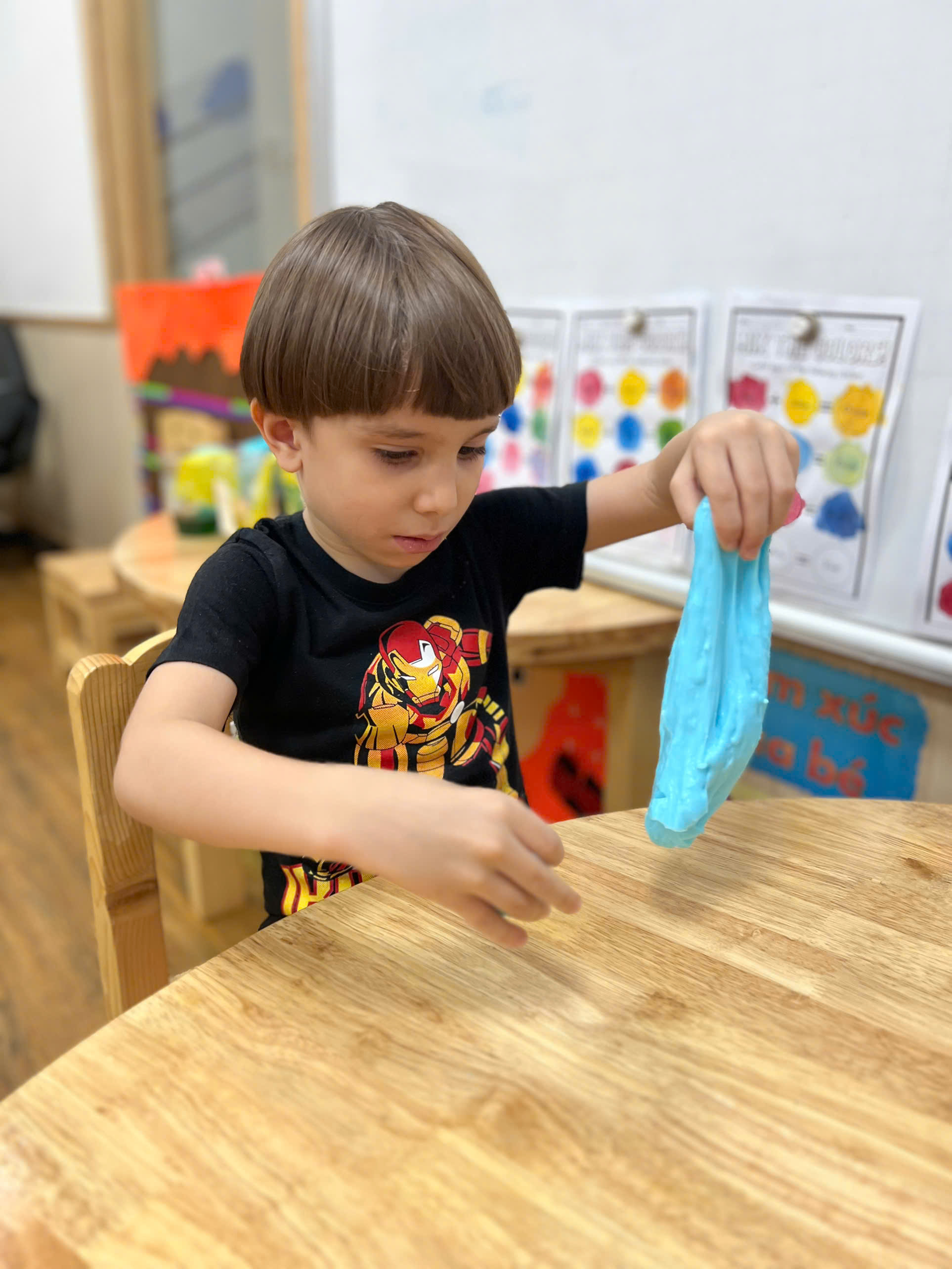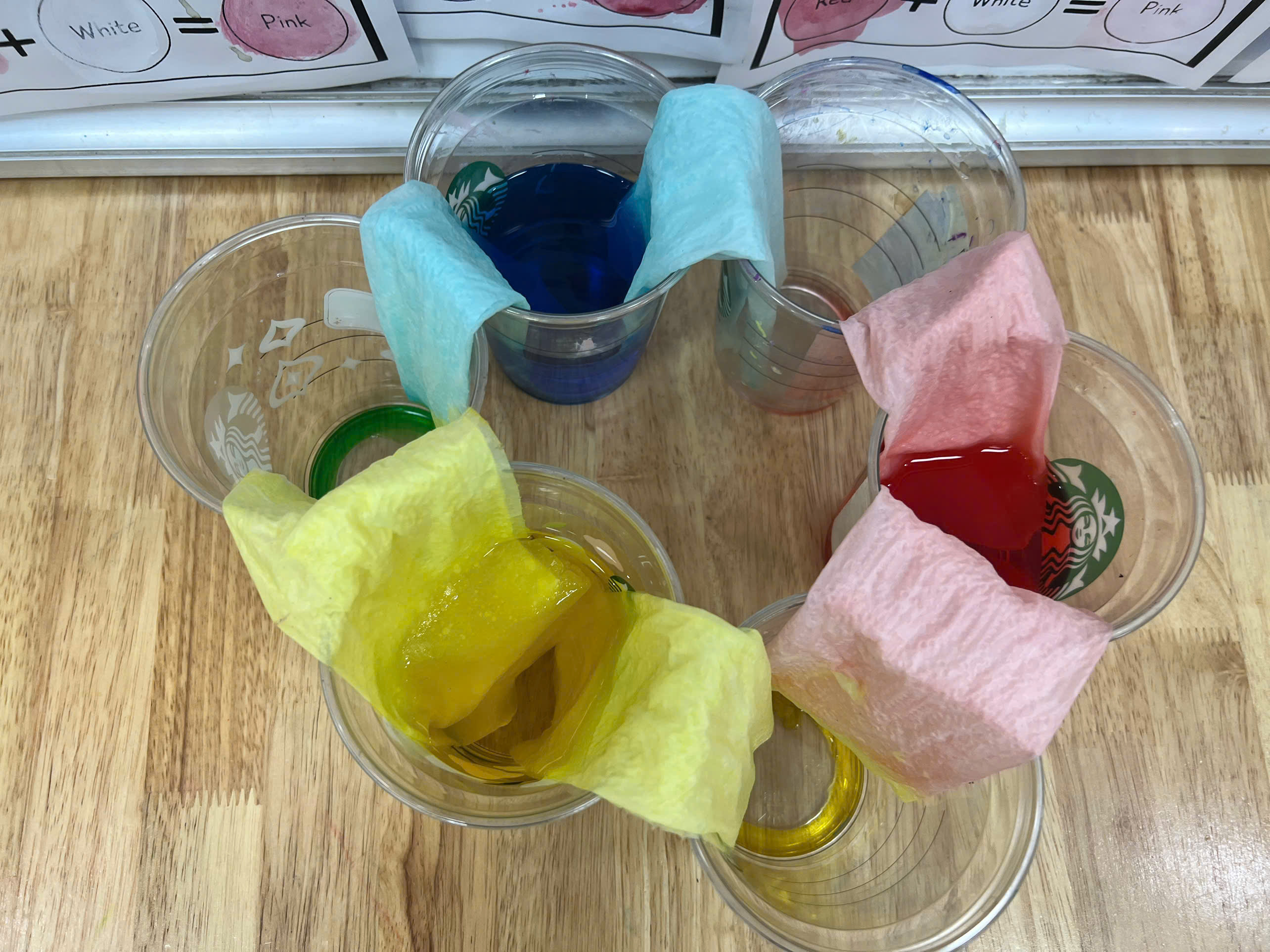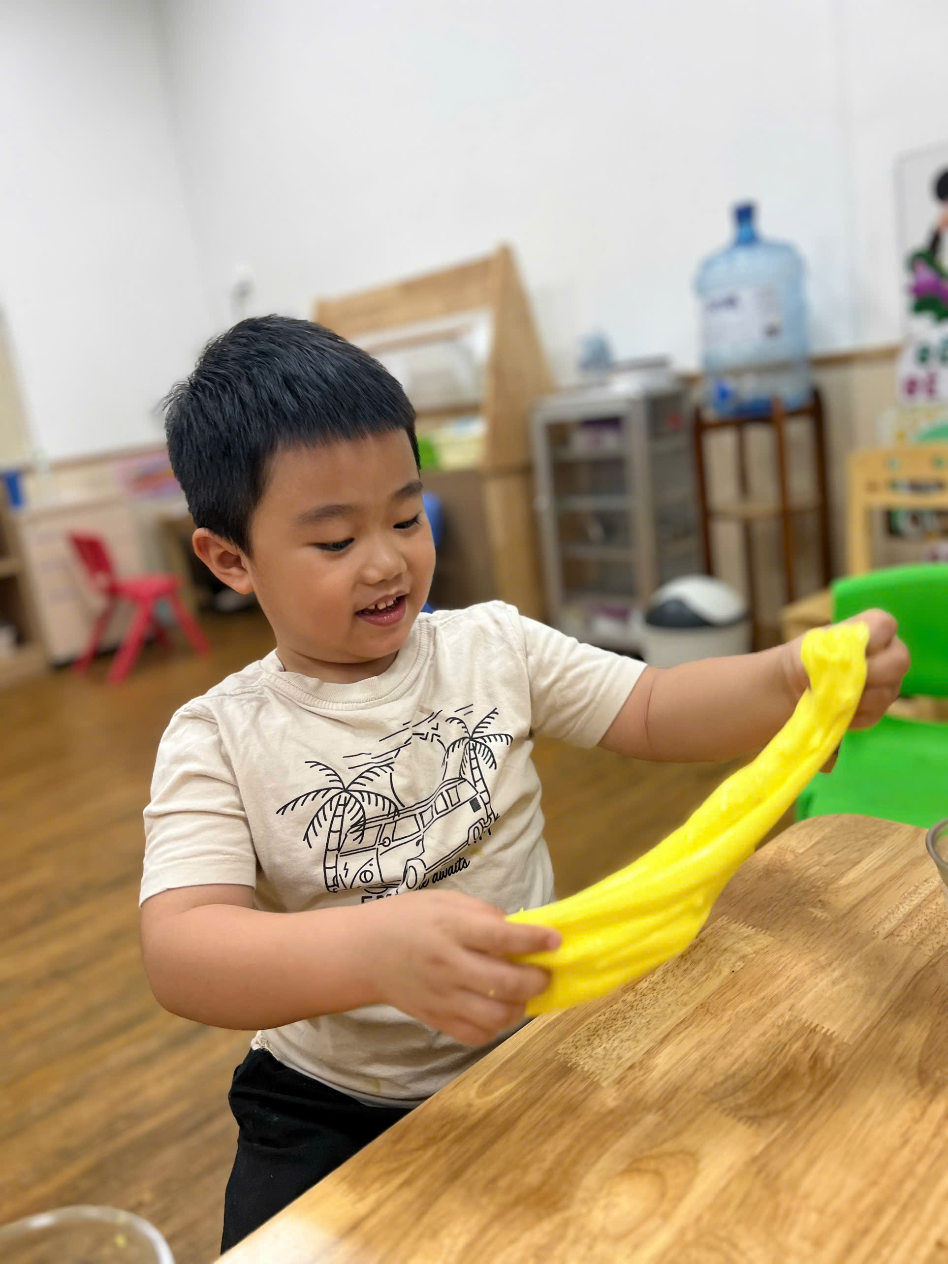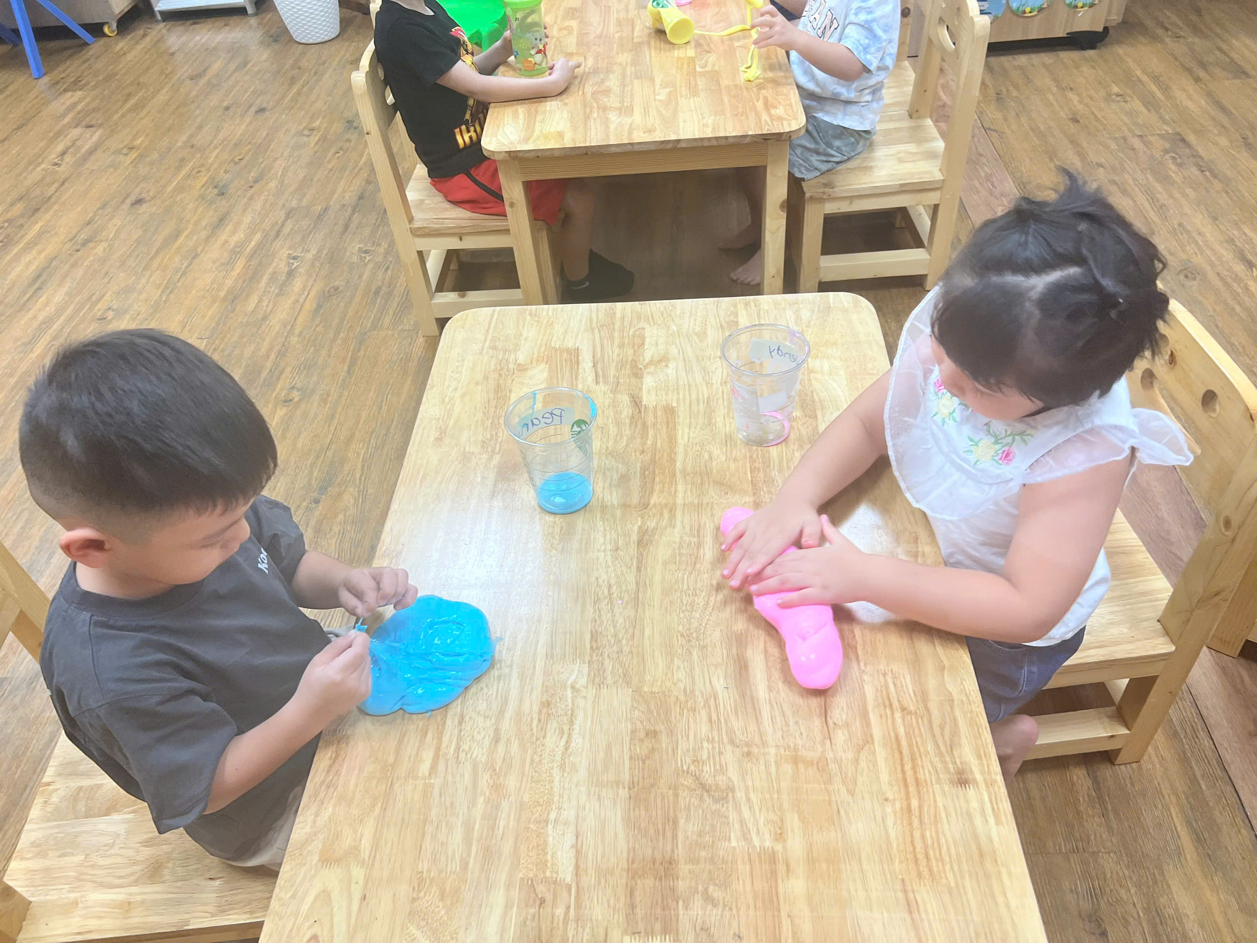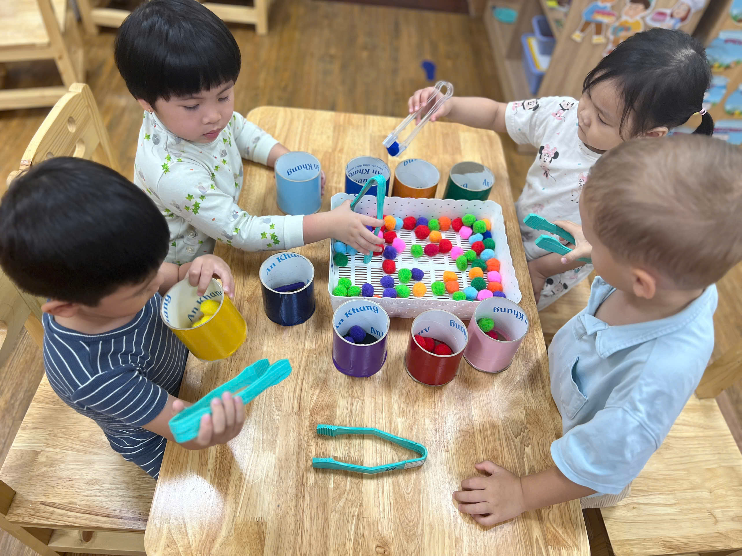 Các em đã thử thách kỹ năng dự đoán của mình bằng cách đoán xem chúng sẽ tạo ra màu mới nào khi trộn hai màu khác với nhau 🎨 Sự tò mò của các em được khơi dậy thông qua các hoạt động thực hành như Thí nghiệm Bước đi Cầu vồng, nơi các em vô cùng kinh ngạc khi chứng kiến các màu cơ bản di chuyển một cách kỳ diệu từ cốc này sang cốc khác và một màu mới xuất hiện 🌈 Các em cũng được khám phá các phản ứng hóa học và các kết cấu khác nhau bằng cách làm Slime 👨🔬 👩🔬. Để rèn luyện kỹ năng quan sát, các em đã thích thú phân loại những quả cầu lông nhiều màu sắc và ghép chúng vào đúng cốc màu. Đó là một tuần tràn ngập sự ngạc nhiên, khám phá và rất nhiều bài học đầy màu sắc và thú vị! 🥽🥼🧤🧪🌈