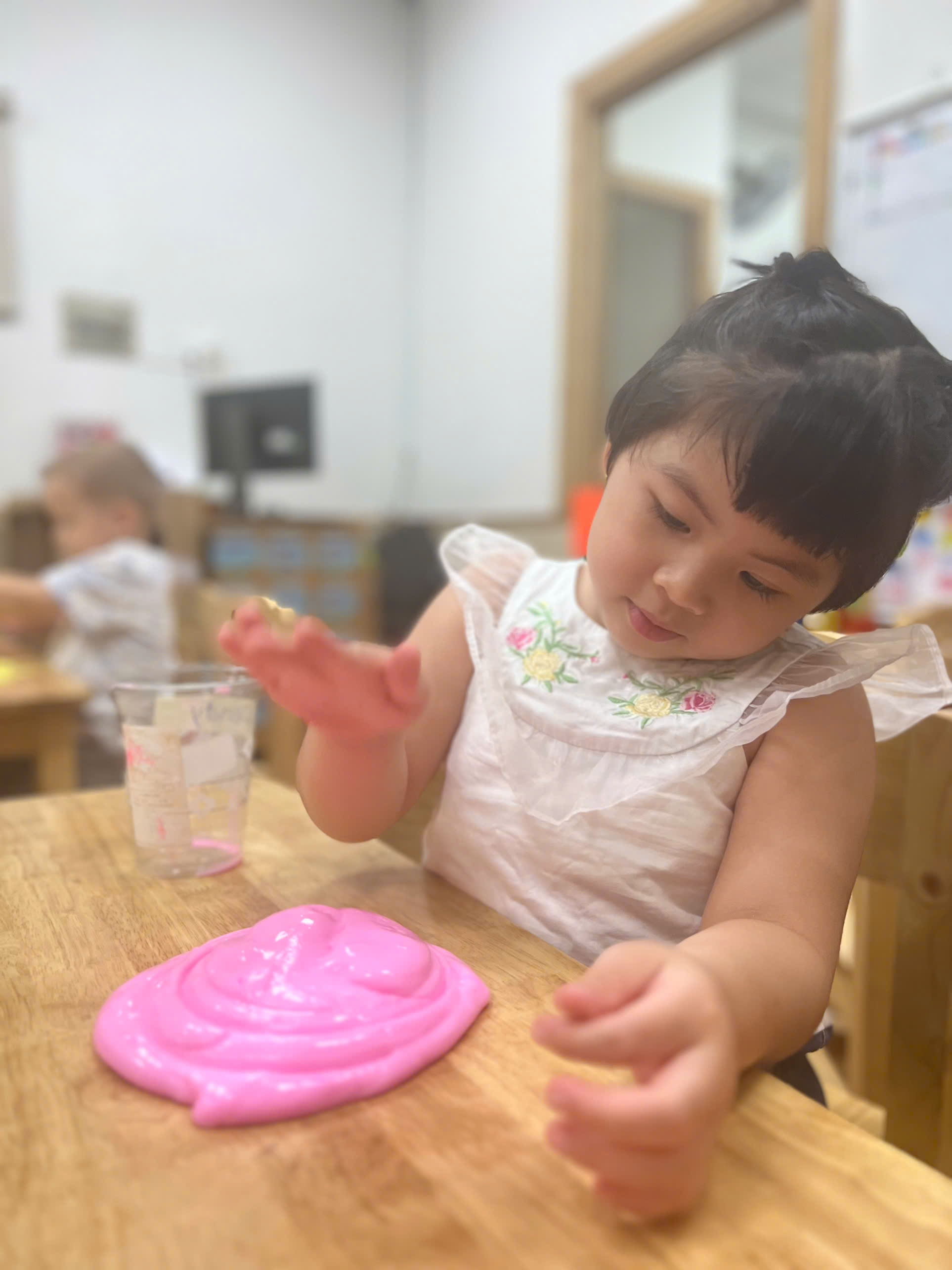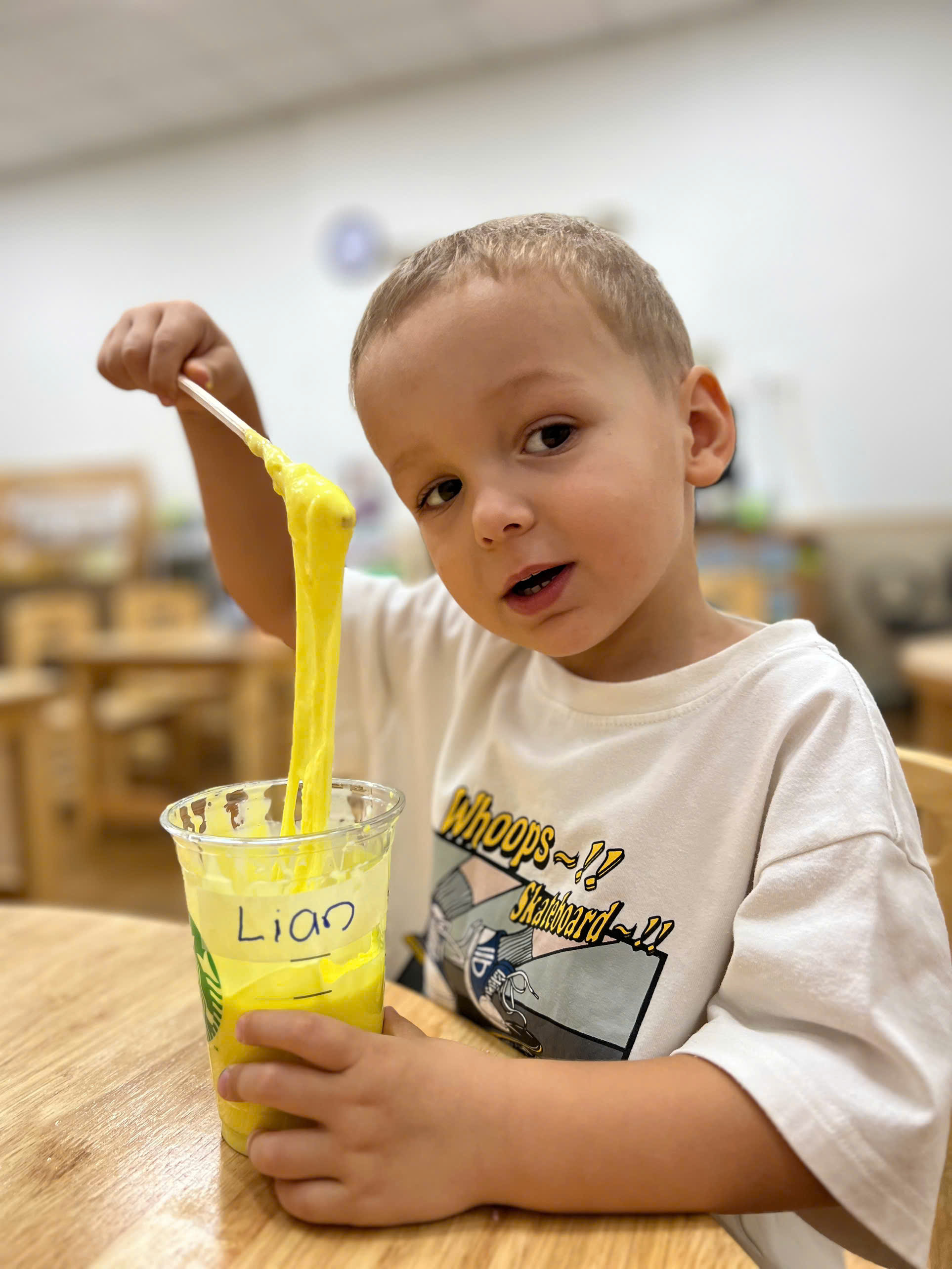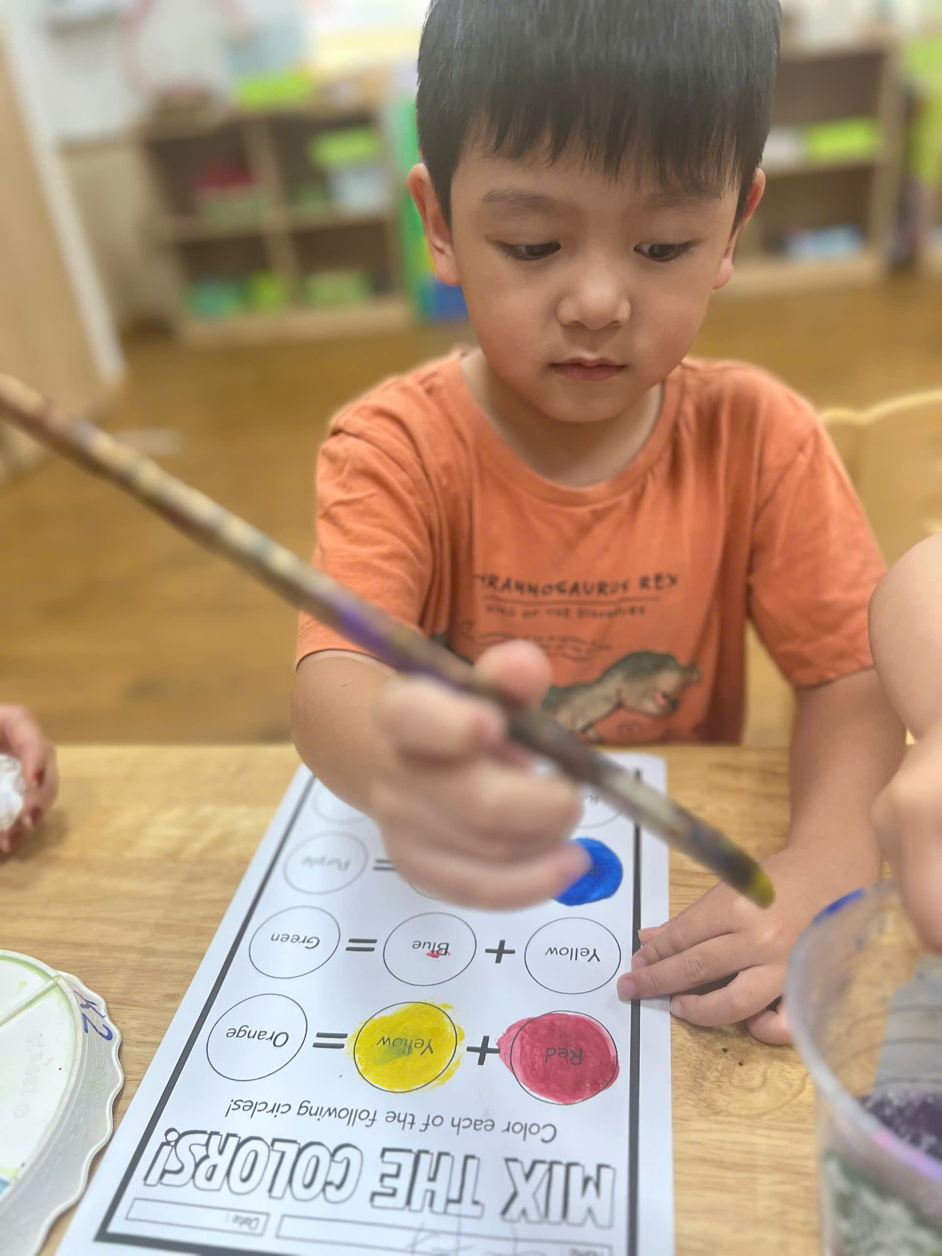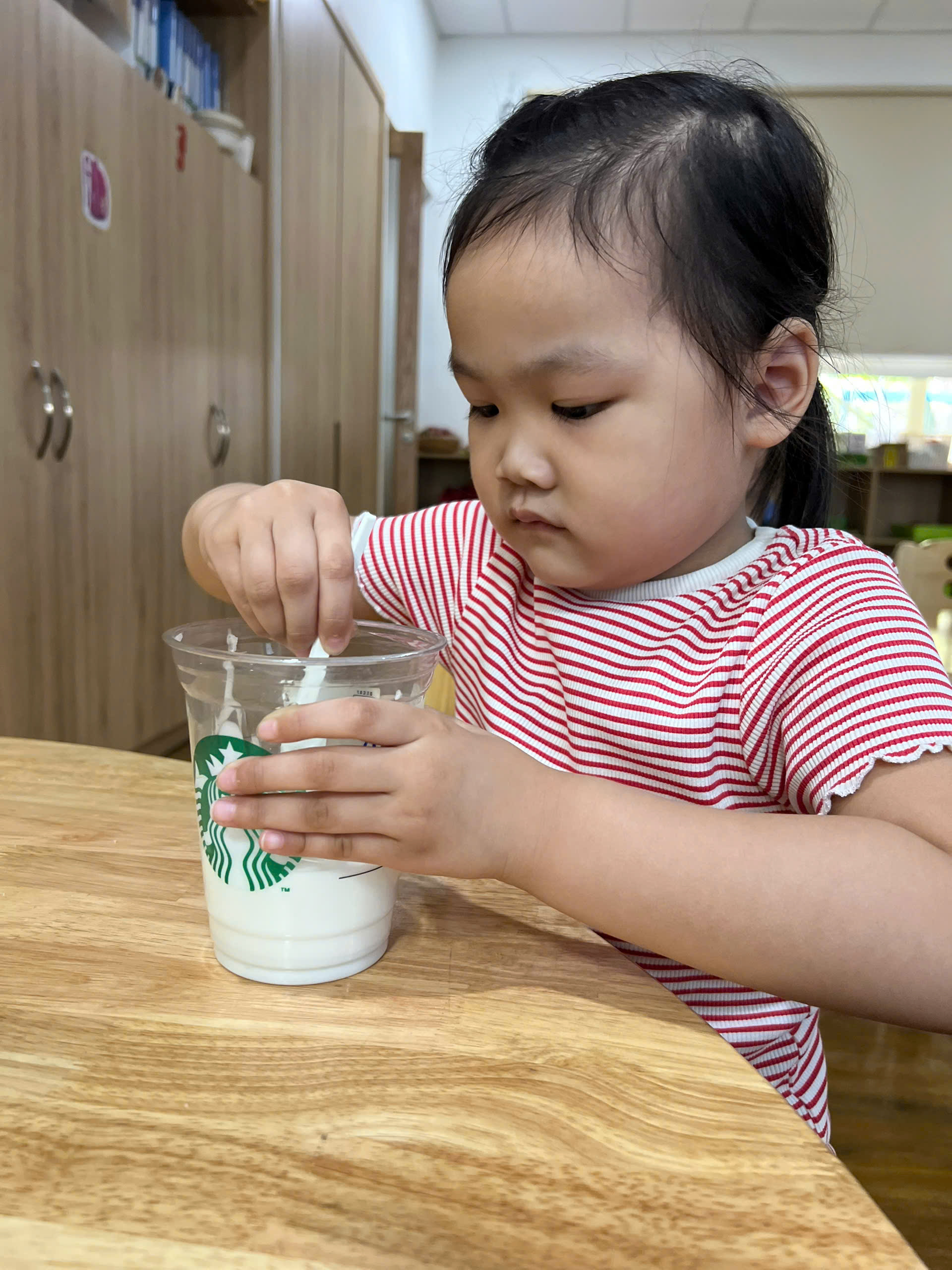 Các em đã thử thách kỹ năng dự đoán của mình bằng cách đoán xem chúng sẽ tạo ra màu mới nào khi trộn hai màu khác với nhau 🎨 Sự tò mò của các em được khơi dậy thông qua các hoạt động thực hành như Thí nghiệm Bước đi Cầu vồng, nơi các em vô cùng kinh ngạc khi chứng kiến các màu cơ bản di chuyển một cách kỳ diệu từ cốc này sang cốc khác và một màu mới xuất hiện 🌈 Các em cũng được khám phá các phản ứng hóa học và các kết cấu khác nhau bằng cách làm Slime 👨🔬 👩🔬. Để rèn luyện kỹ năng quan sát, các em đã thích thú phân loại những quả cầu lông nhiều màu sắc và ghép chúng vào đúng cốc màu. Đó là một tuần tràn ngập sự ngạc nhiên, khám phá và rất nhiều bài học đầy màu sắc và thú vị! 🥽🥼🧤🧪🌈