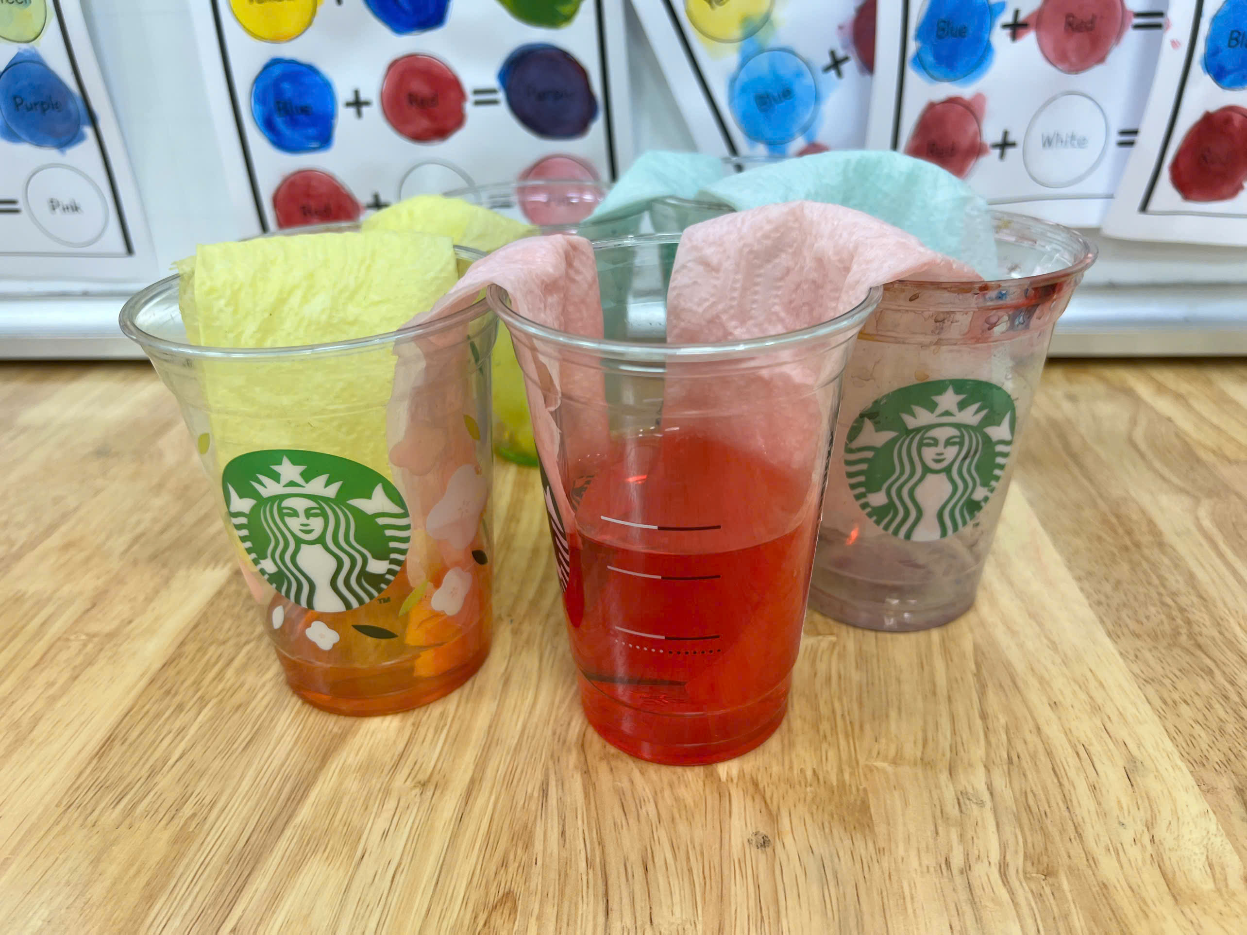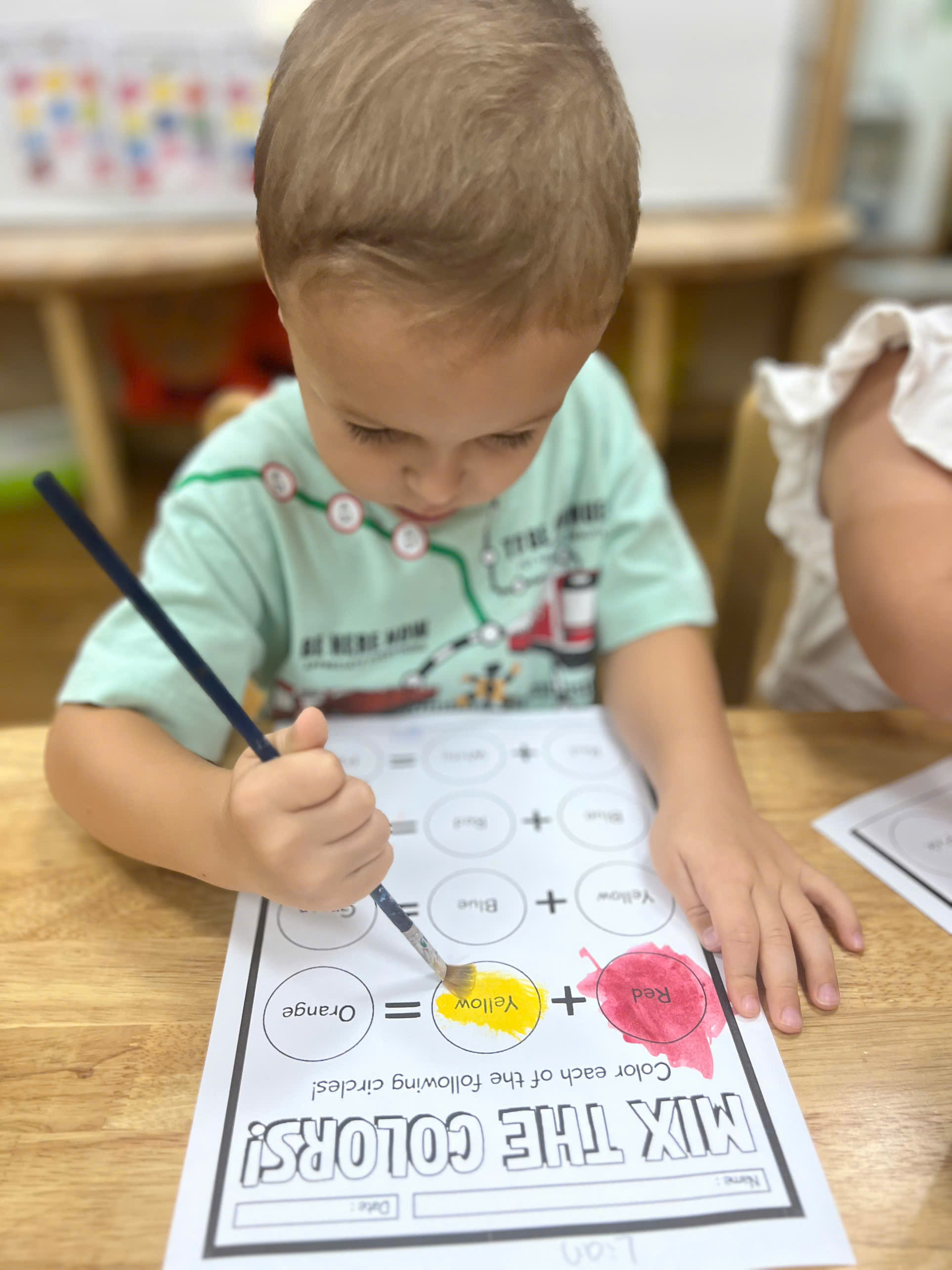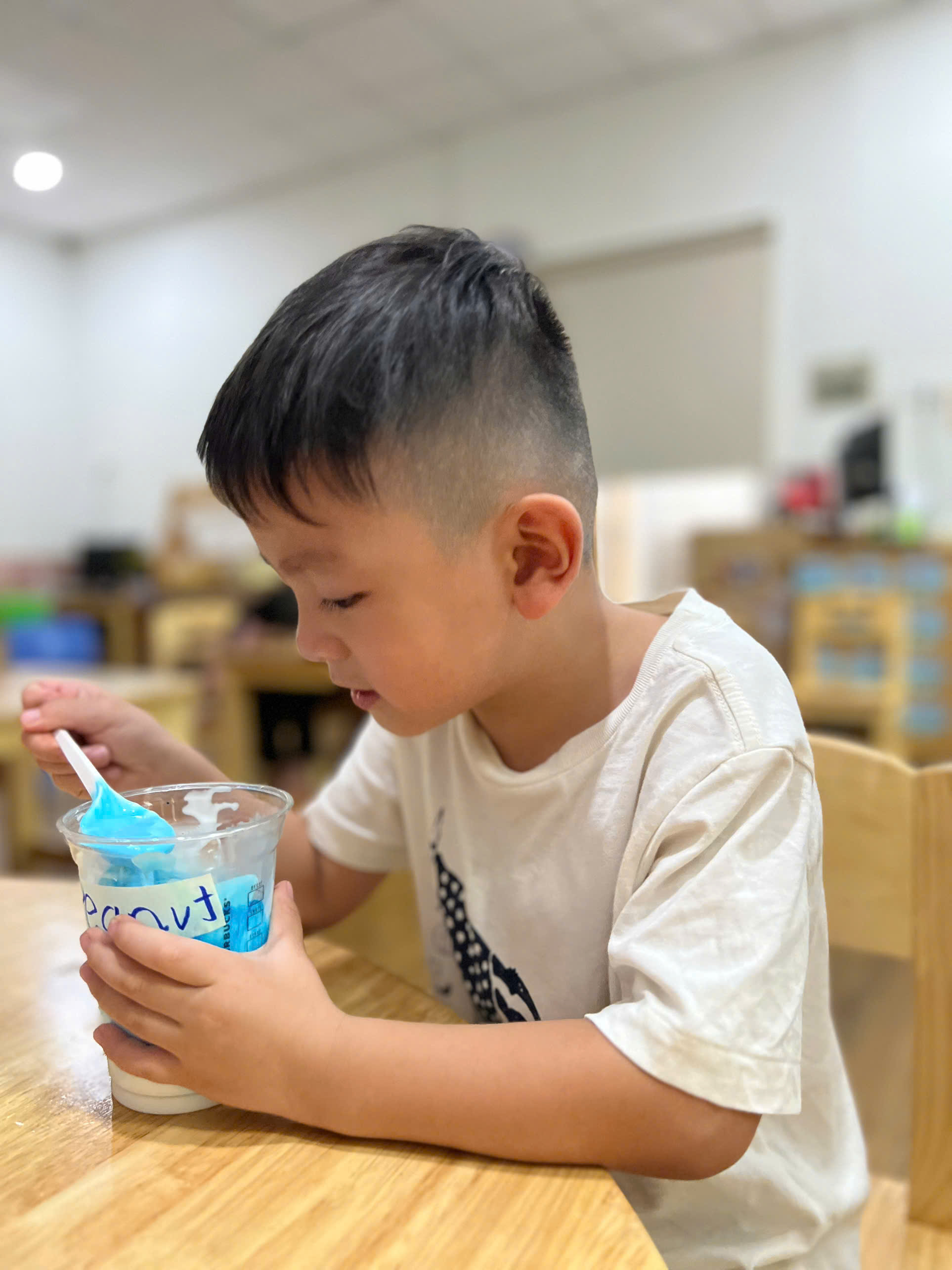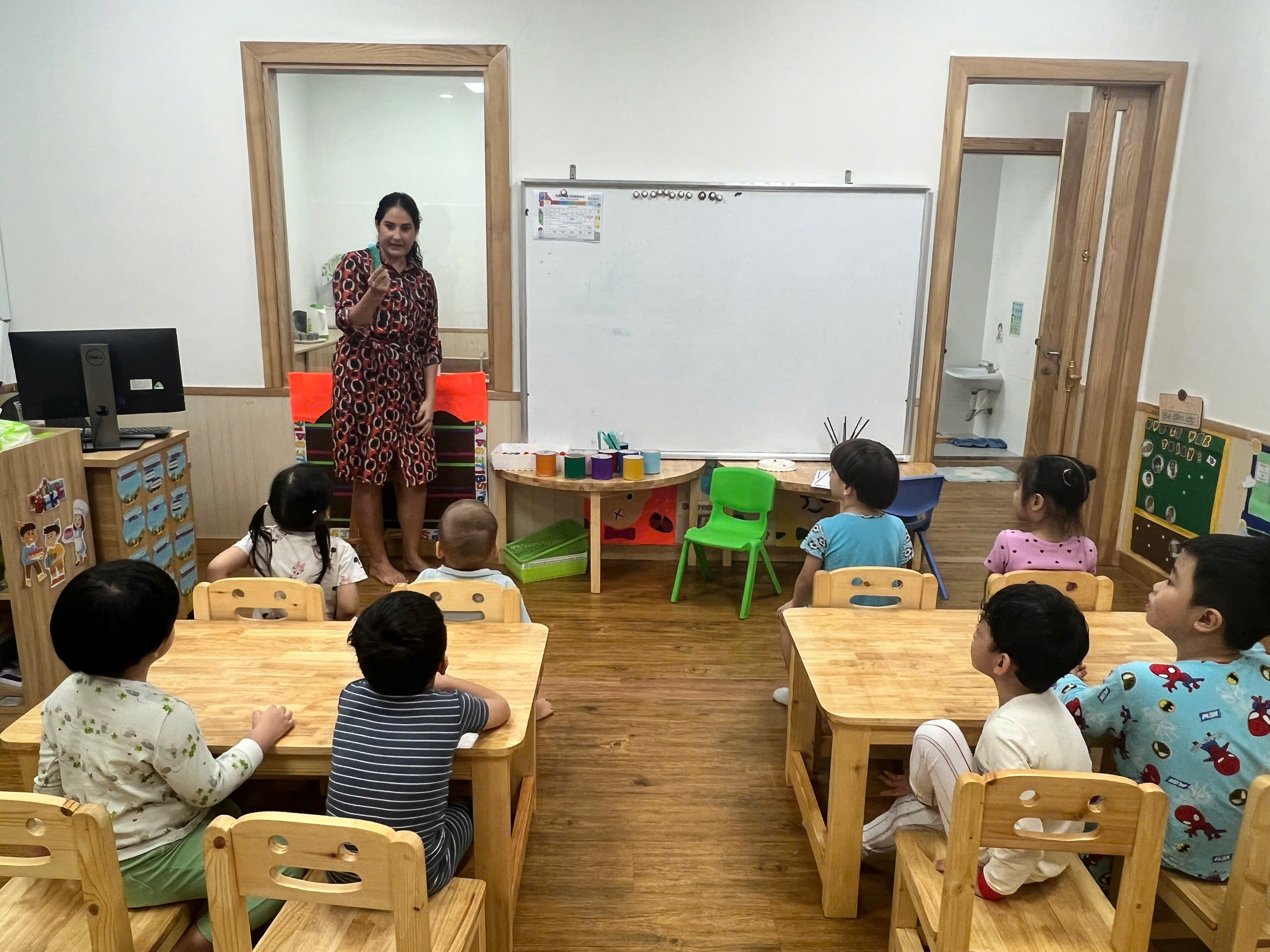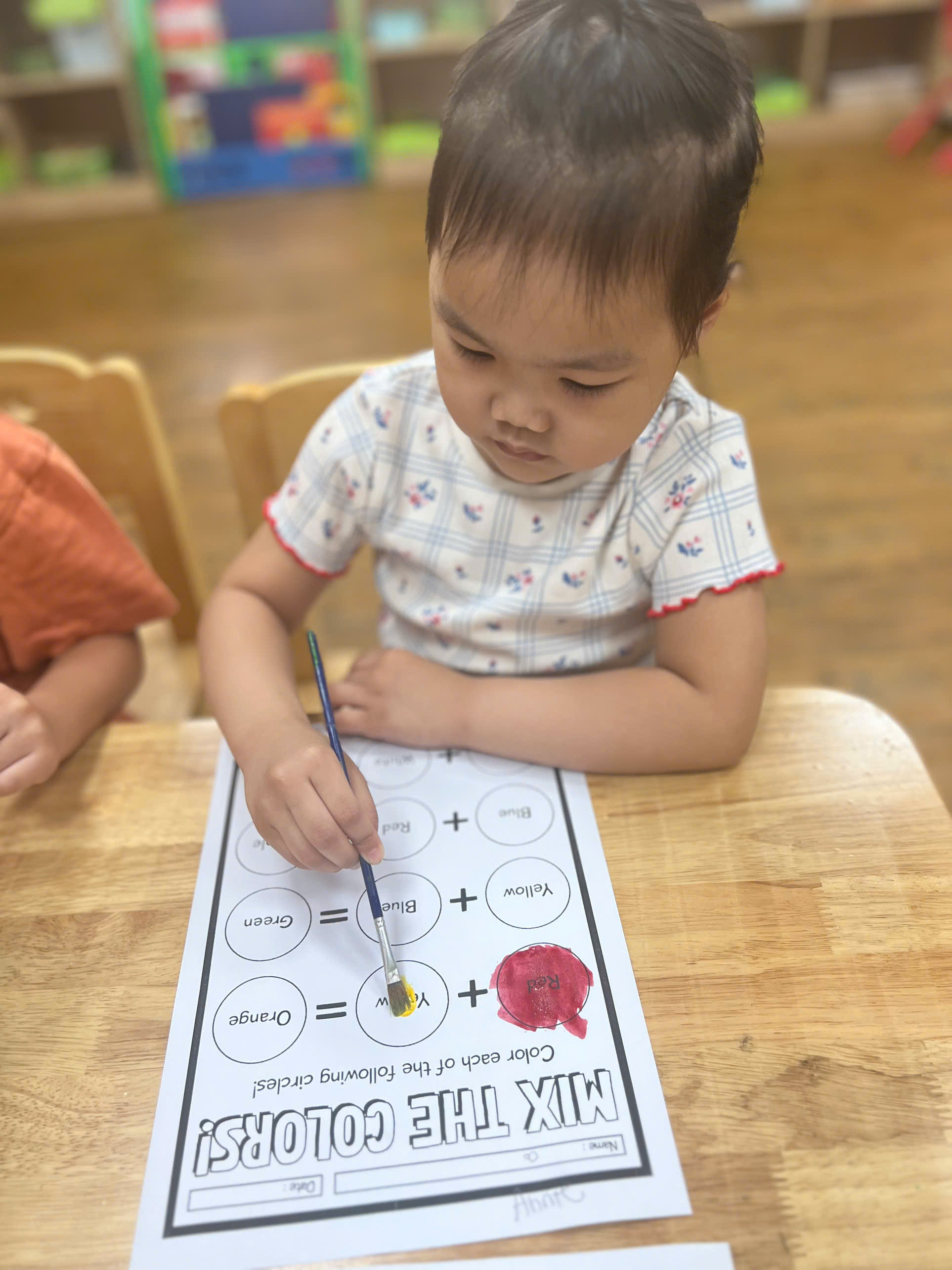 Các em đã thử thách kỹ năng dự đoán của mình bằng cách đoán xem chúng sẽ tạo ra màu mới nào khi trộn hai màu khác với nhau 🎨 Sự tò mò của các em được khơi dậy thông qua các hoạt động thực hành như Thí nghiệm Bước đi Cầu vồng, nơi các em vô cùng kinh ngạc khi chứng kiến các màu cơ bản di chuyển một cách kỳ diệu từ cốc này sang cốc khác và một màu mới xuất hiện 🌈 Các em cũng được khám phá các phản ứng hóa học và các kết cấu khác nhau bằng cách làm Slime 👨🔬 👩🔬. Để rèn luyện kỹ năng quan sát, các em đã thích thú phân loại những quả cầu lông nhiều màu sắc và ghép chúng vào đúng cốc màu. Đó là một tuần tràn ngập sự ngạc nhiên, khám phá và rất nhiều bài học đầy màu sắc và thú vị! 🥽🥼🧤🧪🌈