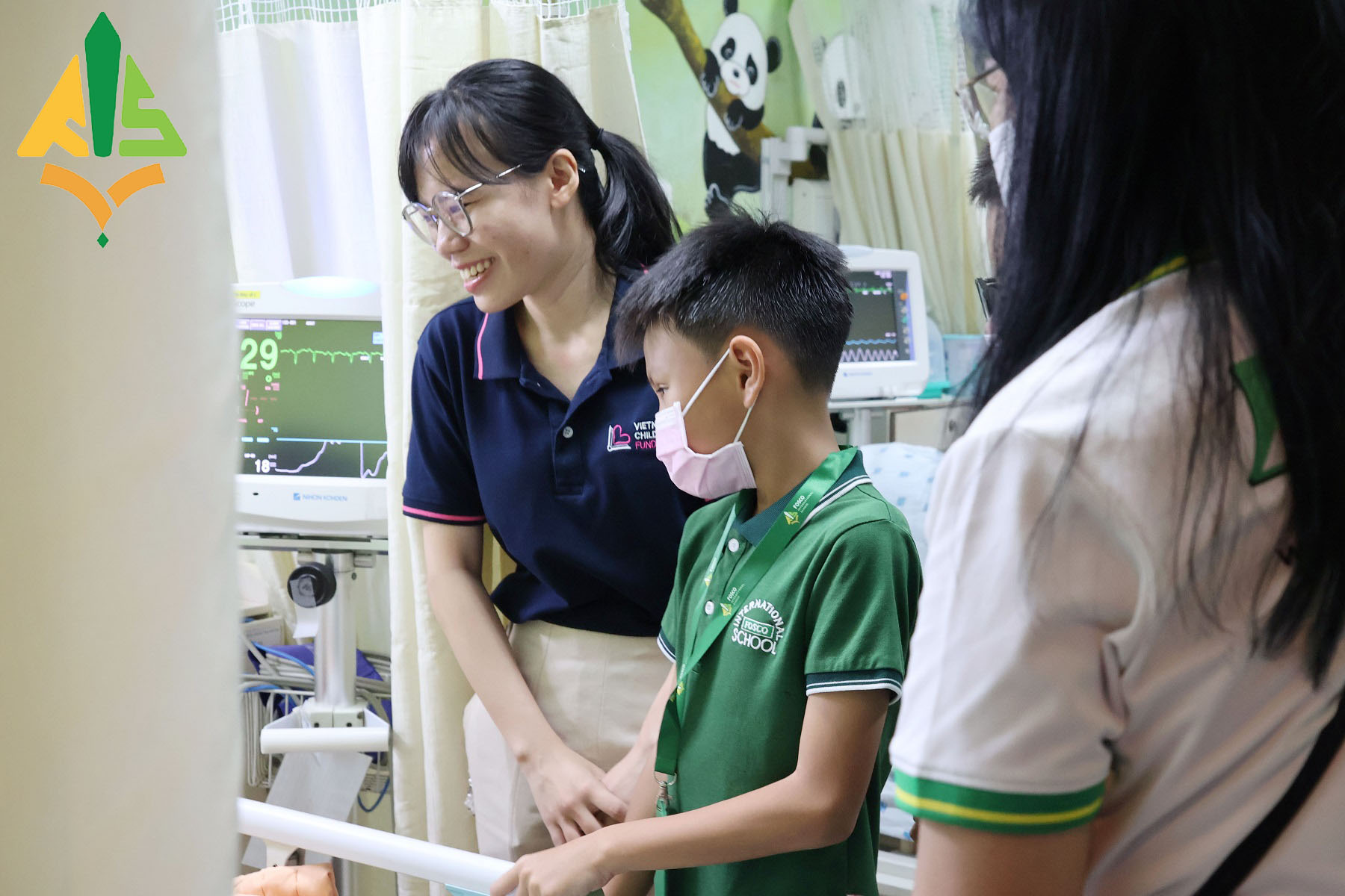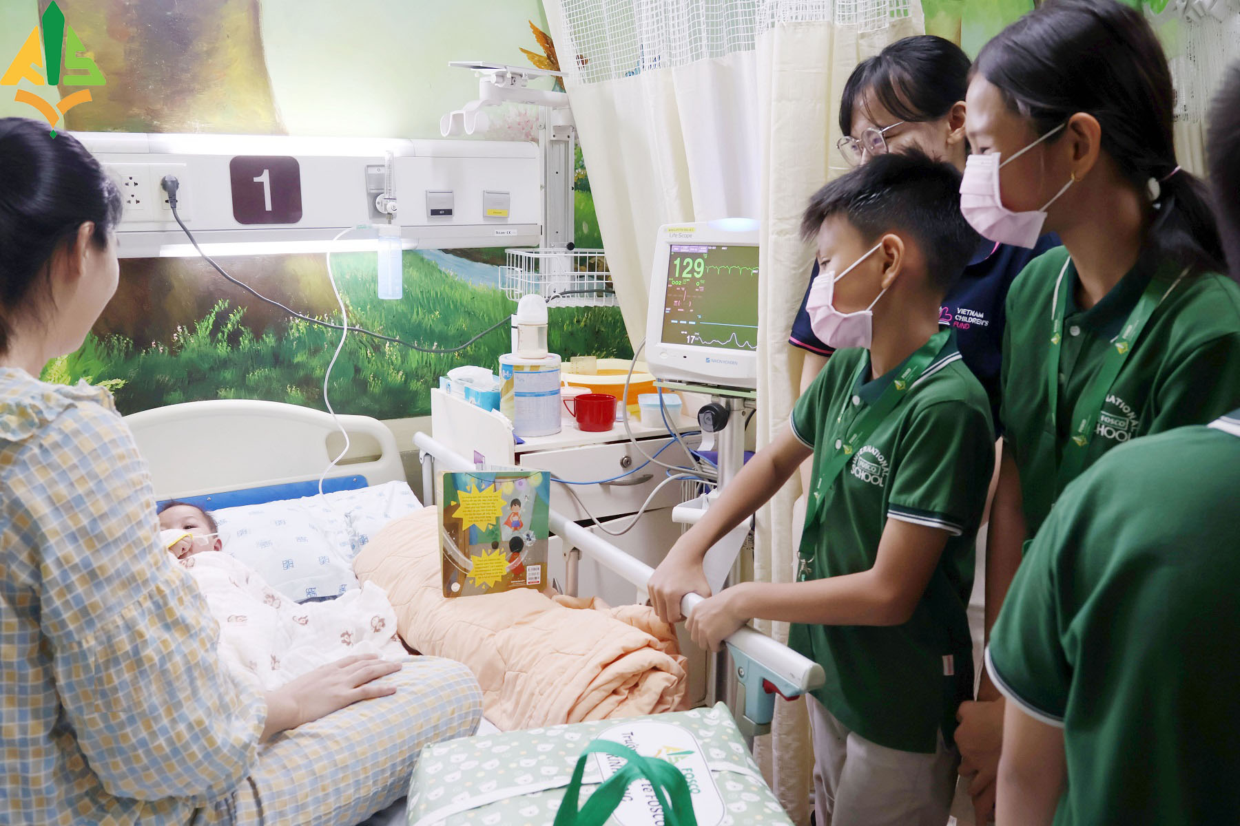Các em học sinh lớp 5 đã đến thăm bé Như Ý khi bé đang hồi phục tại Bệnh viện Đại học Y, TP.HCM, sau ca phẫu thuật tim thành công để điều trị bệnh tim bẩm sinh. Đoàn FIS đã mang theo quà tặng, lời chúc tốt đẹp và những lời động viên dành cho gia đình của bé Như Ý. Bé Như Ý là một bé gái 9 tháng tuổi đã nhận được sự hỗ trợ tài chính toàn phần từ FIS để điều trị bệnh tim. Sự hỗ trợ này có được là nhờ lòng hảo tâm của cộng đồng trường chúng tôi và sự hợp tác giữa FIS với Quỹ Bảo trợ trẻ em Việt Nam, đơn vị đã lựa chọn người thụ hưởng. FIS đã đóng góp 36.760.000 đồng để chi trả cho ca phẫu thuật. Từ buổi bán hàng gây quỹ Giáng Sinh, tất cả doanh thu đều được quyên góp và chứng kiến kết quả khả quan của ca phẫu thuật, các em học sinh đã học được rằng những nỗ lực của mình—dù nhỏ đến đâu—cũng có thể tạo ra tác động tích cực và có ý nghĩa đối với cuộc sống của một ai đó. Đó là lời nhắc nhở mạnh mẽ rằng lòng tốt, tinh thần đoàn kết và lòng hảo tâm có thể mang lại những kết quả thay đổi cuộc sống.
