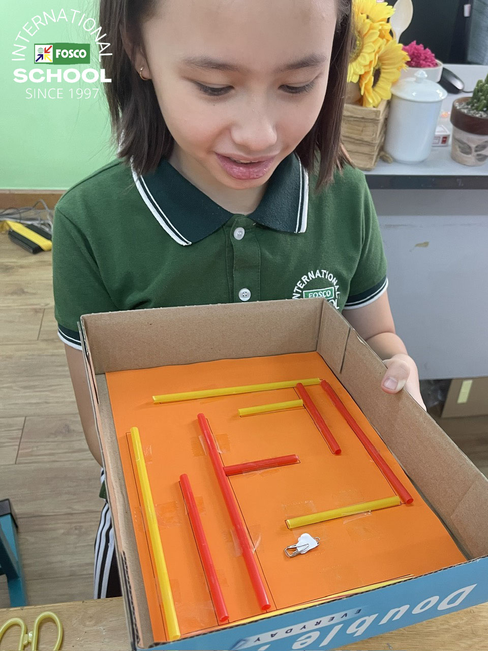 Trong buổi sinh hoạt CLB đầu tiên của chúng ta vào đầu năm 2024, các học sinh đã đọc một câu chuyện chân thành có tên "Sợi dây vô hình" của tác giả Patrick Karst. Sau đó, học sinh tìm hiểu về nam châm cũng như là động lực vô hình. Cuối cùng, các em đã áp dụng những gì học được vào một dự án STEAM thú vị, trong đó các em tạo ra một mê cung bằng ống hút và dẫn một chiếc kẹp giấy di chuyển trong mê cung đó bằng nam châm.