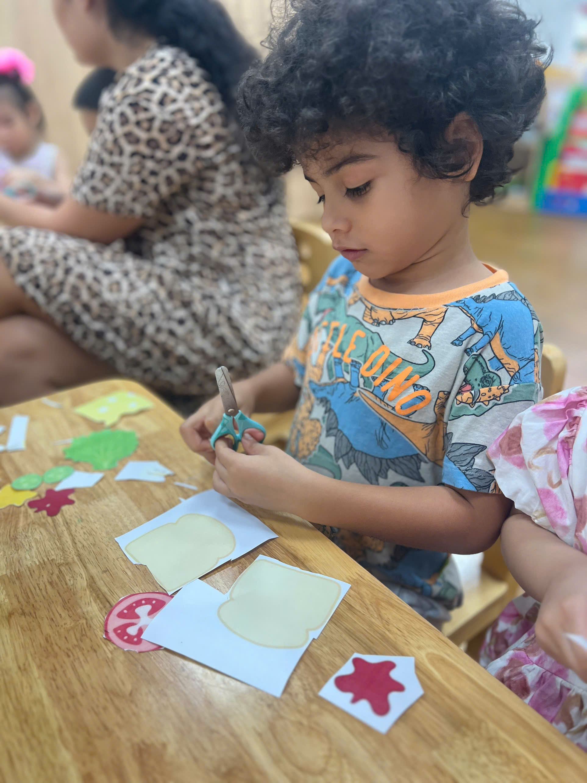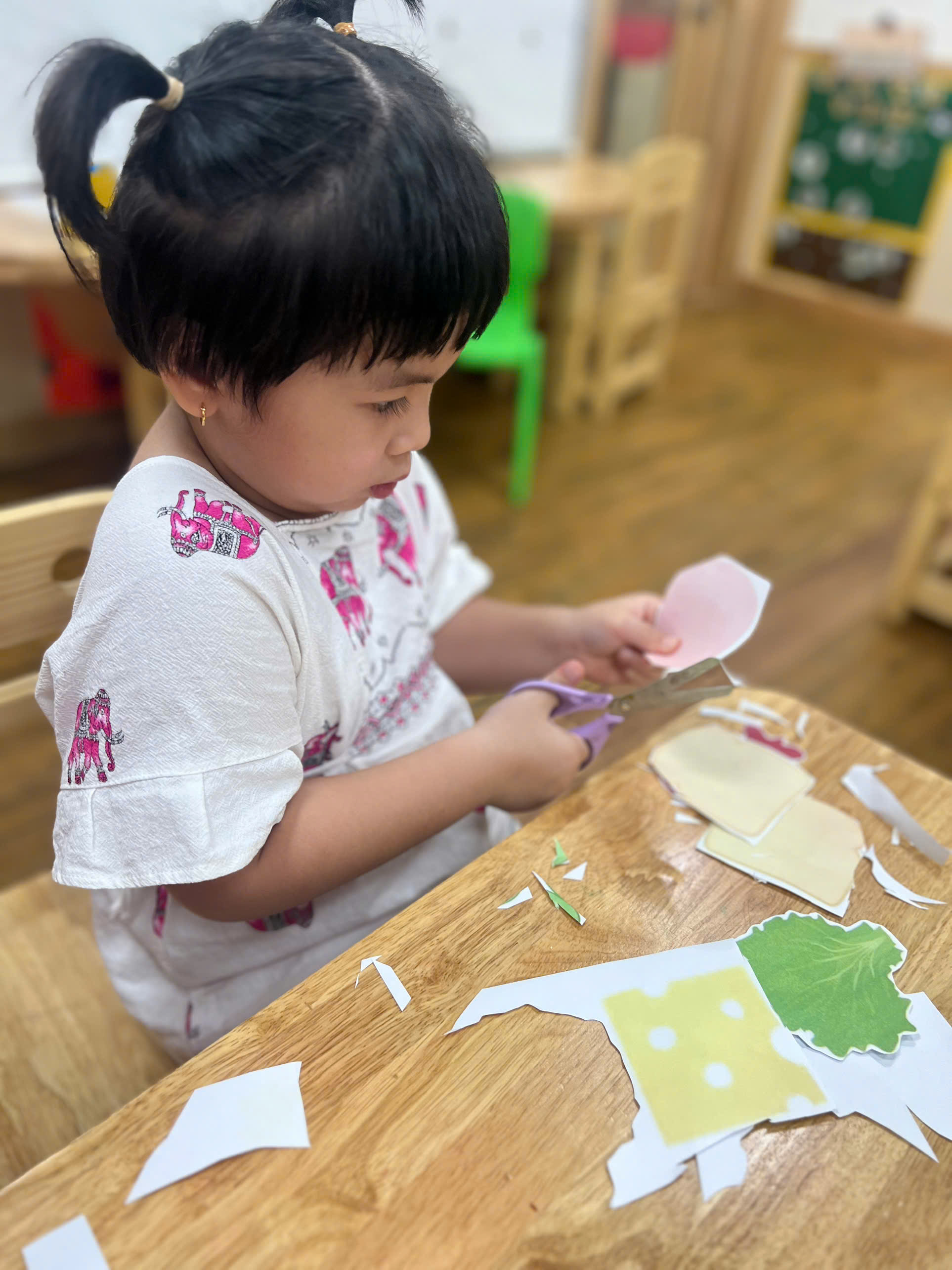 Tay chúng mình trở nên cực kỳ bận rộn! Chúng mình đã vẽ, cắt, dán, ghép hình và tô màu rất nhiều để rèn luyện các ngón tay.