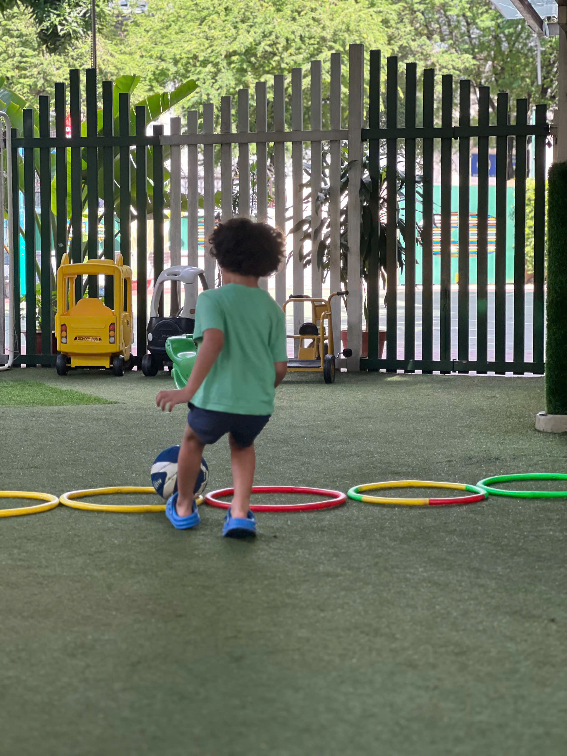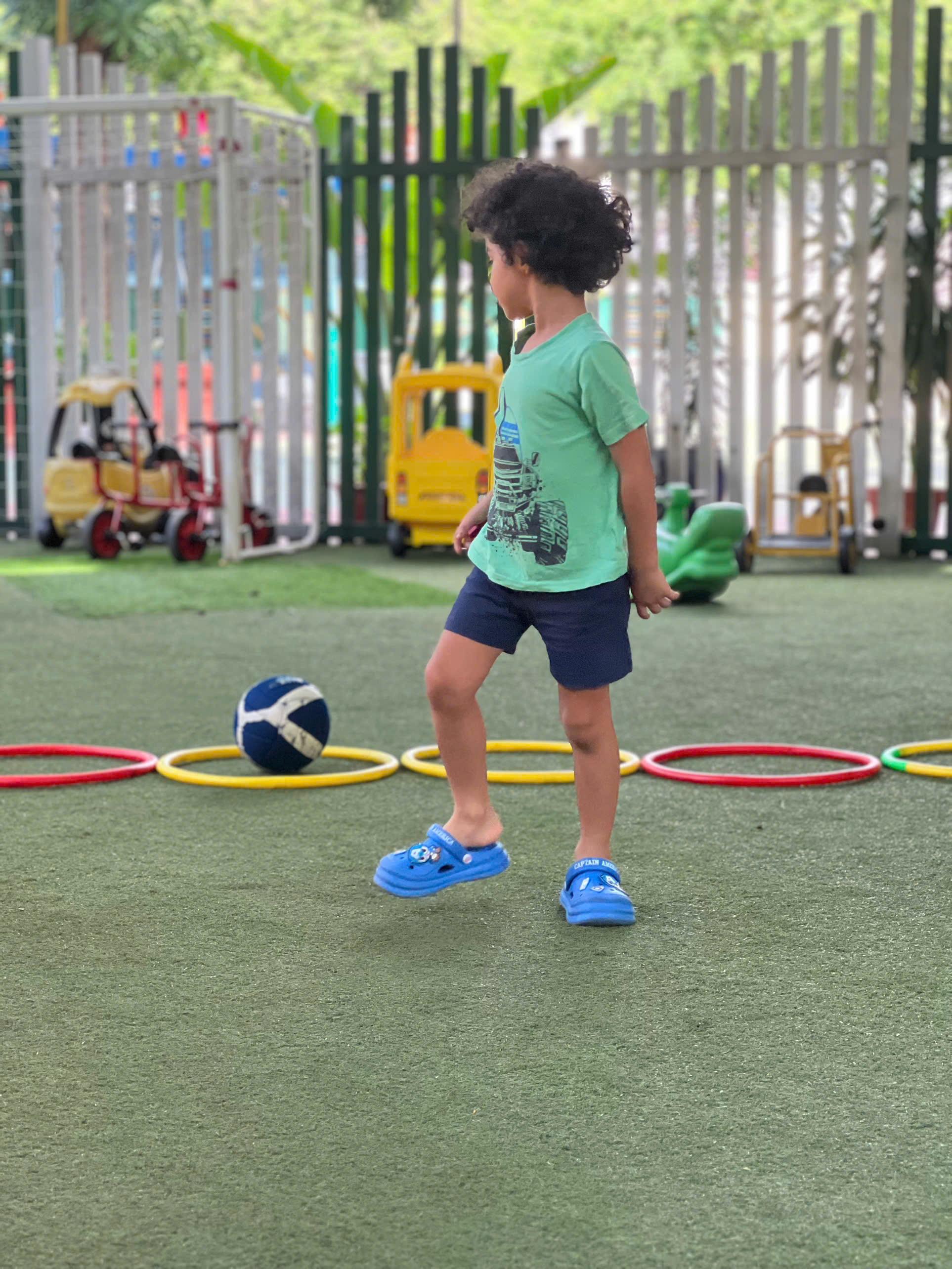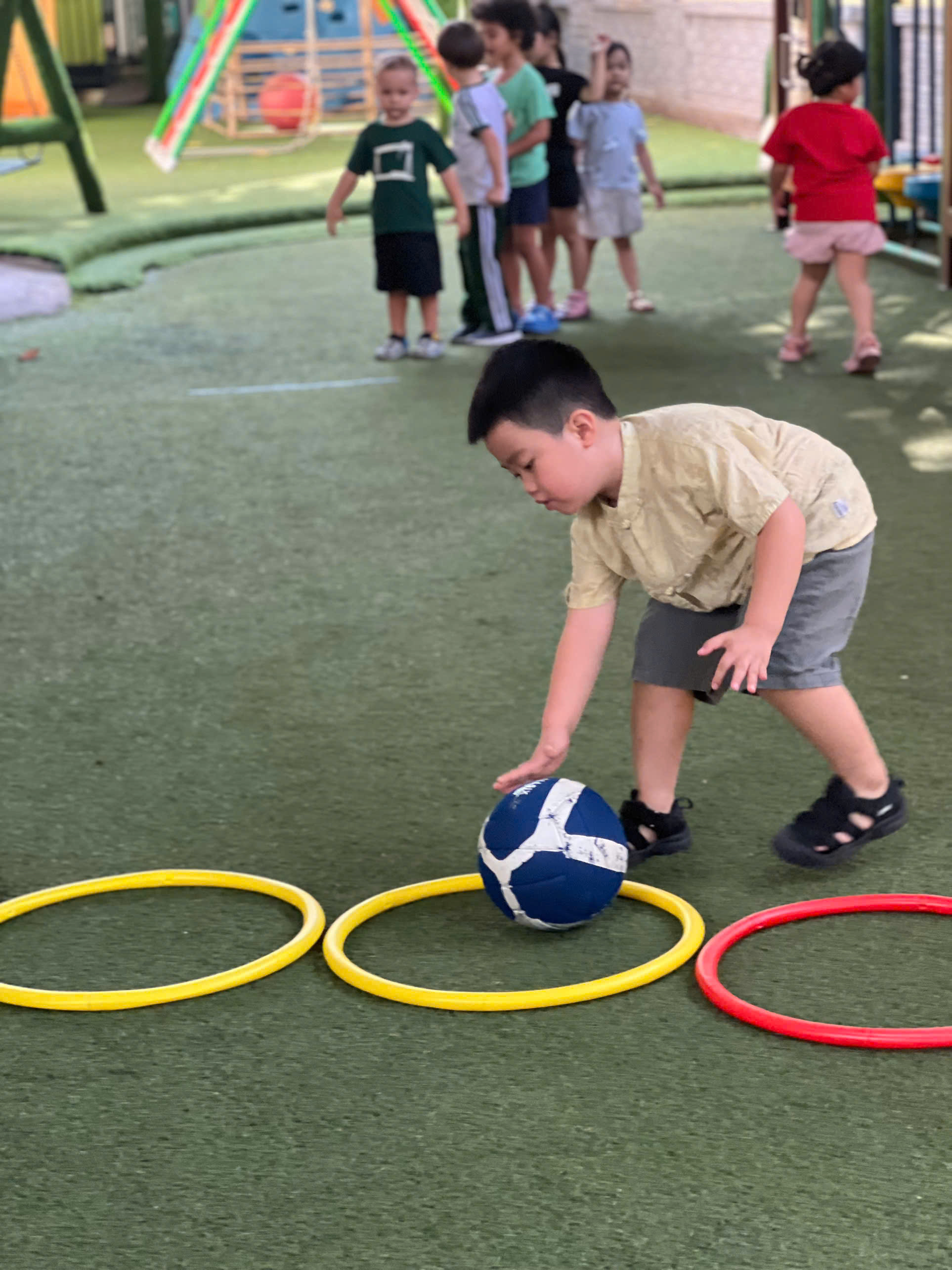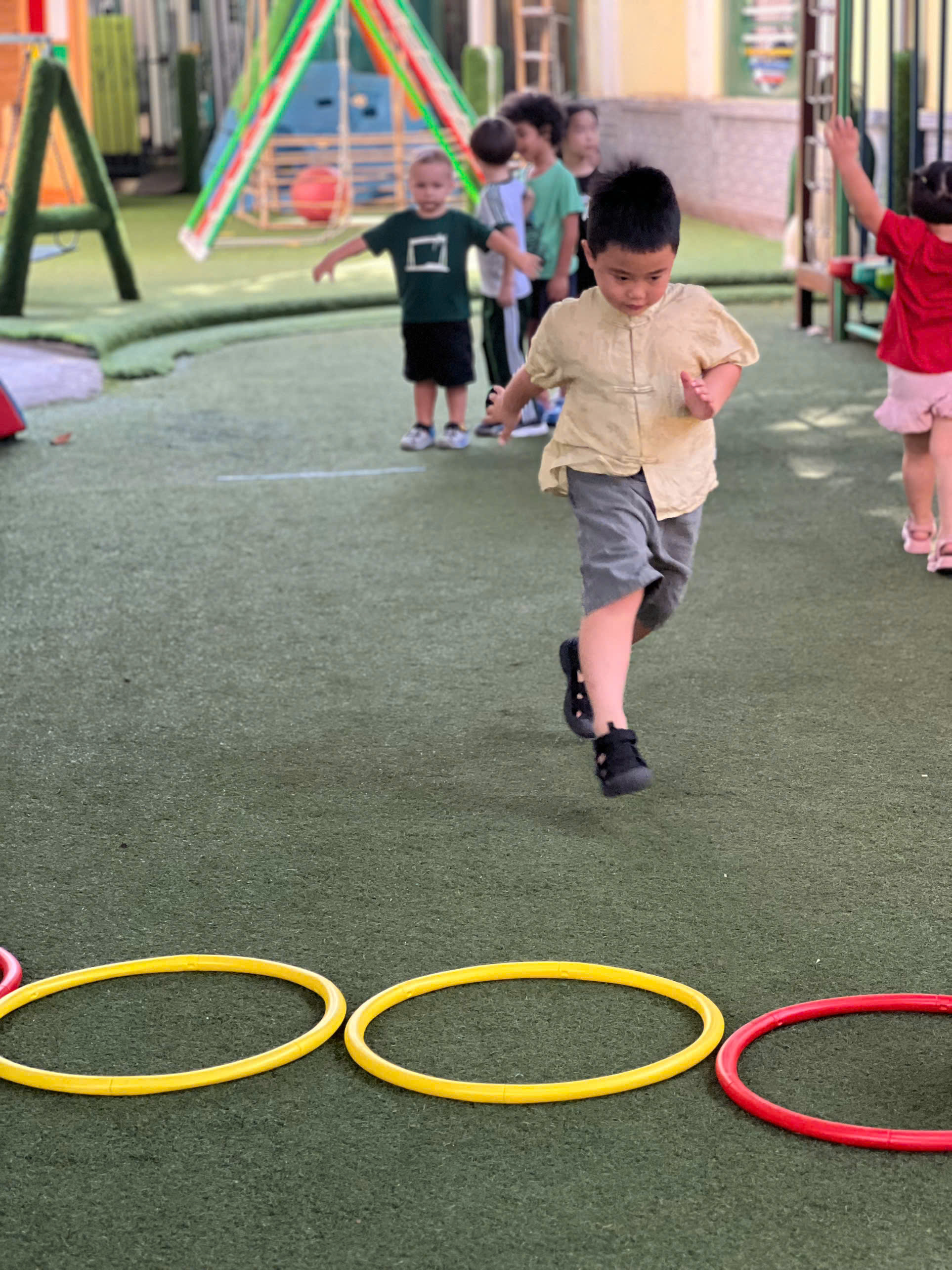 Khi sinh hoạt ngoài trời, chúng mình chạy nhảy và chơi đùa trong giờ thể dục để có một cơ thể khỏe mạnh và vui vẻ