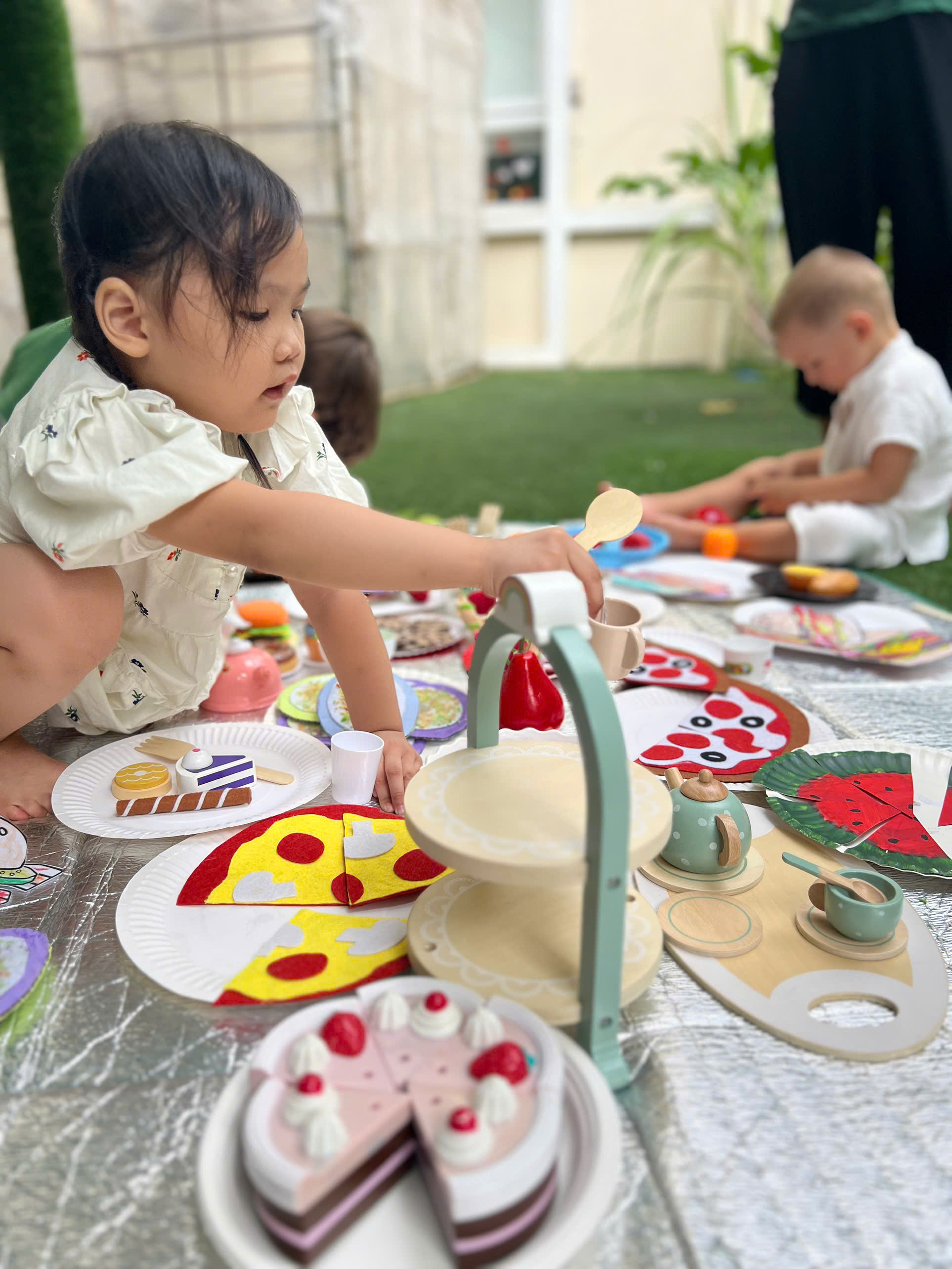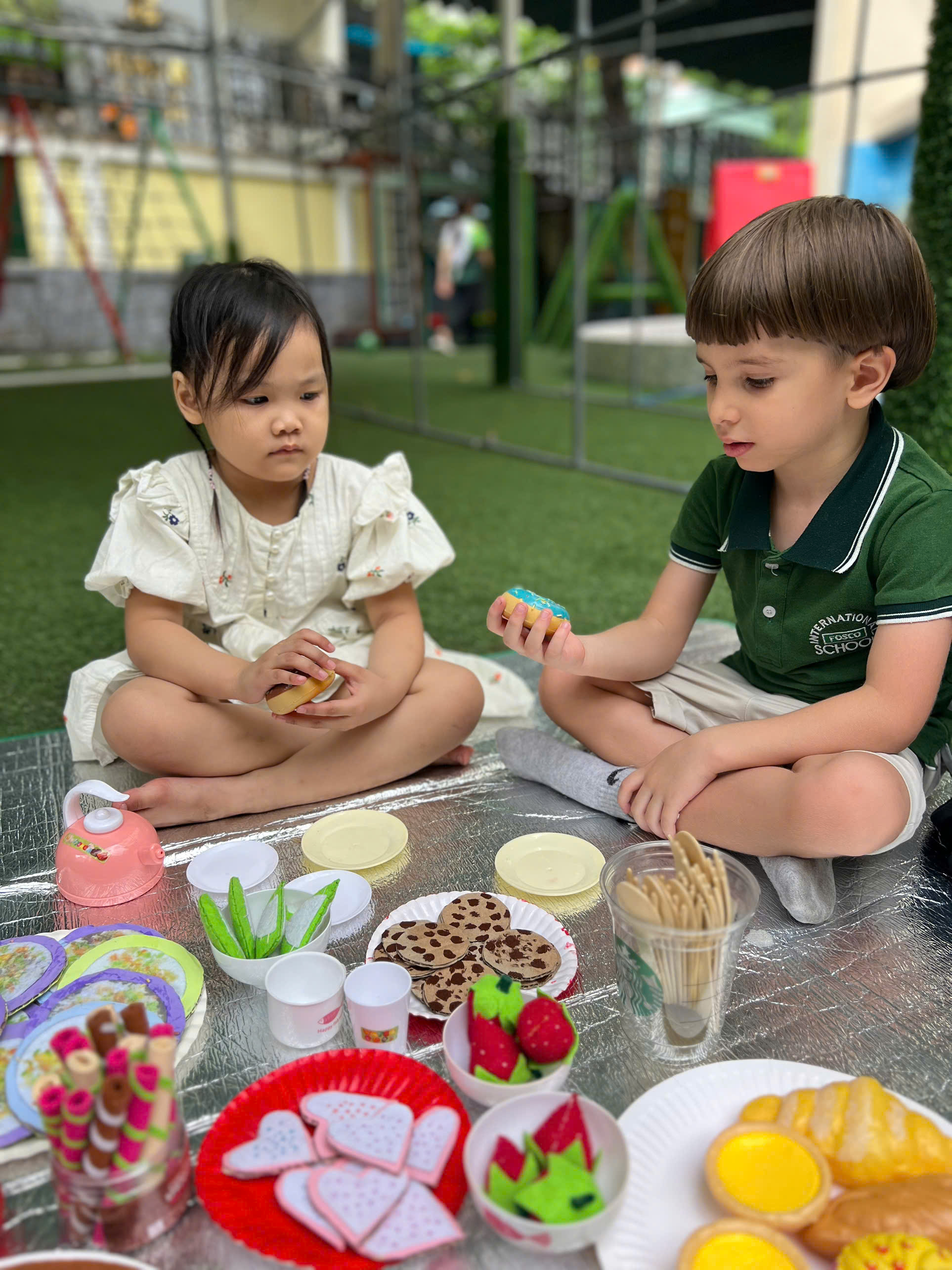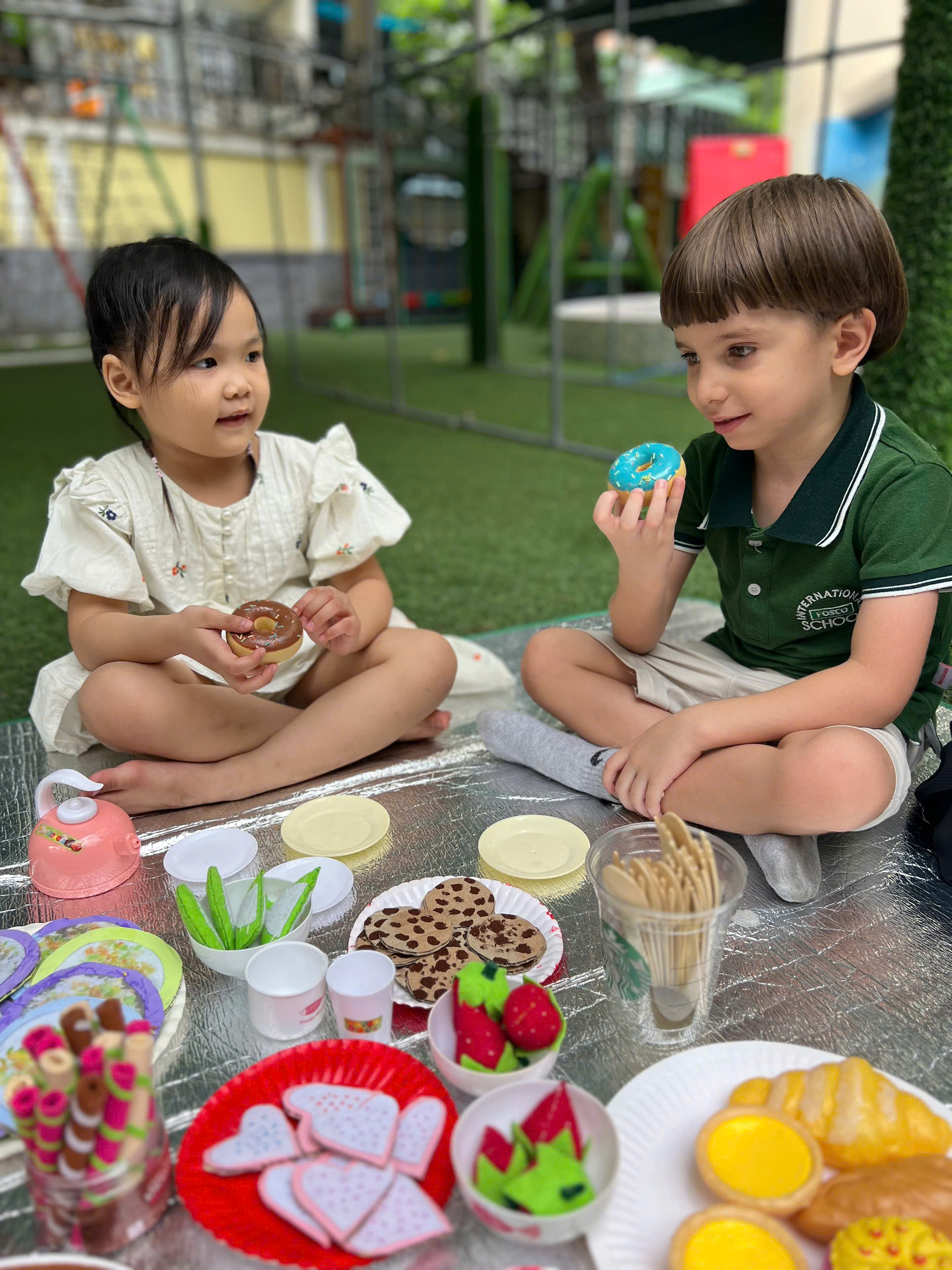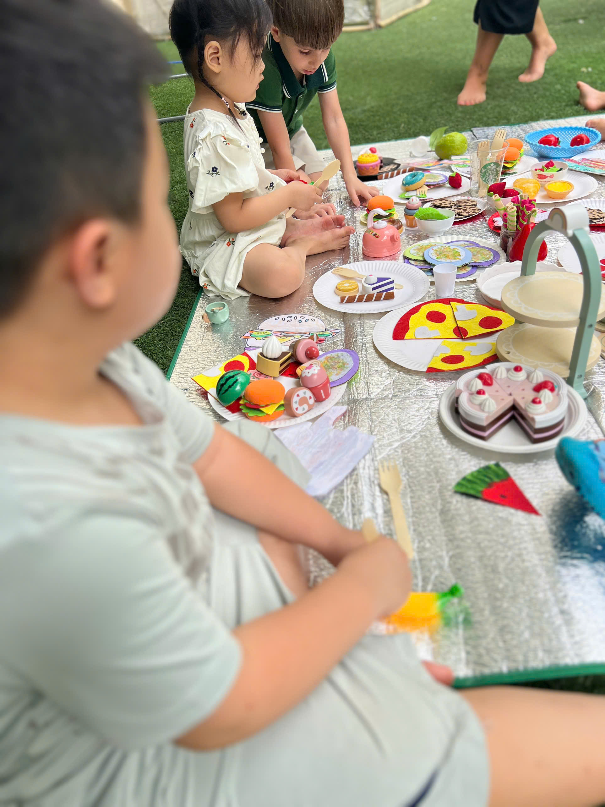 Tuần này đặc biệt hơn cả vì chúng mình đã được trải nghiệm buổi dã ngoại ngoài trời! Chúng mình đã mô phỏng tự chuẩn bị giỏ đựng đồ dã ngoại và học cách chuẩn bị mọi thứ cho một bữa ăn ngoài trời ngon lành. Trong buổi dã ngoại, chúng mình đã là những người chia sẻ tuyệt vời nhất! Chúng mình đã rèn luyện các kỹ năng xã hội bằng cách chia sẻ pizza, trái cây, bánh ngọt và các món ăn ngon với tất cả bạn bè
