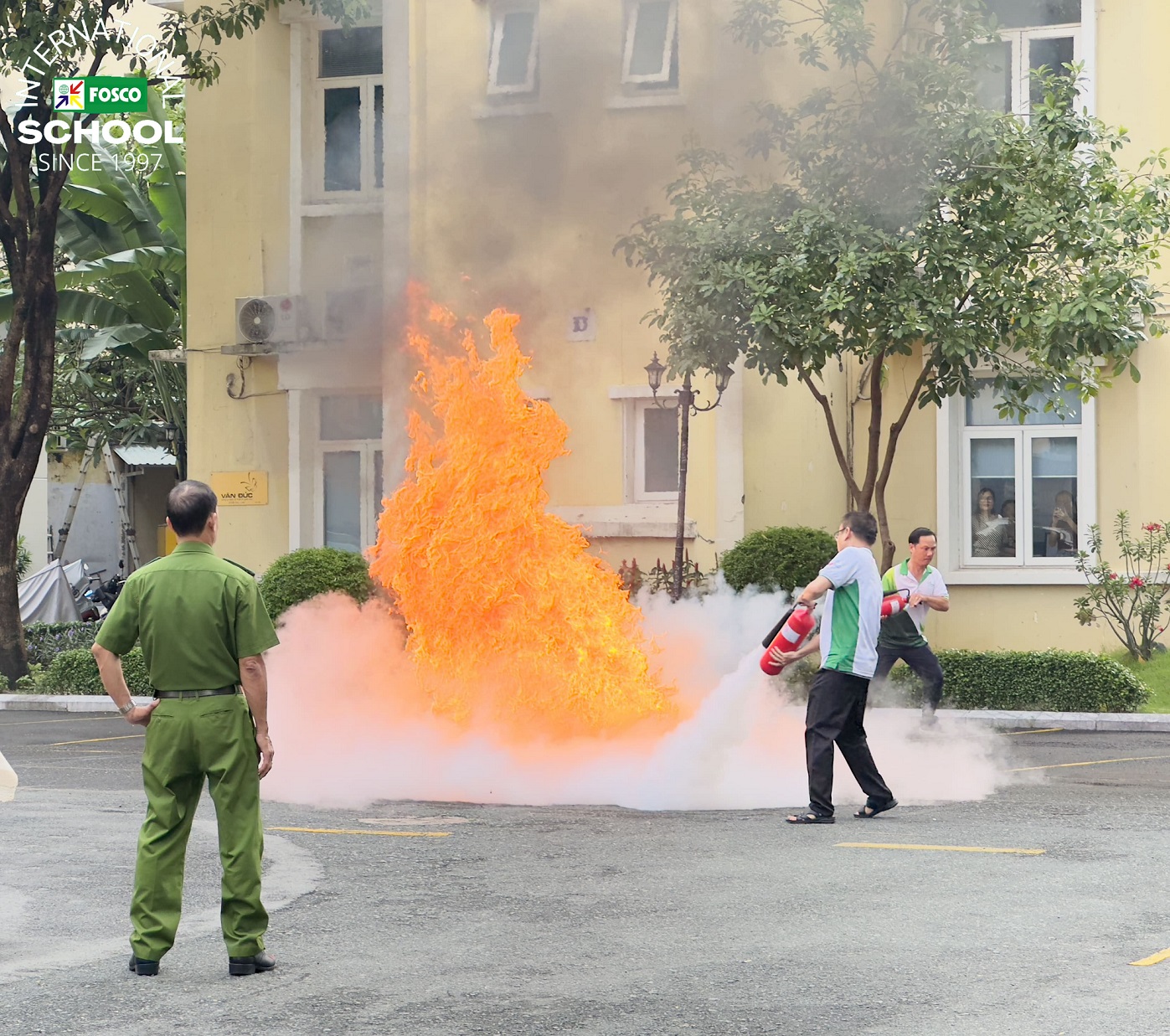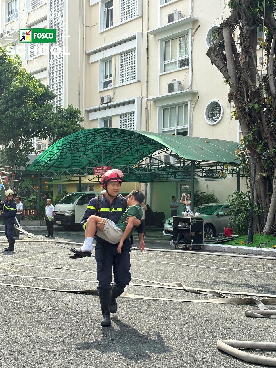 Đơn vị Phòng cháy chữa cháy & Cứu nạn cứu hộ Quận 3 và đội ngũ PCCC của công ty FOSCO và ban giám hiệu FIS đã làm việc chăm chỉ trong hơn một tháng để lên kế hoạch diễn tập. Chương trình đã diễn ra vô cùng thành công!