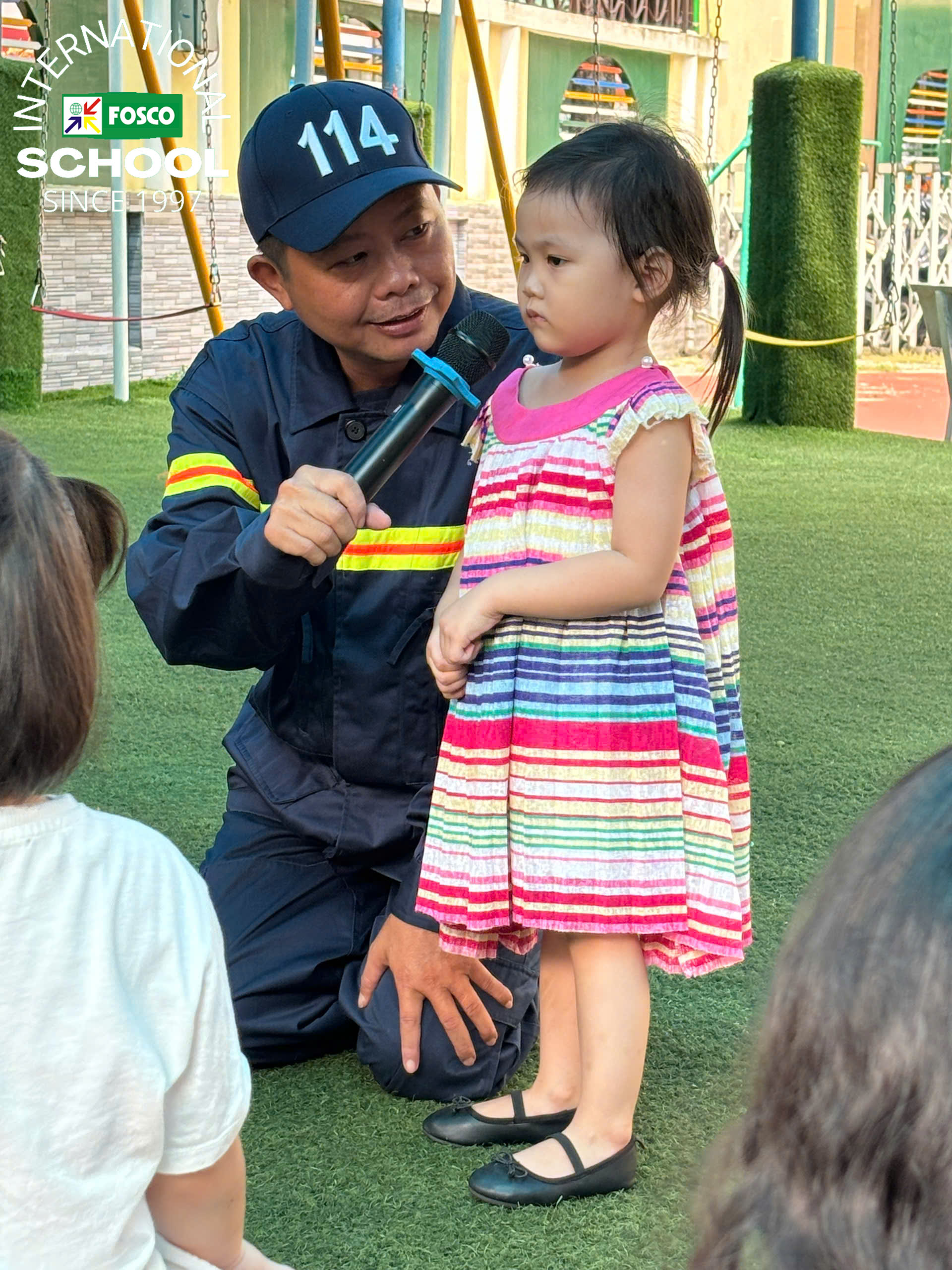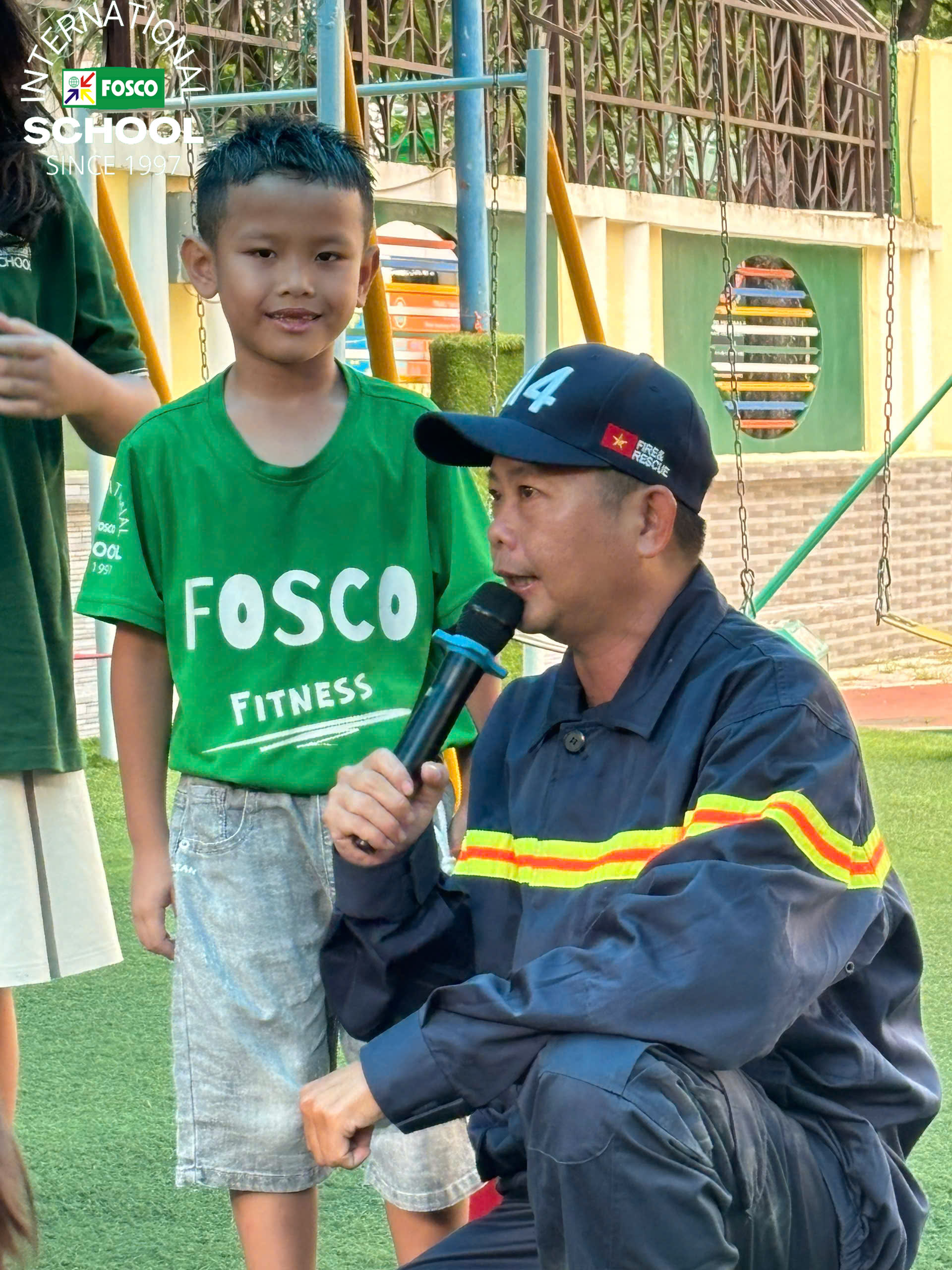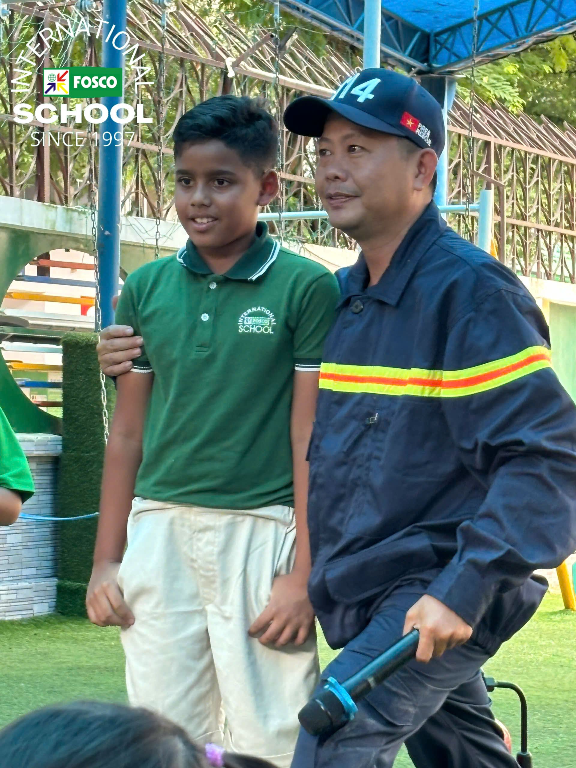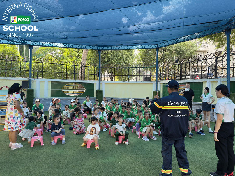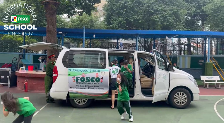 Ngoài ra, nhà trường còn có một khóa đào tạo dành riêng cho các học sinh FIS với những cán bộ công an trực thuộc Phòng cháy chữa cháy & Cứu nạn cứu hộ Quận 3: Anh Tuấn và Anh Hiếu đã hướng dẫn và dạy các kỹ năng cần thiết để thoát hiểm trong trường hợp hỏa hoạn, sử dụng bình cứu hỏa và thoát khỏi phương tiện/xe buýt trường học đang bốc cháy. Các em học sinh khá là thích thú khi được tập luyện tri hô tiêu lệnh Cháy! Cháy! Cháy! Dù còn nhỏ tuổi nhưng học sinh đã có thể dập tắt đám cháy từ một chiếc bình gas một cách an toàn. Đến cả giáo viên cũng được thực hành! Hoạt động này chứng minh rằng dù ở lứa tuổi nào, nhận thức là chìa khóa để có trách nhiệm phòng ngừa và ngăn chặn cháy nổ.
