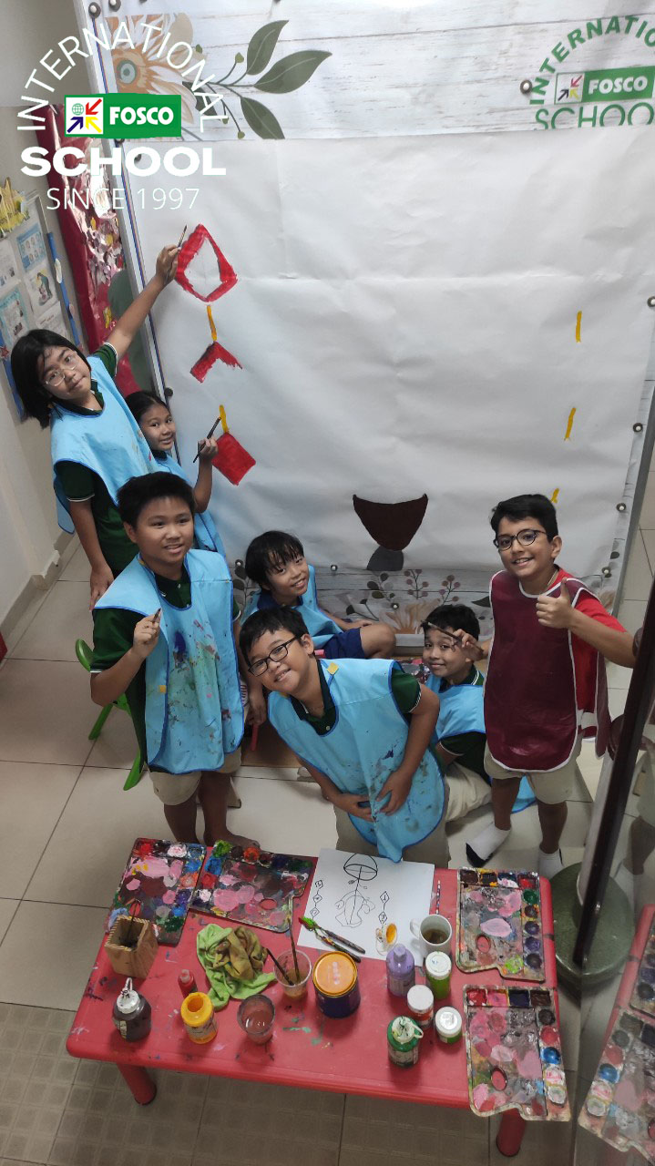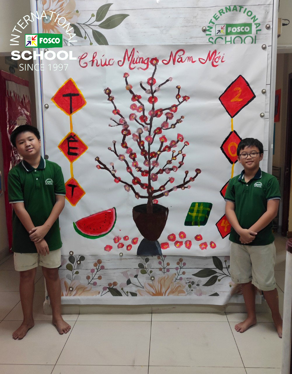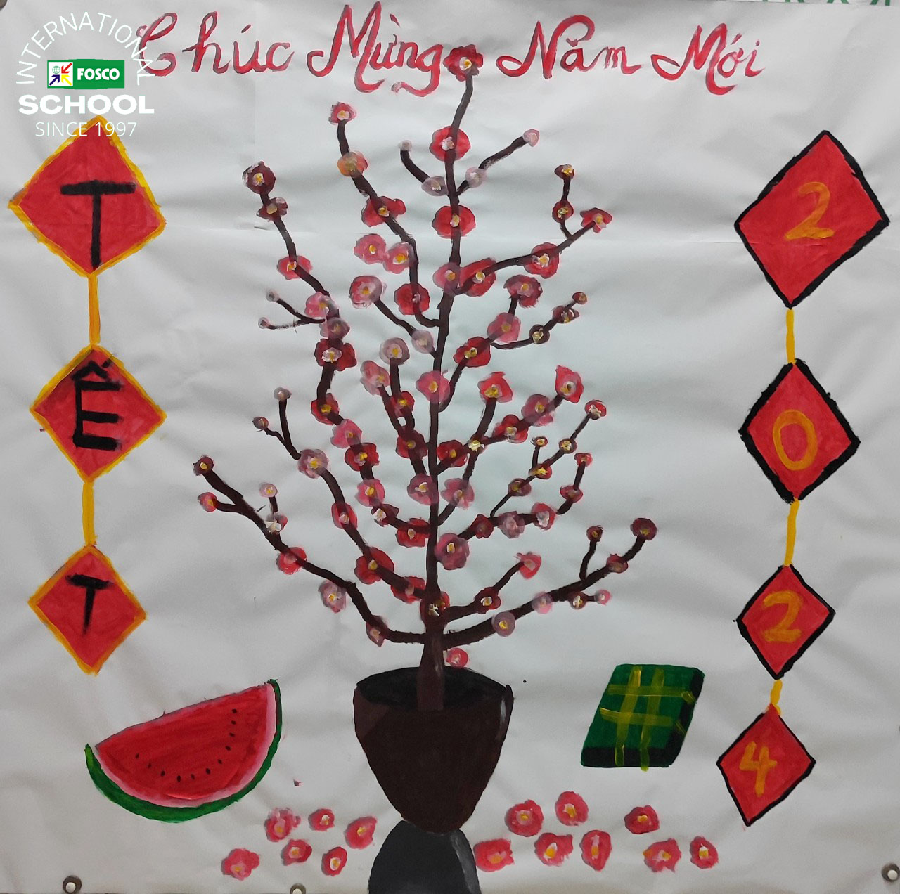 Cùng đón Tết nào! Các em học sinh lớp 5 đã lên kế hoạch vẽ tranh tường cho bảng tin tầng trệt và cùng nhau tạo nên một bức tranh Tết thật đẹp. Học sinh đã rất vui và cảm thấy rất tự hào về sự sáng tạo của mình. Cảm ơn lớp 5 đã làm cho ngôi trường của chúng ta đẹp hơn bằng tài năng nghệ thuật của các bạn.
