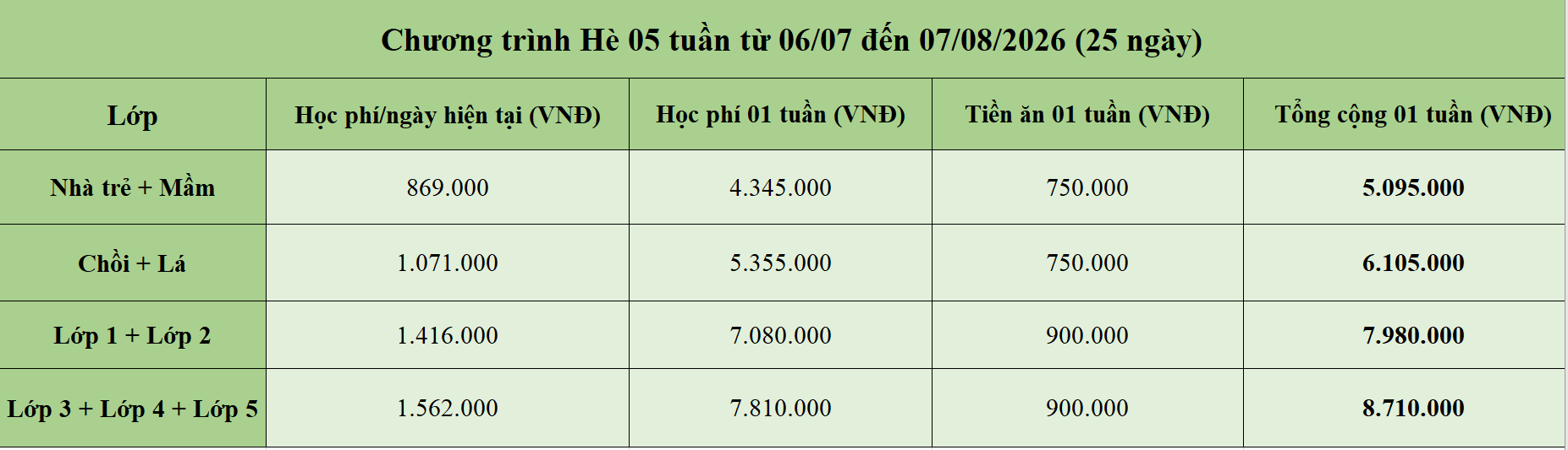 - Học phí hè sẽ không được hoàn lại trong mọi trường hợp.