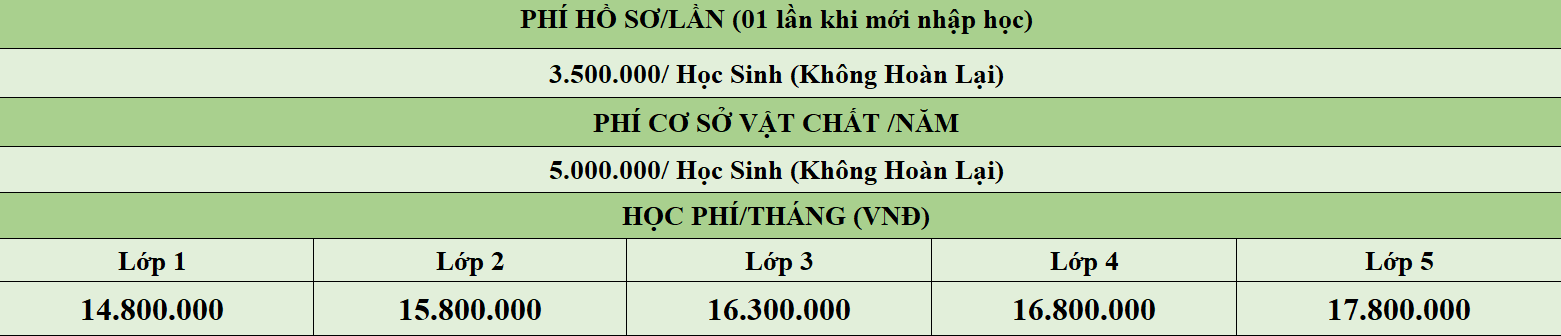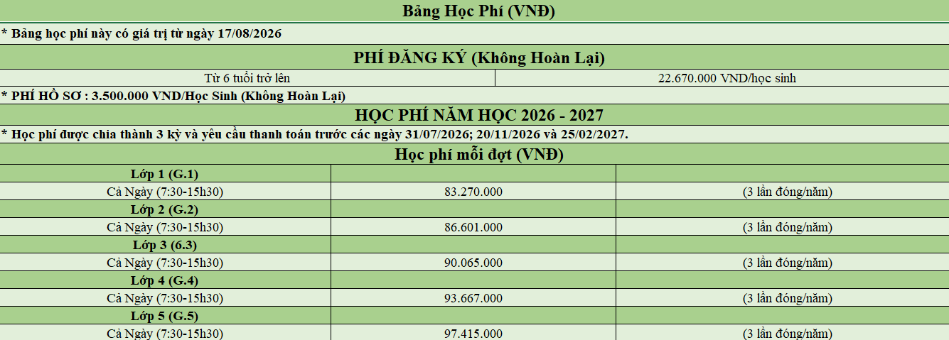 HỌC PHÍ ĐƠN NGỮ TRƯỜNG QUỐC TẾ FOSCO NĂM 2026 – 2027