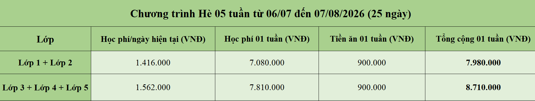 - Học phí hè sẽ không được hoàn lại trong mọi trường hợp.