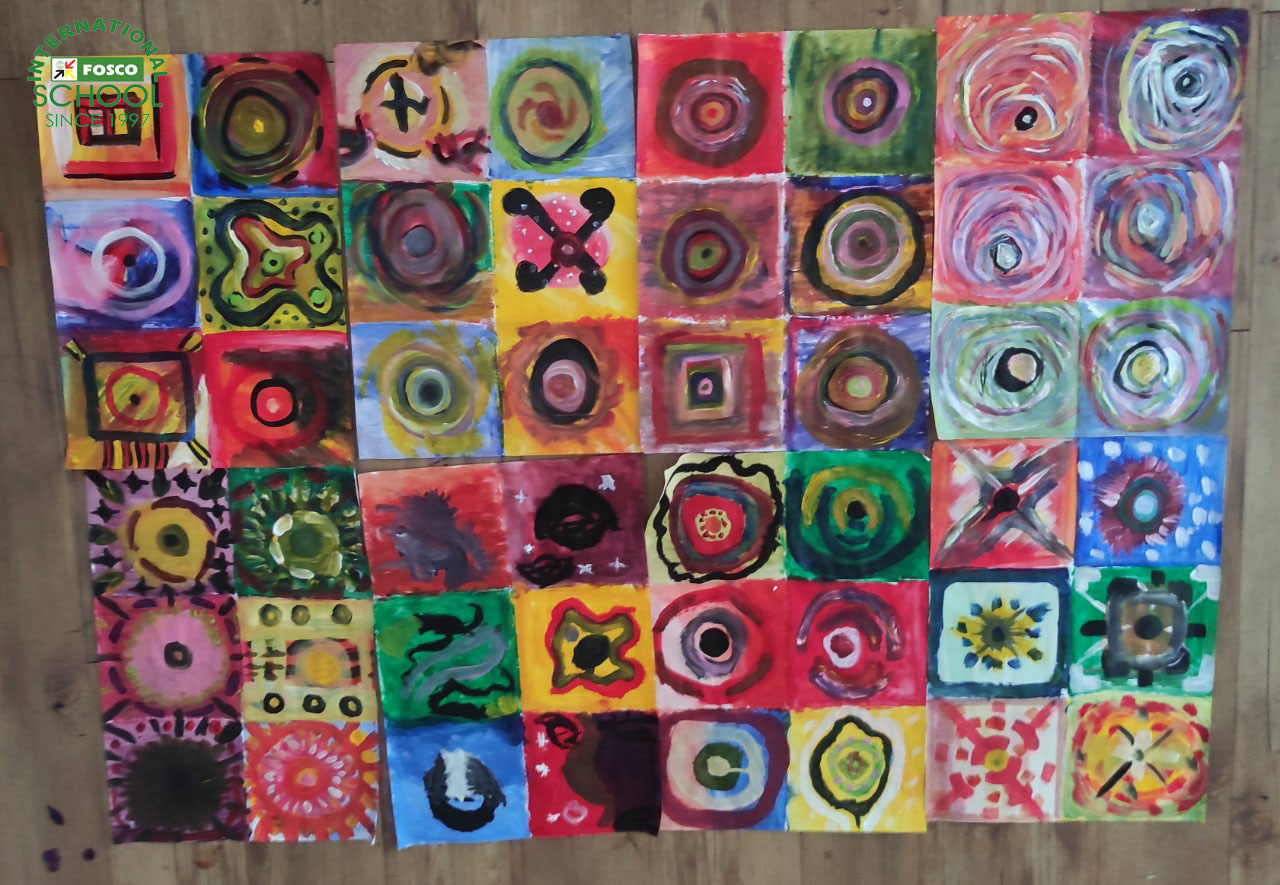 Học sinh lớp 5 hoàn thành những bức vẽ theo cảm hứng Kandinsky trong hôm nay. Chúng trong thật tuyệt vời và hoàn hảo khi được xếp cạnh nhau!