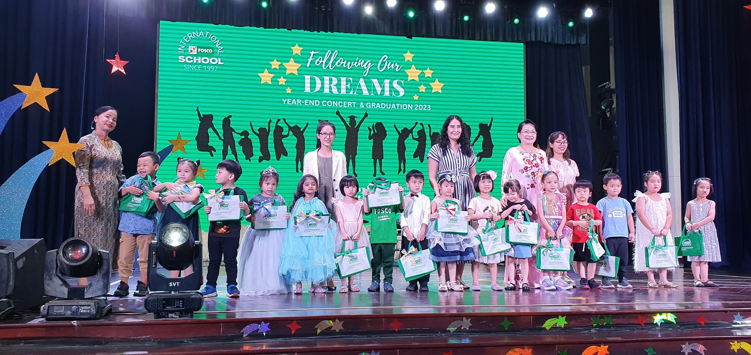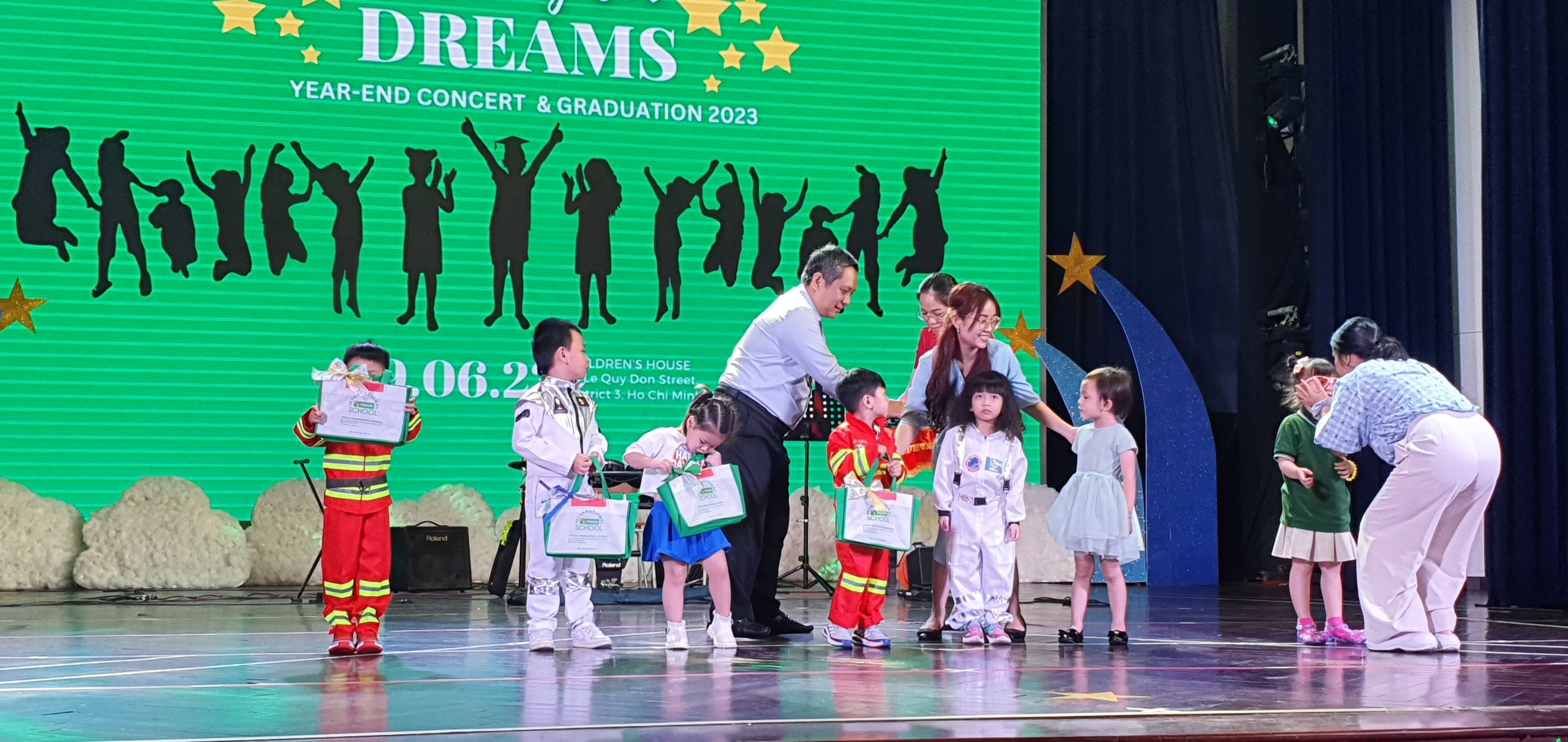 Tuyệt vời! Thật là một cách hoàn hảo để kết thúc một năm học! Nhà trường vô cùng tự hào về tất cả các em học sinh vì những cố gắng và nhiệt huyết học tập, phát triển trên con đường trở thành một công dân toàn cầu trách nhiệm. Xin trân trọng cám ơn tất cả quý vị đã đến tham dự lễ tổng kết, chúng tôi mong rằng quý vị đều đã khám phá ra ý chí và quyết tâm trong mỗi học sinh. Xin chúc mừng cho các em học sinh lớp Lá đã hoàn thành chương trình bậc Mầm non, bước đầu tiên trong hành trình giáo dục của mình; chúng tôi rất hào hứng để đón tiếp các em vào bậc Tiểu học. Học sinh lớp 5 thân mến, mỗi người trong số các em đều là những người trẻ đáng chú ý đang phát huy tiềm năng mà các em sẽ cống hiến cho xã hội của chúng ta sau này. Chúc mừng tất cả các em đã hoàn thành xuất sắc chương trình bậc Tiểu học và chúng tôi mong được thấy những thành công của các em trong tương lai. Gửi tới tất cả quý phụ huynh và học sinh FIS, chân thành cám ơn vì đã luôn là một đại gia đình FIS tuyệt vời. Các bạn luôn được trân trọng và luôn có chỗ trong tim của chúng tôi. Kính chúc tất cả một mùa hè thật tuyệt và hẹn gặp lại vào năm học mới 2023-2024 với nguồn năng lượng tích cực và phấn khởi. Kính chúc quý vị luôn vui vẻ, hạnh phúc và thành công!