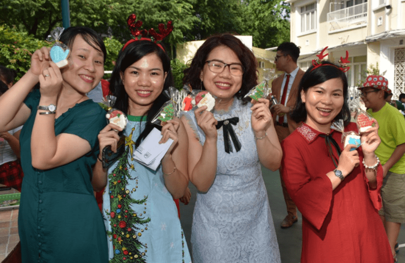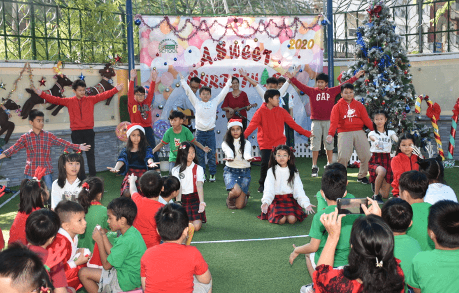 Chúng tôi đã có một buổi Lễ Giáng Sinh tuyệt vời tại FIS vào ngày 17/12/2020! Mặc dù năm nay không có phụ huynh và gia đình tham gia nhưng các em học sinh và tập thể toàn trường đều giữ được tinh thần của Giáng Sinh rất sinh động và vui tươi. Chúng tôi đón chào ngày lễ với những món đồ tuyệt đẹp “Xứ sở kẹo ngọt” mang hơi hướng Giáng Sinh do chính các em học sinh làm và được đặt trưng bày tại cổng chính. Học sinh diện những bộ trang phục đầy màu sắc Giáng Sinh và chuẩn bị cho tiết mục biểu diễn của lớp! Trong không khí “Giáng Sinh Ngọt Ngào” với không gian huyền ảo của rất nhiều cây kẹo ngọt khổng lồ và cây thông Noel rực rỡ do tập thể học sinh lớp 5 trang trí, năng lượng của buổi lễ bắt đầu lan tỏa thậm chí chúng tôi có thể nghe thấy tiếng của những chú tuần lộc từ đằng xa. Các em học sinh được thưởng thức tiết mục văn nghệ đặc sắc, màn song ca tuyệt vời do hai bạn Anna và Bianca lớp 5 trình bày. Tiết mục của hai bạn đã làm nóng không khí và mở đầu cho các tiết mục phía sau. Tất cả các lớp đều trình diễn tiết mục kì diệu của mình và thật sự đem đến niềm vui cho khán giả. Cô Chantal và hai cô Hiệu Trưởng phát biểu đôi lời về tầm quan trọng của việc làm từ thiện. Các em học sinh sau đó nối tiếp nhau trao gửi tấm lòng vào thùng từ thiện và cảm thấy rất hạnh phúc khi giúp đỡ những số phận khó khăn. Cám ơn các em! Tiếp theo, tất cả đều vỡ òa trước tiết mục vui nhộn do các giáo viên và cố vấn học tập, thầy Jorge. Cô Olive xuất hiện trên sân khấu như là Mariah Carey và các em học sinh đều đồng thanh rằng cực kì yêu thích tiết mục này. Chúng tôi khép lại ngày lễ với hoạt động “Ông già Noel bí mật” tại Cửa hàng FOSCO. Mỗi lớp sẽ chọn ngẫu nhiên một cái tên sau đó mua một món quà tại cửa hàng và tặng cho bạn cùng lớp. Các em sẽ gói quà và trao đổi cho nhau. Phép màu Giáng Sinh là có thật và chúng tôi tin chắc rằng các em học sinh sẽ luôn nhớ Giáng Sinh này mãi mãi. Kính chúc các gia đình FIS một Giáng Sinh an lành và Chúc mừng Năm Mới! Chúng tôi mong đợi một năm 2021 nhiều thành công sắp tới!