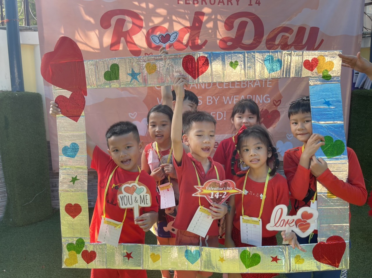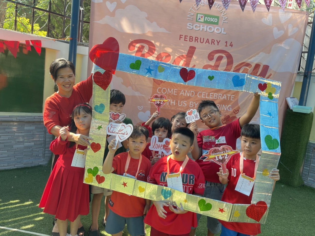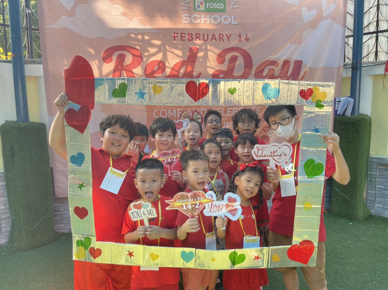 Hôm nay là một ngày tràn ngập tình yêu! Các em học sinh dễ thương cùng tham gia diễu hành với những bộ trang phục màu đỏ xung quanh khuôn viên để thể hiện tình yêu thương. Học sinh tham gia rất nhiều hoạt động chủ đề và cuối cùng các em đọc thơ tự sáng tác kết thúc sự kiện. Toàn trường đã có khoảng thời gian gắn kết tuyệt vời. Chân thành cám ơn quý phụ huynh đã luôn đồng hành và tin tưởng nhà trường. CHÚNG TÔI YÊU CÁC BẠN!