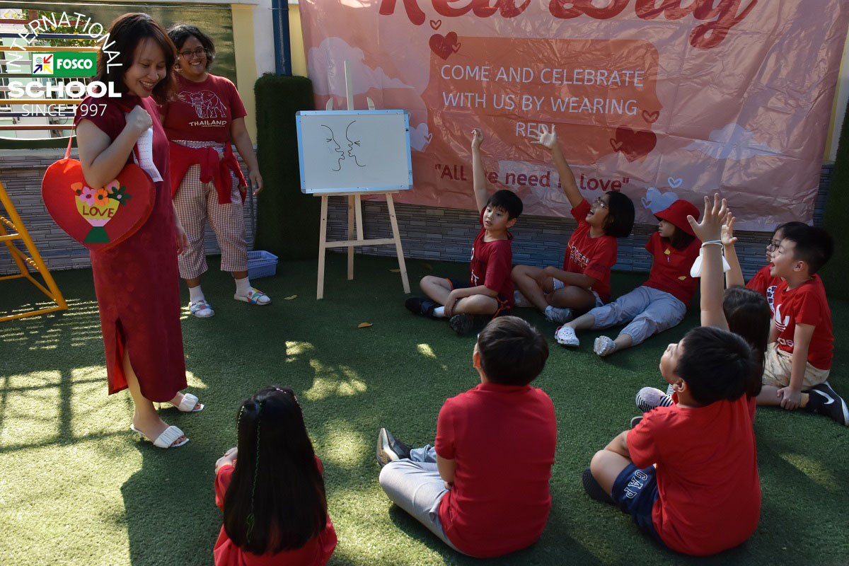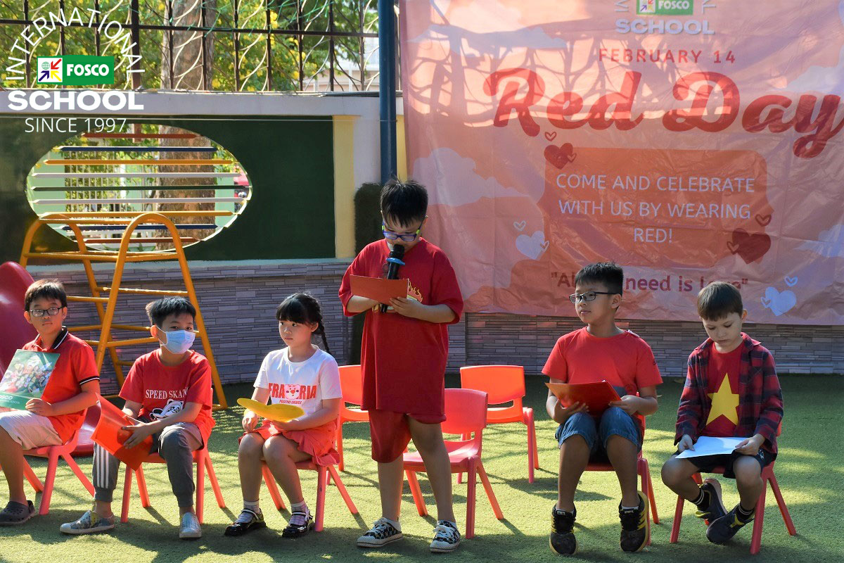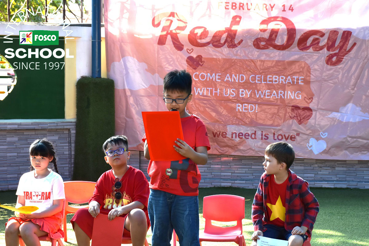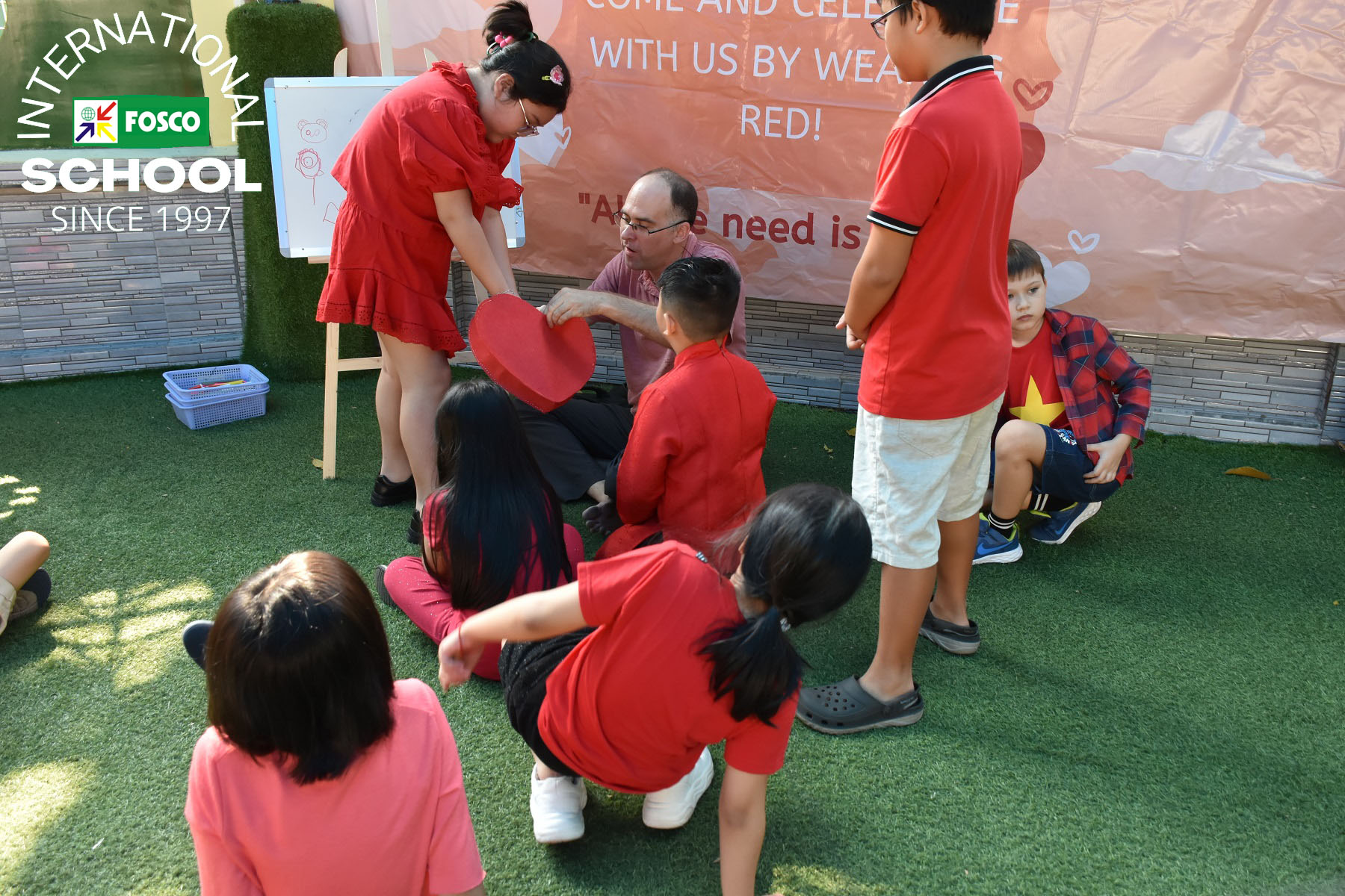 Ngày hội Màu Đỏ hôm nay tràn ngập tình yêu! Tất cả học sinh đều rạng rỡ và lộng lẫy trong trang phục màu đỏ, đoàn kết trong sứ mệnh của chúng ta: thể hiện tình yêu đối với cộng đồng, trường học và thế giới của chúng ta. Các em học sinh Mầm non và Tiểu học đã có một buổi sáng vui vẻ cùng nhau. Đầu tiên, chúng tôi được nghe những bài thơ tự sáng tác rất hay của các em học sinh được chọn từ lớp 1-5. Học sinh đọc thơ tự sáng tác với sự tự tin và những bài thơ của các em thật đáng yêu! Sau đó, chúng tôi chơi trò chơi "Những chiếc ghế âm nhạc: Phiên bản tình yêu" và các học sinh đã hào hứng cổ vũ bạn bè của mình. Học sinh mầm non khi tham gia trò chơi thật dễ thương! Sau cuộc họp nhỏ của chúng tôi, trường mầm non trở lại lớp học của mình và tham gia vào các hoạt động của riêng mình. Học sinh tiểu học đã tham gia tất cả các hoạt động NGÀY HỘI MÀU ĐỎ: Ghim nụ hôn, chụp ảnh xếp hình trái tim, quầy làm thiệp, hộp tri ân! Nhìn chung, đó là một ngày kỳ diệu tràn ngập tình yêu và tiếng cười. Đó là một cách tuyệt vời để kết thúc một tuần ngay trước kỳ nghỉ Tết của chúng tôi! Chúc mọi người ngày hội màu đỏ vui vẻ!