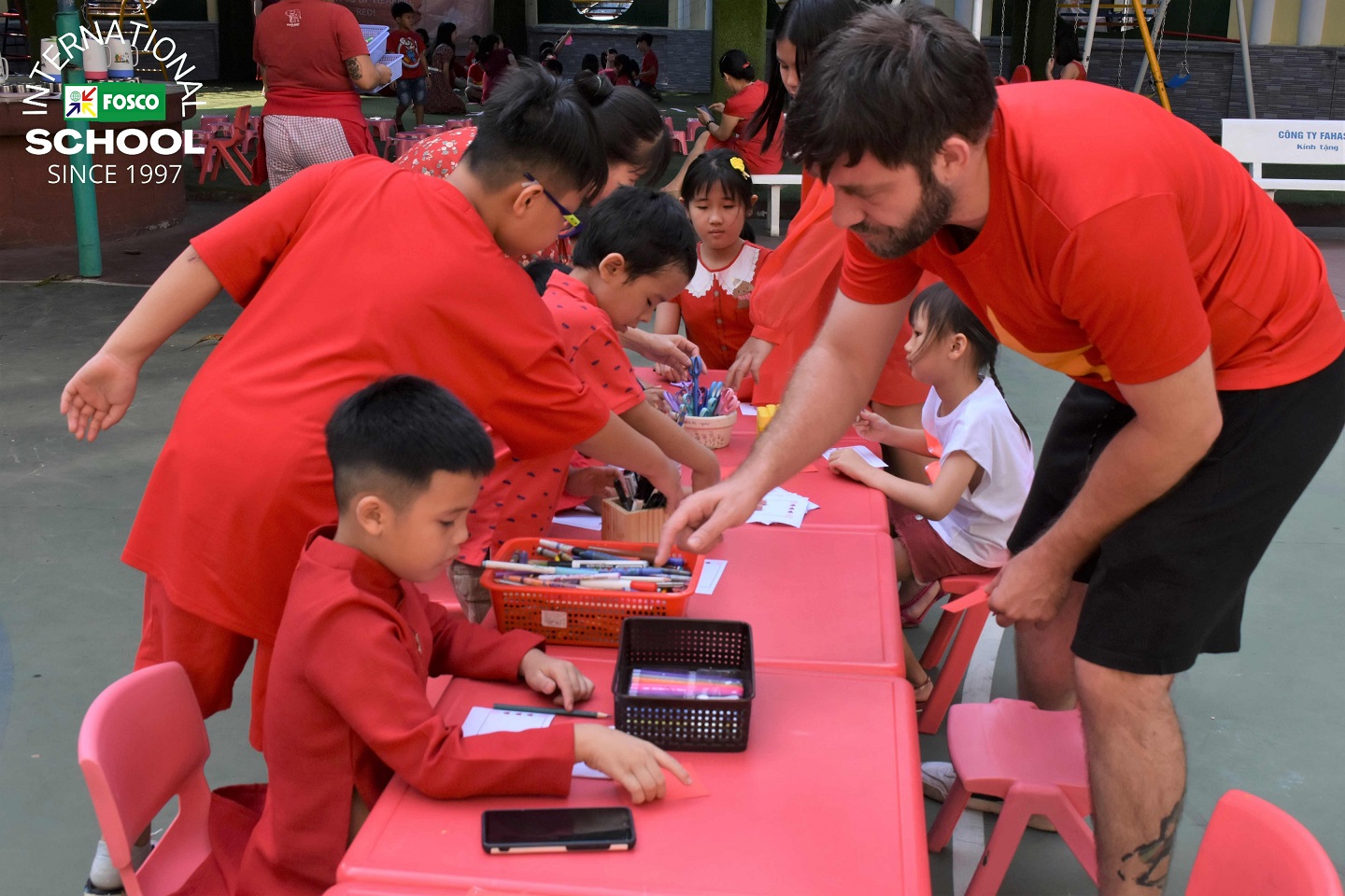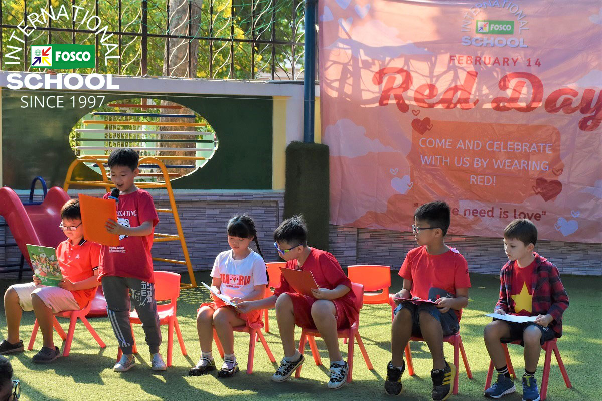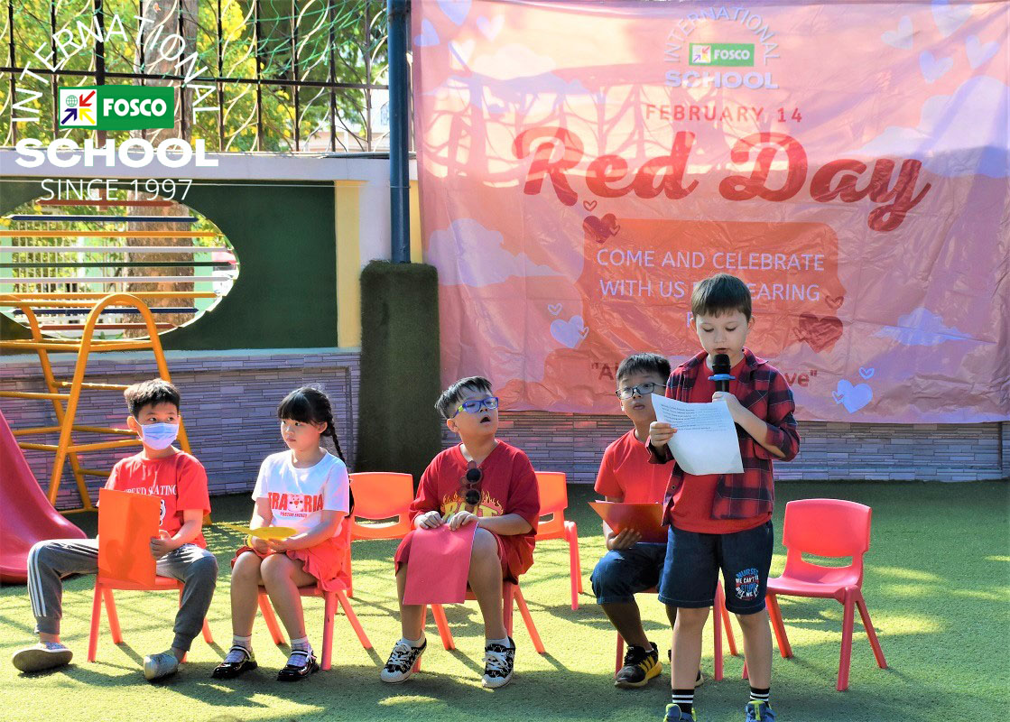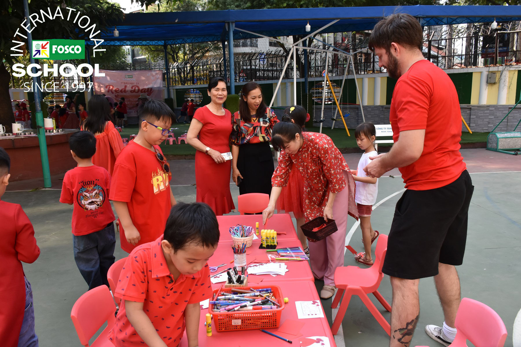Ngày hội Màu Đỏ hôm nay tràn ngập tình yêu! Tất cả học sinh đều rạng rỡ và lộng lẫy trong trang phục màu đỏ, đoàn kết trong sứ mệnh của chúng ta: thể hiện tình yêu đối với cộng đồng, trường học và thế giới của chúng ta. Các em học sinh Mầm non và Tiểu học đã có một buổi sáng vui vẻ cùng nhau. Đầu tiên, chúng tôi được nghe những bài thơ tự sáng tác rất hay của các em học sinh được chọn từ lớp 1-5. Học sinh đọc thơ tự sáng tác với sự tự tin và những bài thơ của các em thật đáng yêu! Sau đó, chúng tôi chơi trò chơi "Những chiếc ghế âm nhạc: Phiên bản tình yêu" và các học sinh đã hào hứng cổ vũ bạn bè của mình. Học sinh mầm non khi tham gia trò chơi thật dễ thương! Sau cuộc họp nhỏ của chúng tôi, trường mầm non trở lại lớp học của mình và tham gia vào các hoạt động của riêng mình. Học sinh tiểu học đã tham gia tất cả các hoạt động NGÀY HỘI MÀU ĐỎ: Ghim nụ hôn, chụp ảnh xếp hình trái tim, quầy làm thiệp, hộp tri ân! Nhìn chung, đó là một ngày kỳ diệu tràn ngập tình yêu và tiếng cười. Đó là một cách tuyệt vời để kết thúc một tuần ngay trước kỳ nghỉ Tết của chúng tôi! Chúc mọi người ngày hội màu đỏ vui vẻ!