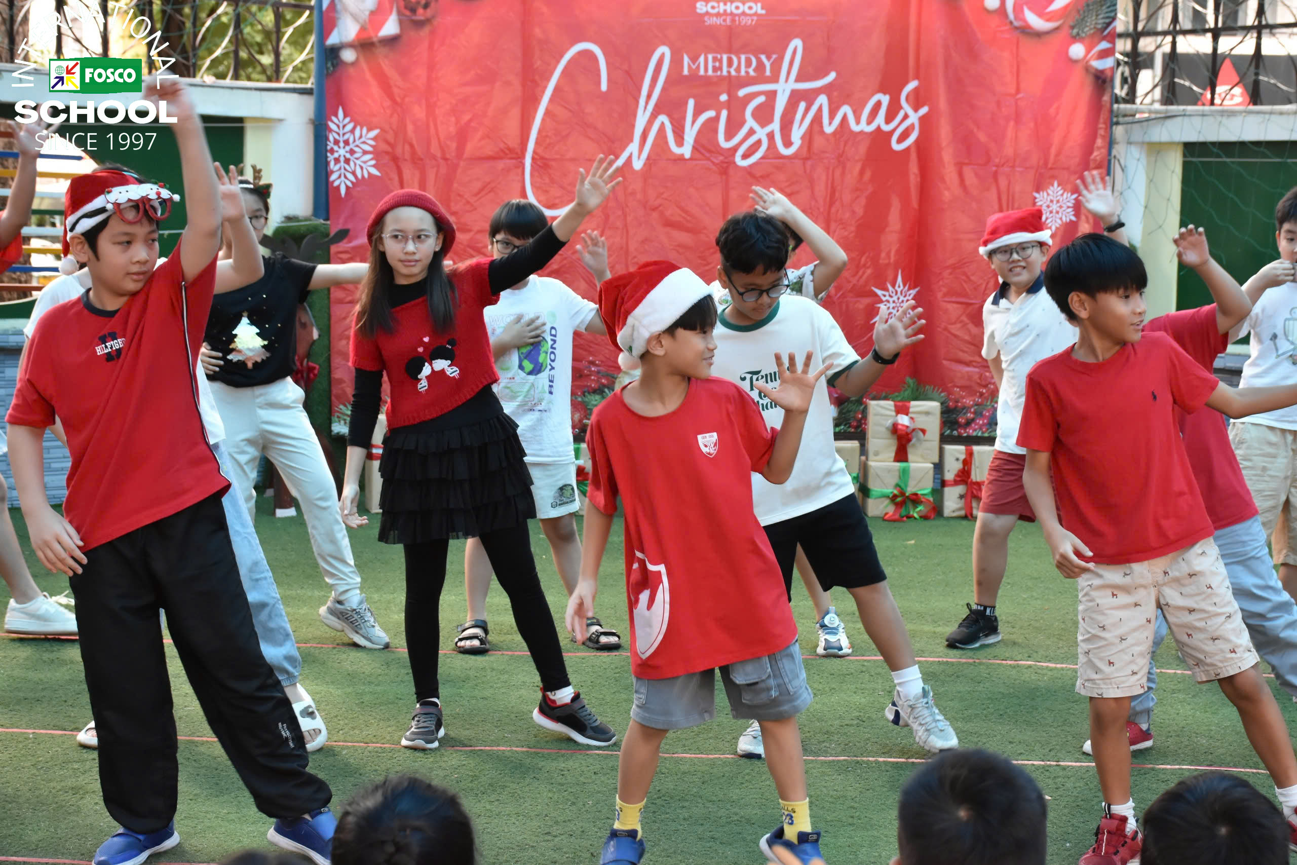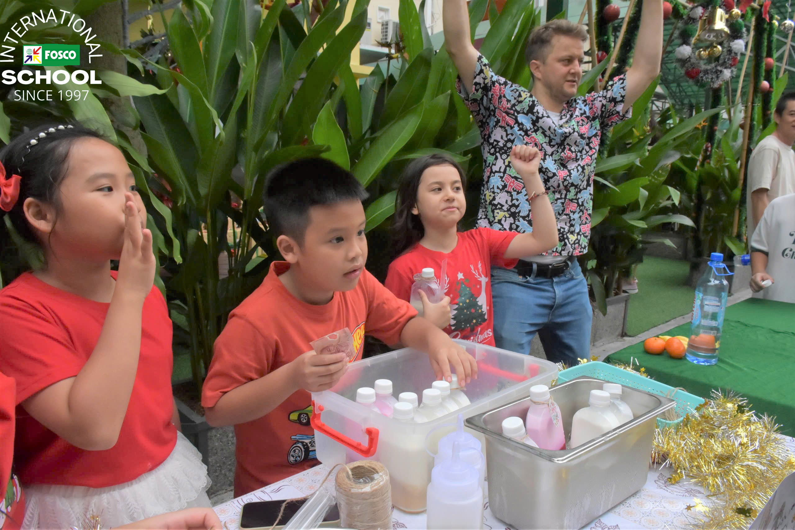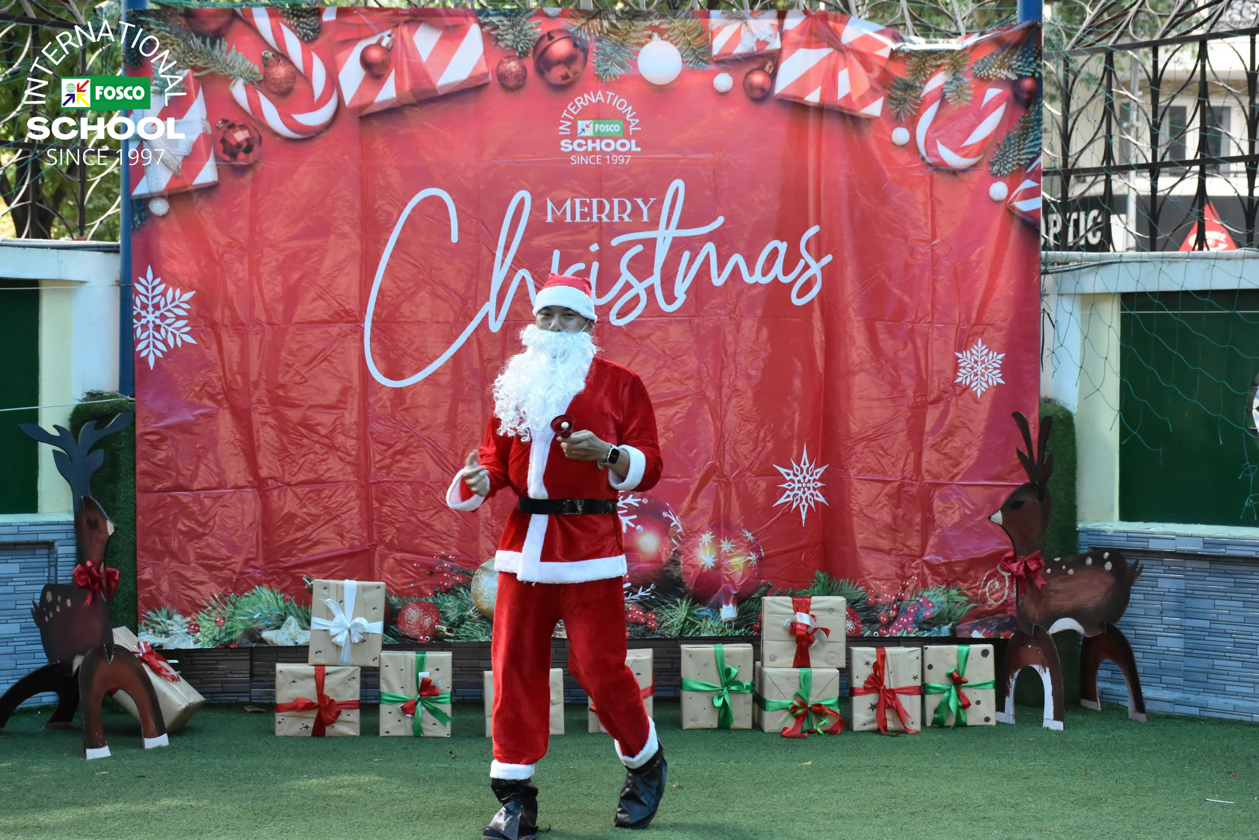 Thật là một ngày kỳ diệu tại FIS! Vào ngày 13 tháng 12, Nhà trường đã tổ chức Chương trình Giáng sinh và Hội chợ gây quỹ thật cảm động . Sự kiện được mở đầu bằng những màn trình diễn thú vị của các em học sinh qua các bài hát, đàn ukulele và những điệu nhảy sôi động theo chủ đề Giáng Sinh. Sau đó là chuyến thăm vui vẻ và đầy bất ngờ của ông già Noel, ông mang đến phước lành và niềm nở khi phát quà cho các em học sinh .