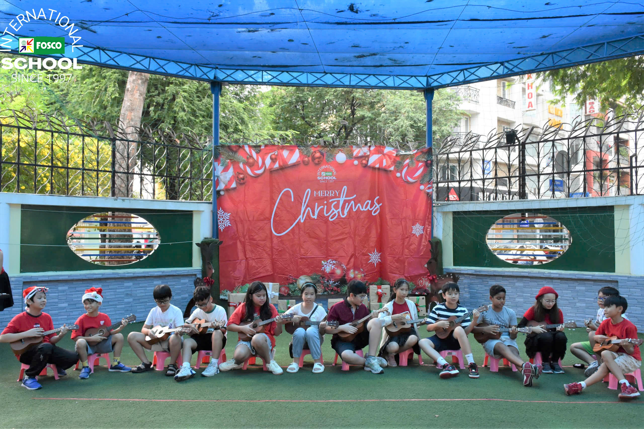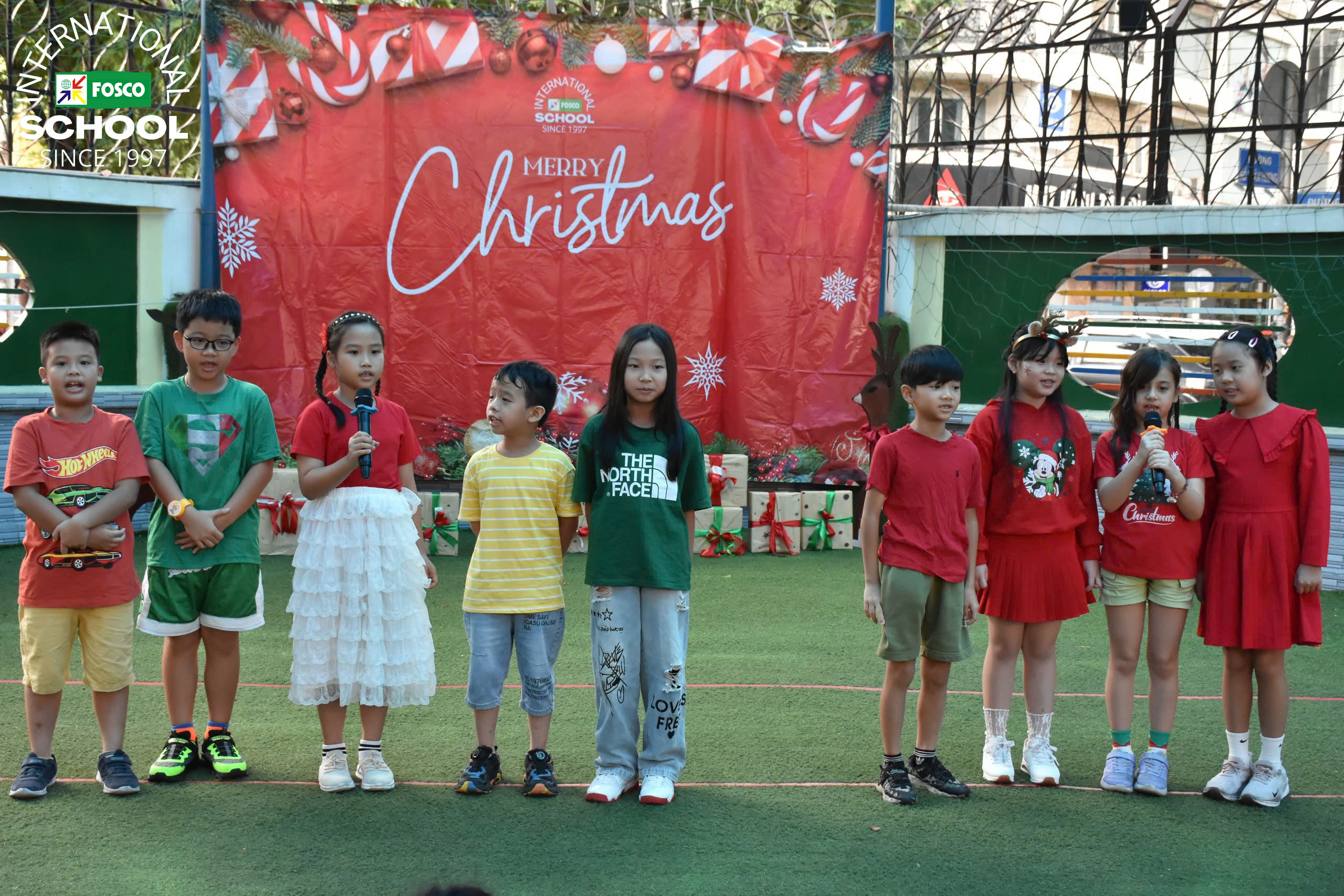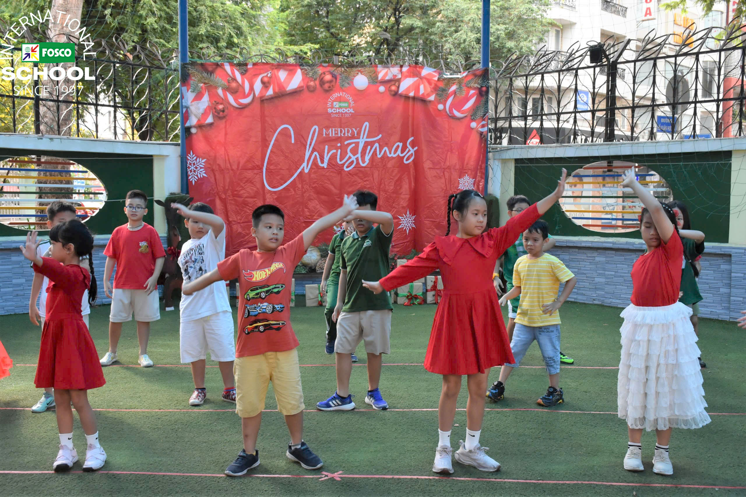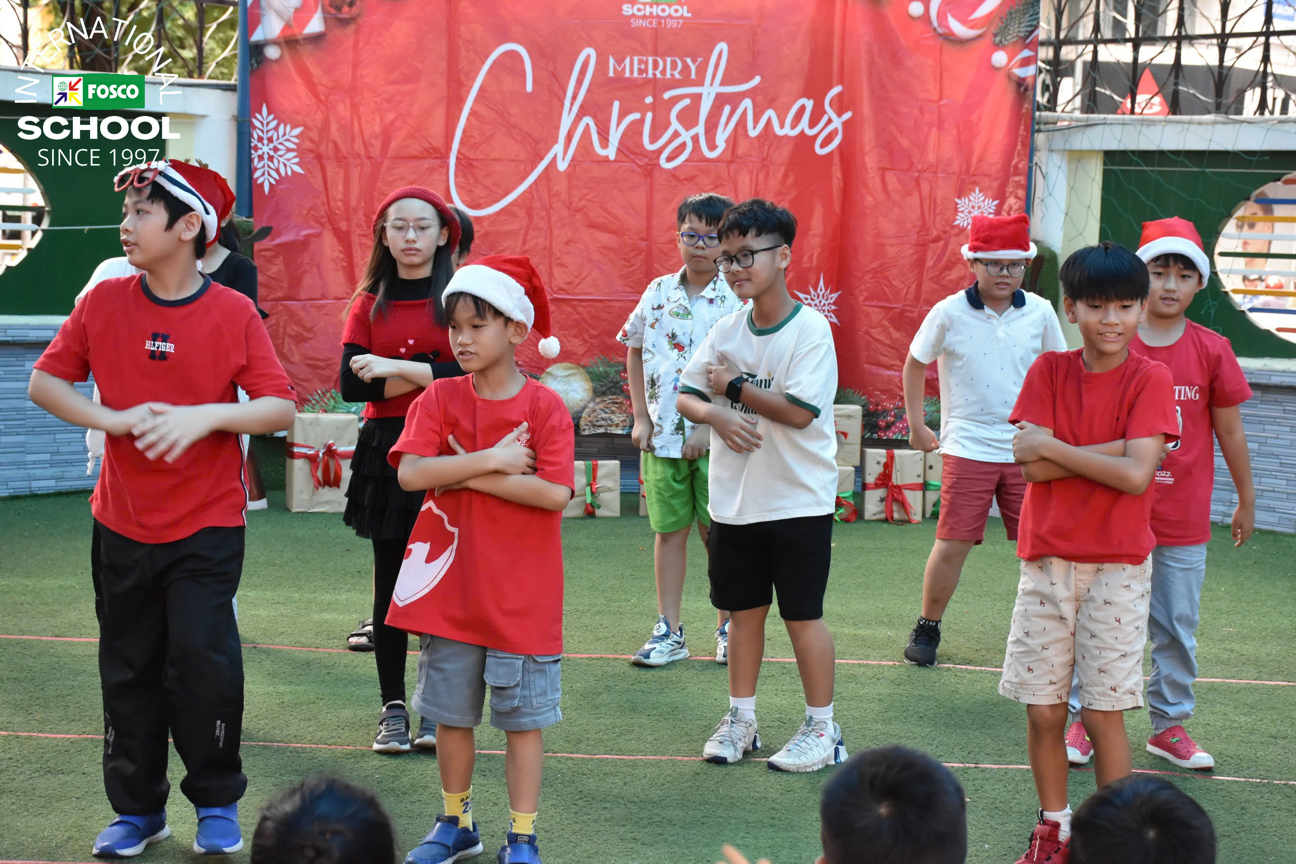 Thật là một ngày kỳ diệu tại FIS! Vào ngày 13 tháng 12, Nhà trường đã tổ chức Chương trình Giáng sinh và Hội chợ gây quỹ thật cảm động . Sự kiện được mở đầu bằng những màn trình diễn thú vị của các em học sinh qua các bài hát, đàn ukulele và những điệu nhảy sôi động theo chủ đề Giáng Sinh. Sau đó là chuyến thăm vui vẻ và đầy bất ngờ của ông già Noel, ông mang đến phước lành và niềm nở khi phát quà cho các em học sinh .