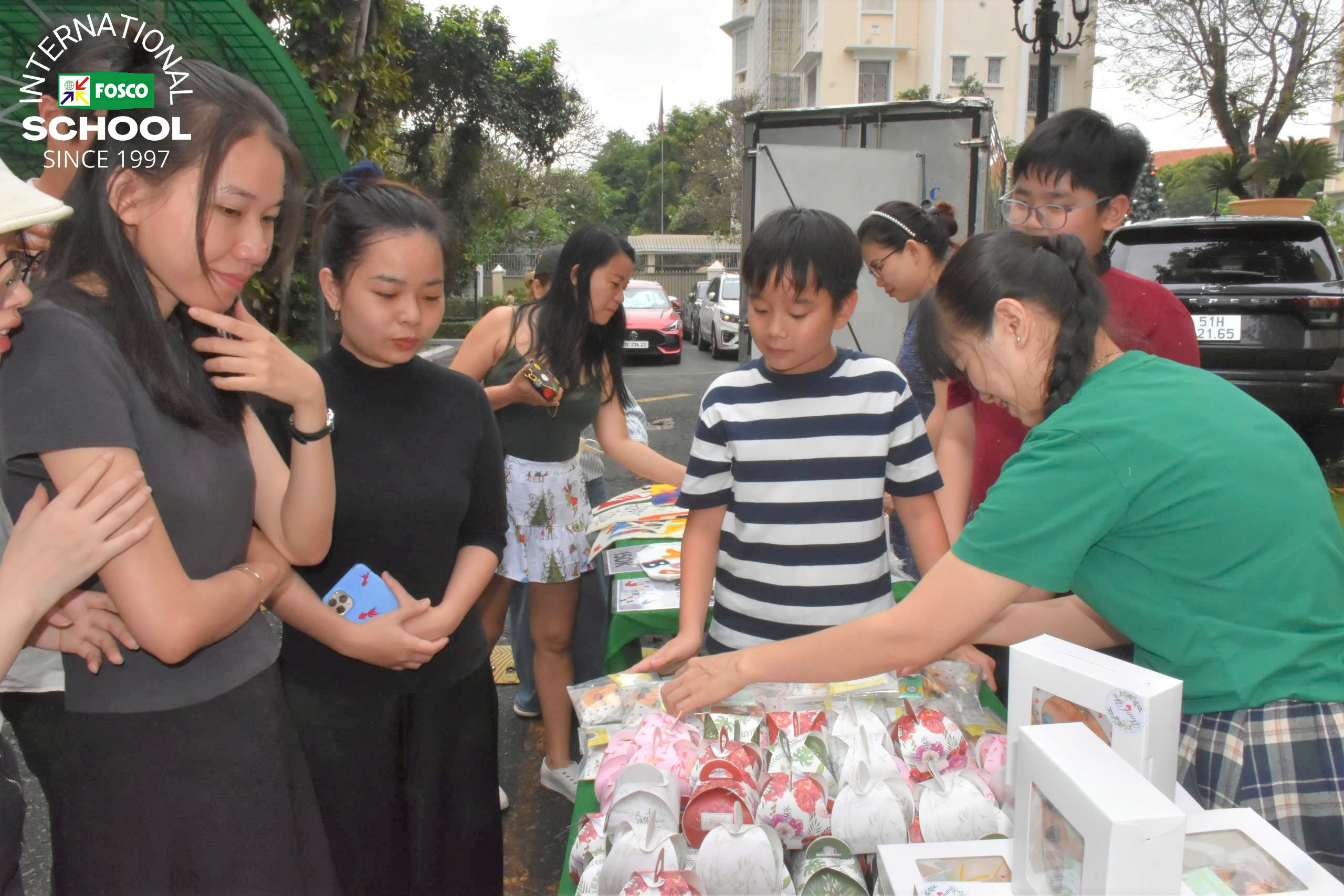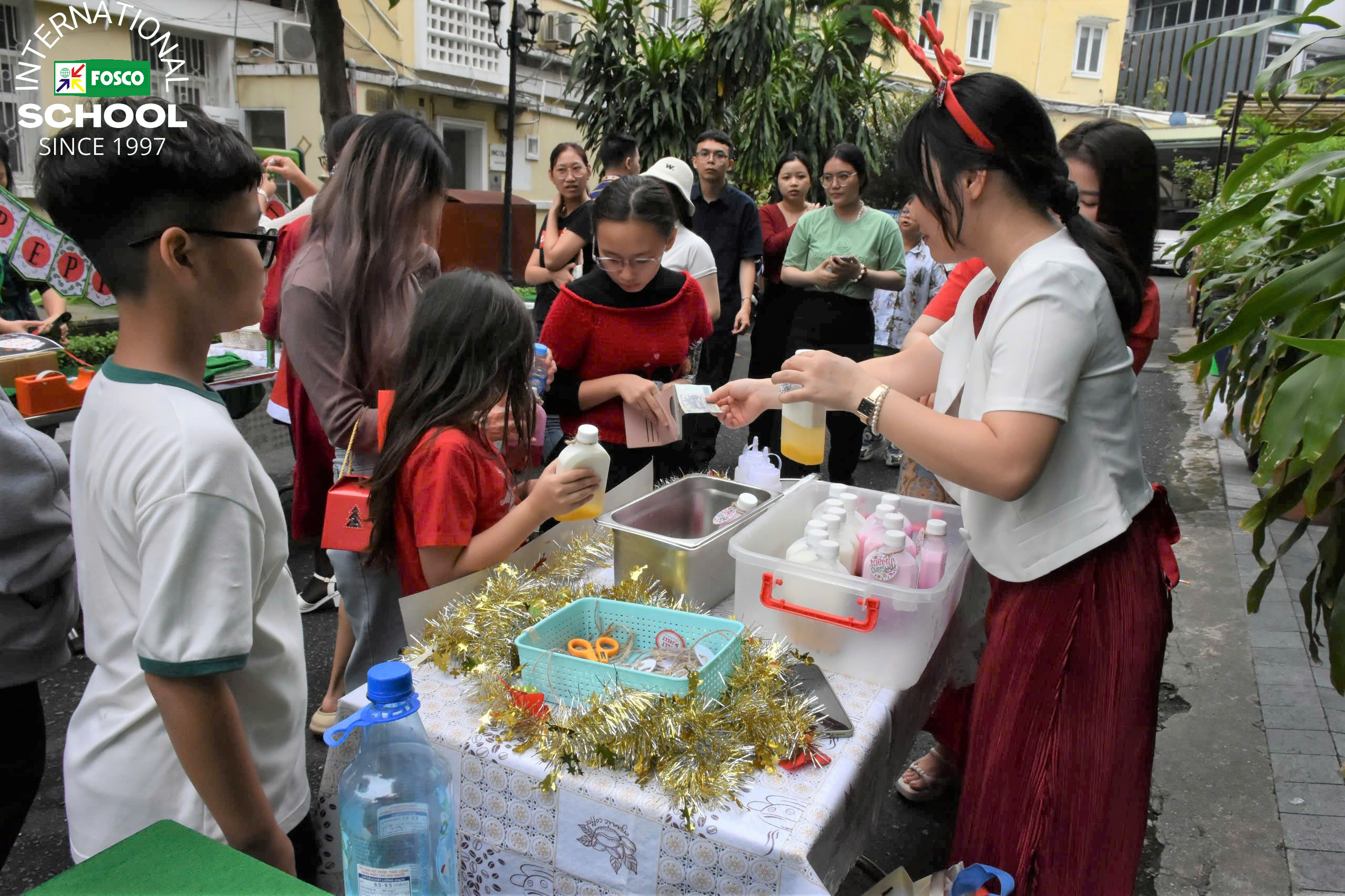 Ngày đó tràn ngập tình yêu và tiếng cười khi bố mẹ và các em được thưởng thức một bữa tiệc tràn ngập những món ngon hấp dẫn. Tuy nhiên, điểm nổi bật nhất là buổi bán hàng gây quỹ, nơi các bậc phụ huynh và khách mời đã hào phóng ủng hộ mục tiêu thiện nguyện của chúng tôi. Từ những món ăn tự làm như bánh quy, trà sữa với thạch trái cây, bánh kẹo bạc hà, bánh tráng cuộn và sô cô la đá xay cho đến những món đồ thủ công của học sinh như Đồ trang trí cây thông, Vòng hoa Giáng sinh bằng sợi, Tất nỉ, Đèn bàn hình cầu, Vòng hoa bằng giấy, mọi ngóc ngách đều náo nhiệt với sự sáng tạo và tinh thần cộng đồng.