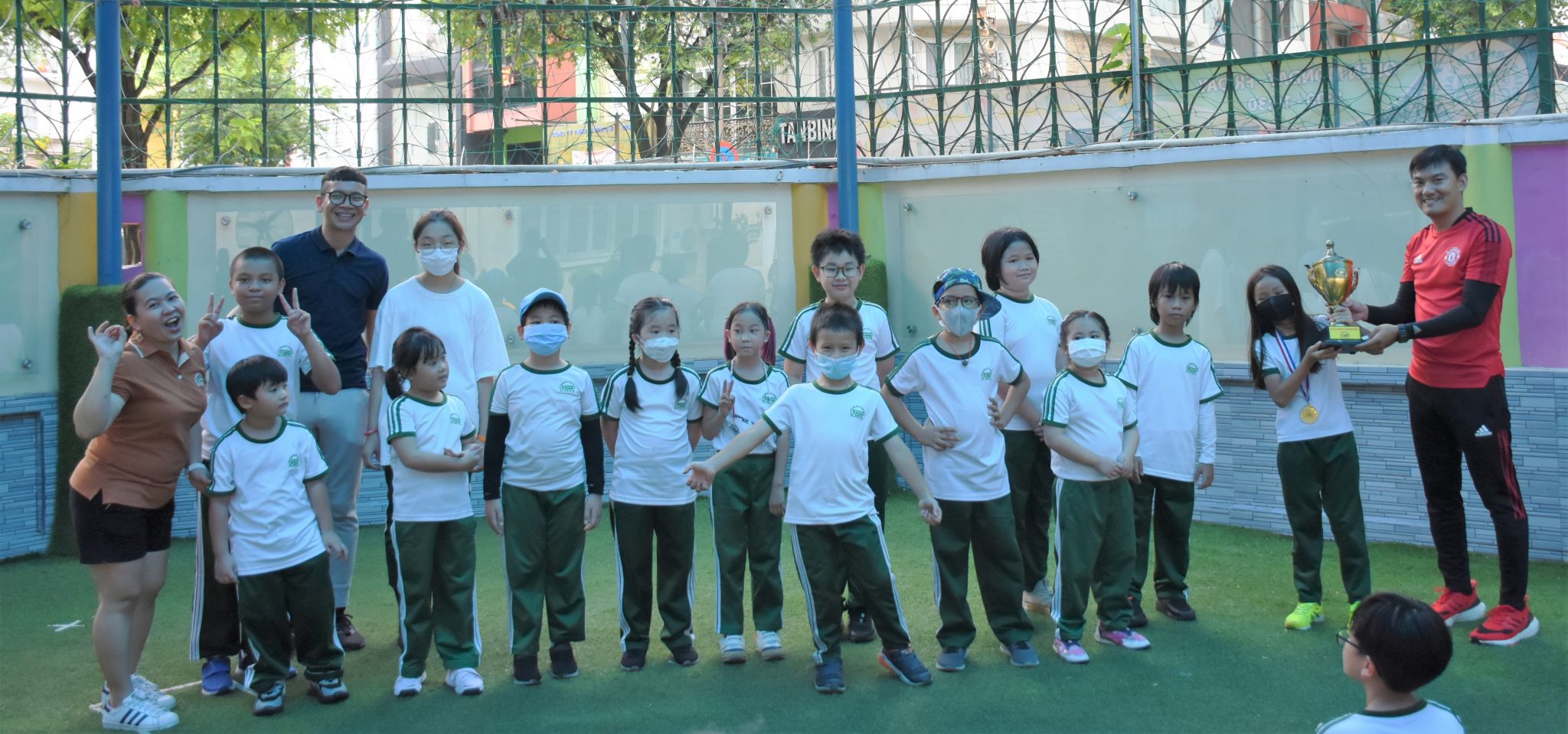 Nhà trường đã tổ chức Thế Vận Hội thể thao vào thứ Sáu, ngày 27/05/2022. Thời tiết hôm đó thật hoàn hảo! Không quá nóng và không quá lạnh, tuyệt vời! Học sinh được chia thành các đội theo màu bao gồm nhiều lứa tuổi khác nhau (lớp Lá đến lớp 5) do một giáo viên chủ nhiệm và một giáo viên trợ giảng dẫn dắt mỗi đội. Cả đội đã phối hợp với nhau để giành chiếc cúp vô địch và luôn được nhắc nhở rằng chìa khoá để thành công đó là sự đoàn kết. Chúng tôi rất mừng khi được nhìn thấy các em học sinh lớp lớn hỗ trợ các em nhỏ tuổi hơn, đây cũng là 1 trong 6 nội dung cốt lõi của nhà trường, các em đã thực hành rất tốt. Chúng tôi vô cùng tự hào về học sinh của trường!