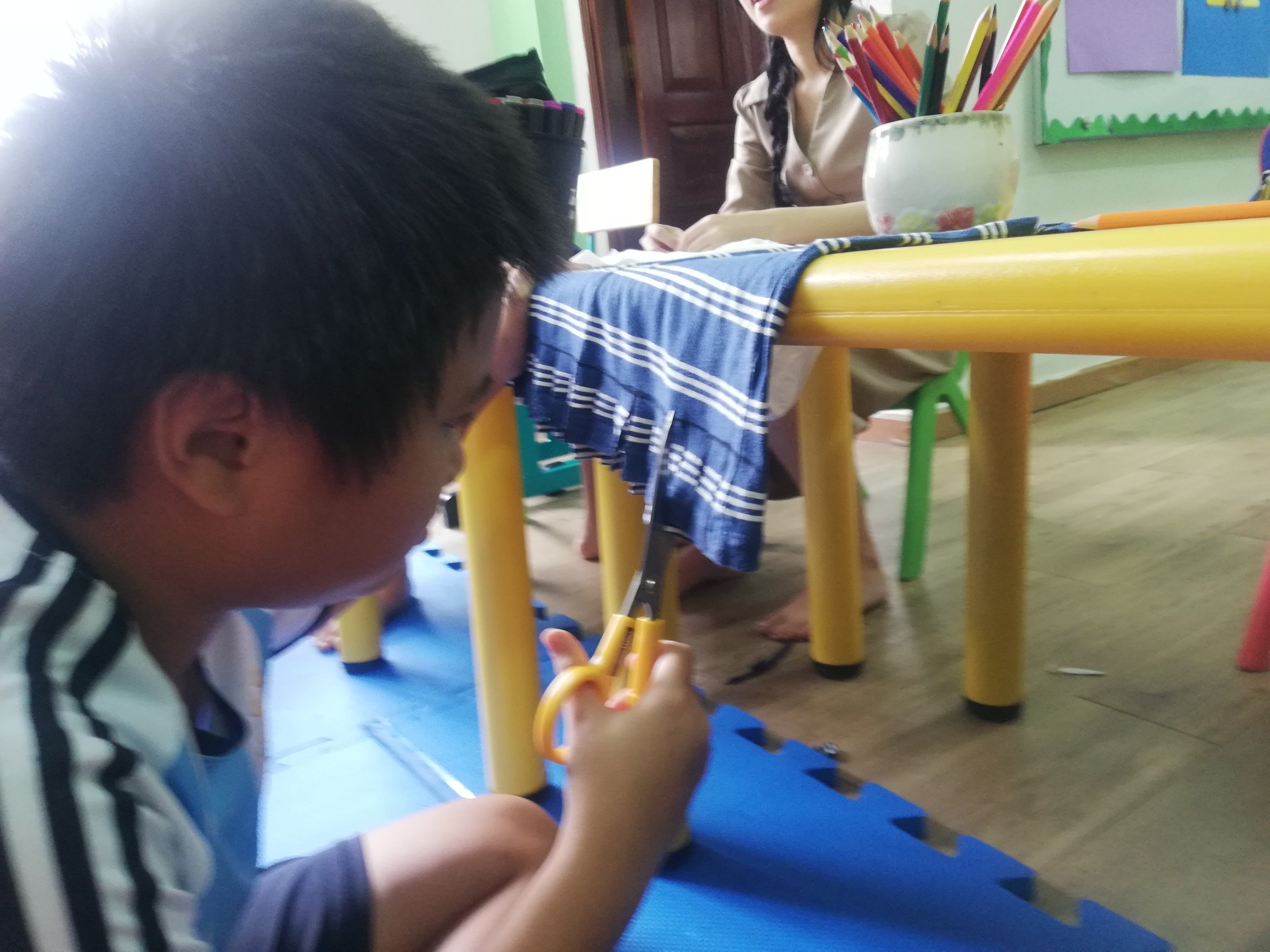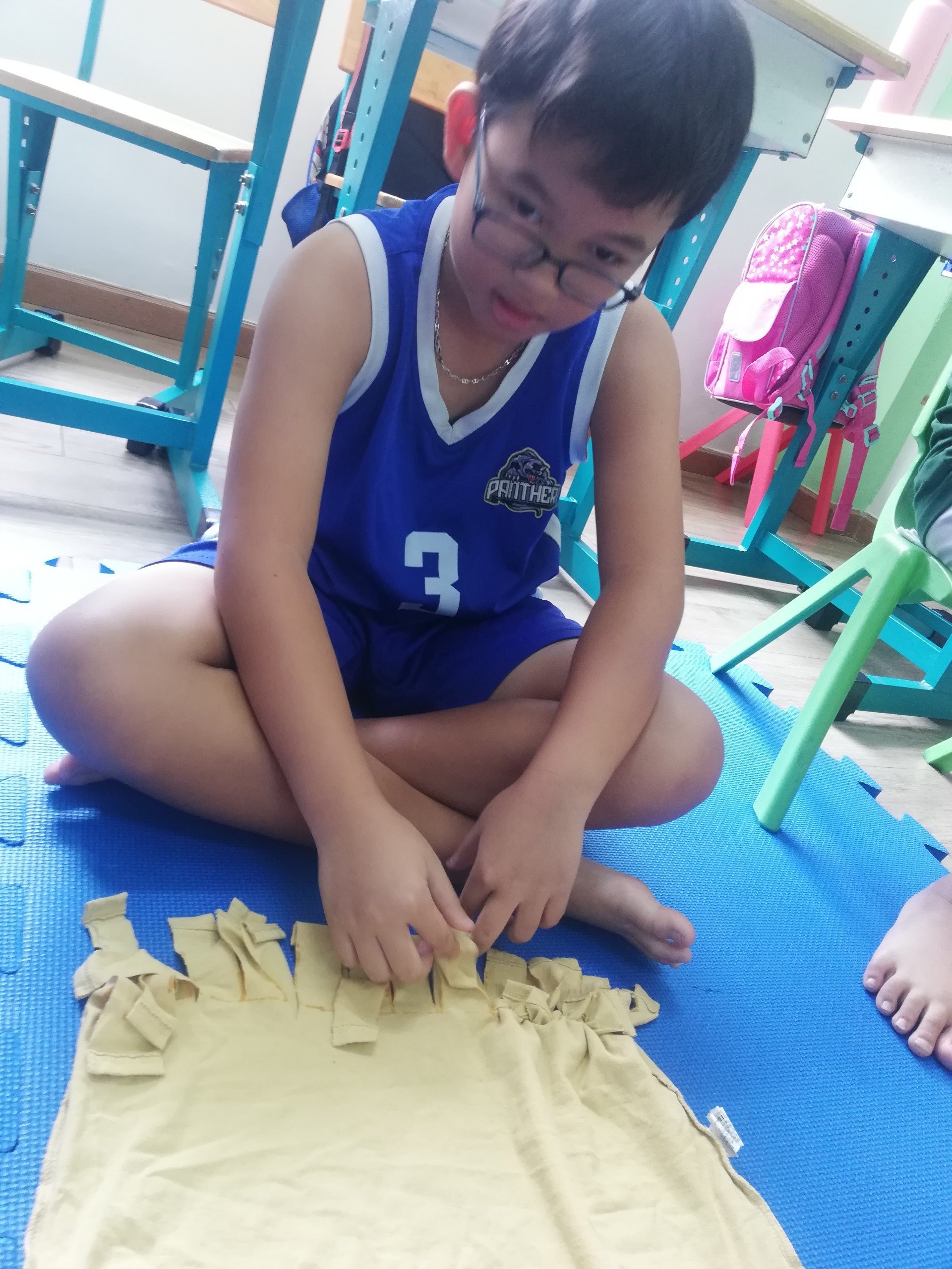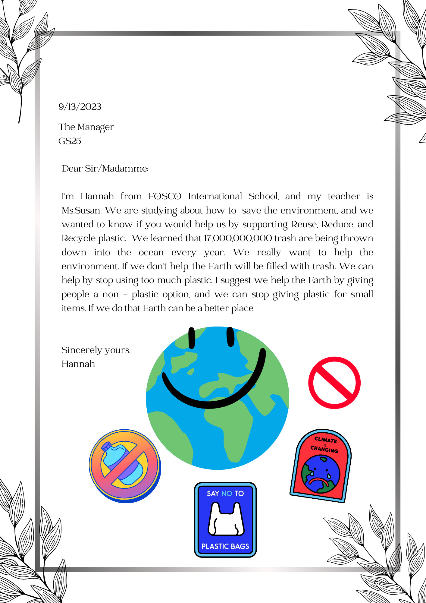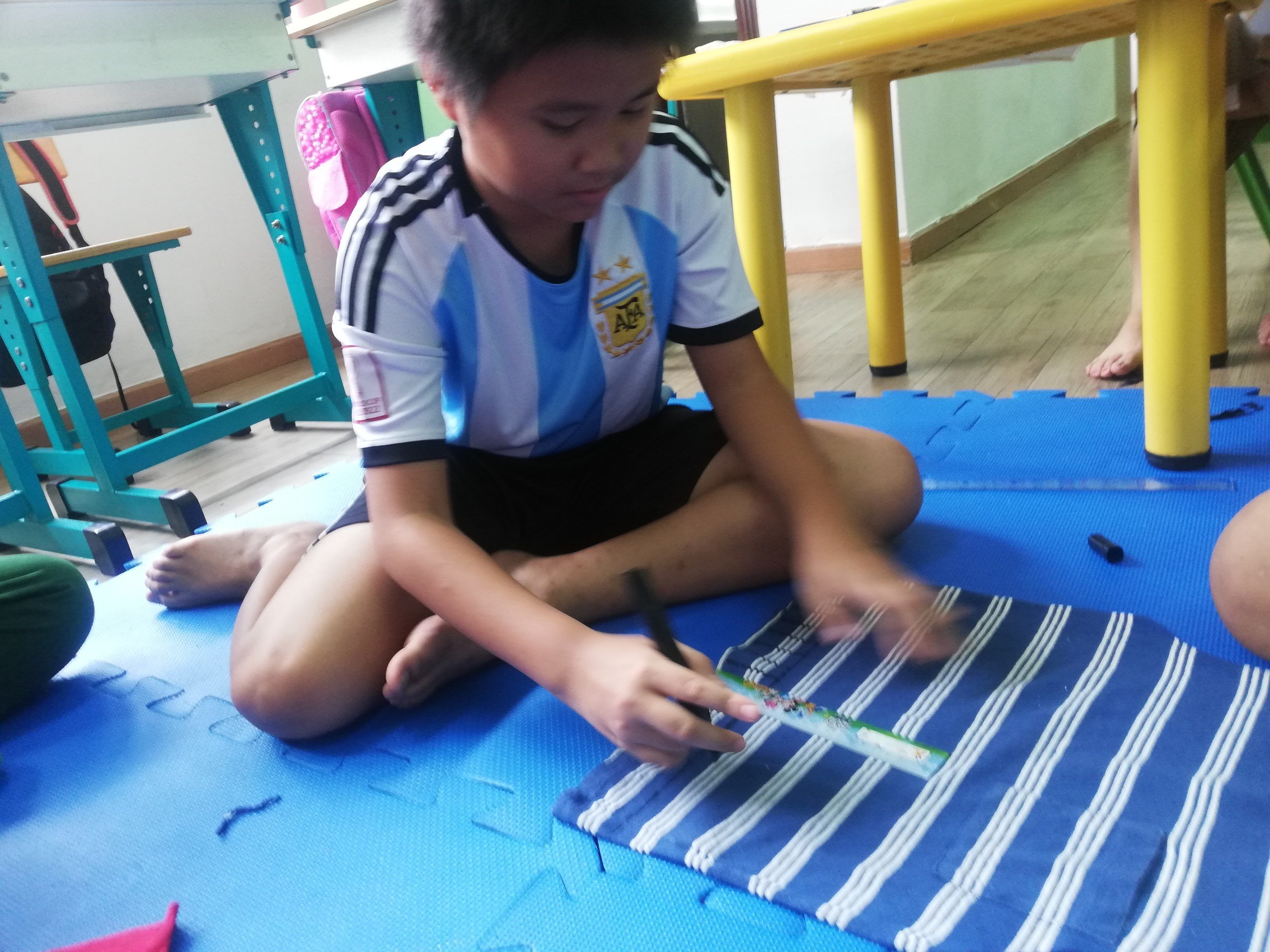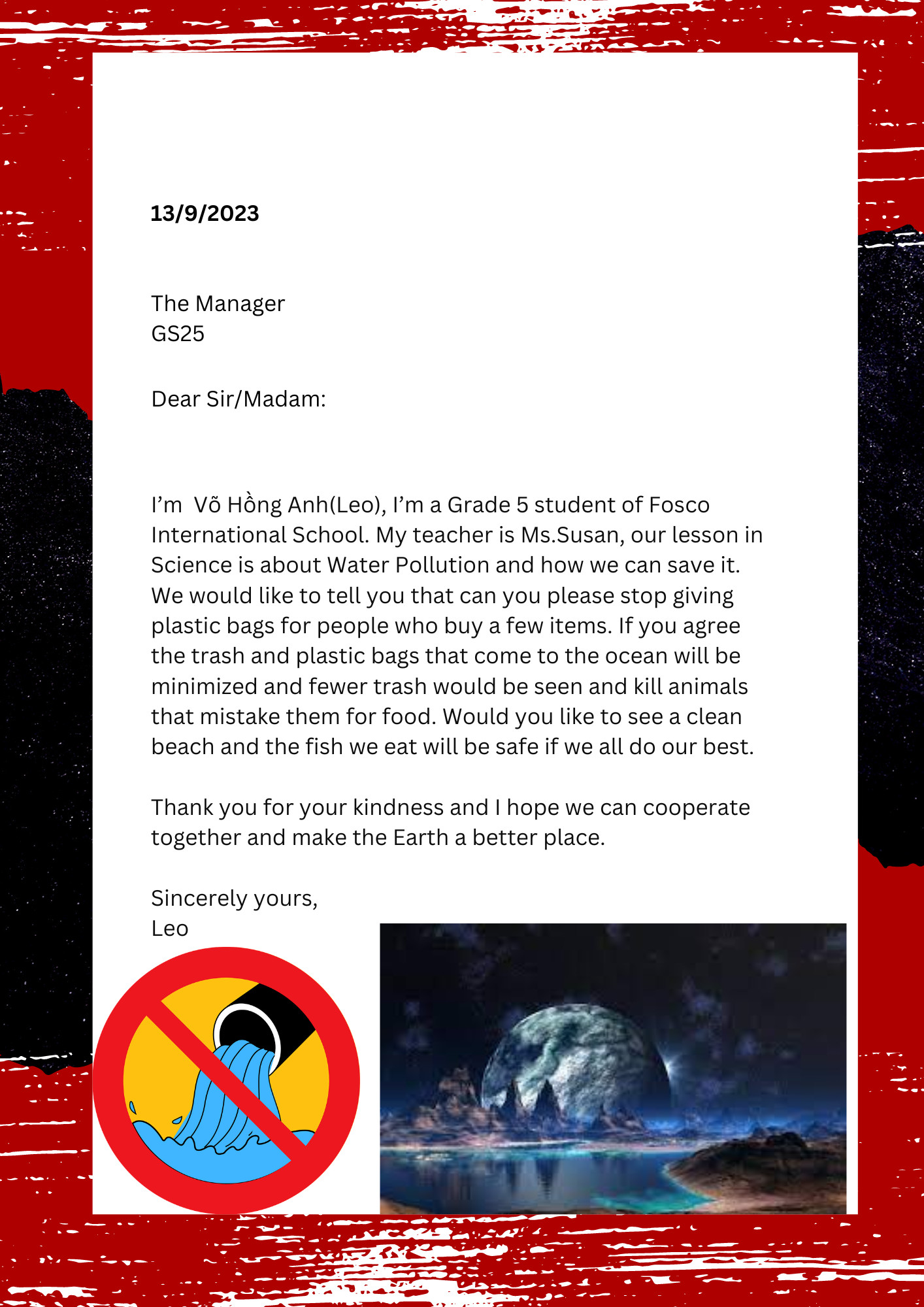 Trong môn Khoa học, Học sinh Lớp 5 đang tìm hiểu về việc con người tác động và thay đổi hệ sinh thái như thế nào. Chúng tôi nhận ra rằng nhiều hoạt động của con người đã và đang gây hại cho môi trường rất nhiều như sử dụng quá nhiều nhựa. Ví dụ, một món đồ nhỏ mua ở cửa hàng tiện lợi, và chúng được đựng trong túi nhựa. Mọi người cũng nên có trách nhiệm sử dụng những chiếc túi có thể tái sử dụng như những chiếc túi tote/ túi vải mà các em đã làm trong lớp để có thể bảo vệ môi trường khỏi những tác động của việc sử dụng quá nhiều đồ nhựa. Các em học sinh lớp 5 làm túi tote bằng cách tái chế áo phông cũ. Các em muốn gửi thông điệp tới mọi người rằng có thể sử dụng túi tote cá nhân, tái sử dụng khi đến các cửa hàng tiện lợi. Học sinh cũng viết thư cho người quản lý các cửa hàng tiện lợi không nên phát ra quá nhiều đồ nhựa. Giáo dục lại người dân về việc không sử dụng nhựa hoặc sử dụng túi tote có thể tái sử dụng thì sẽ giúp ích rất nhiều trong việc bảo vệ môi trường của chúng ta. Đó là một dự án thú vị, hấp dẫn mà các em học sinh rất đam mê. Học sinh đã học cách may vá bằng máy khâu. Những chiếc túi tote khác được làm theo phong cách không đường may bằng cách buộc tua rua ở phía dưới.