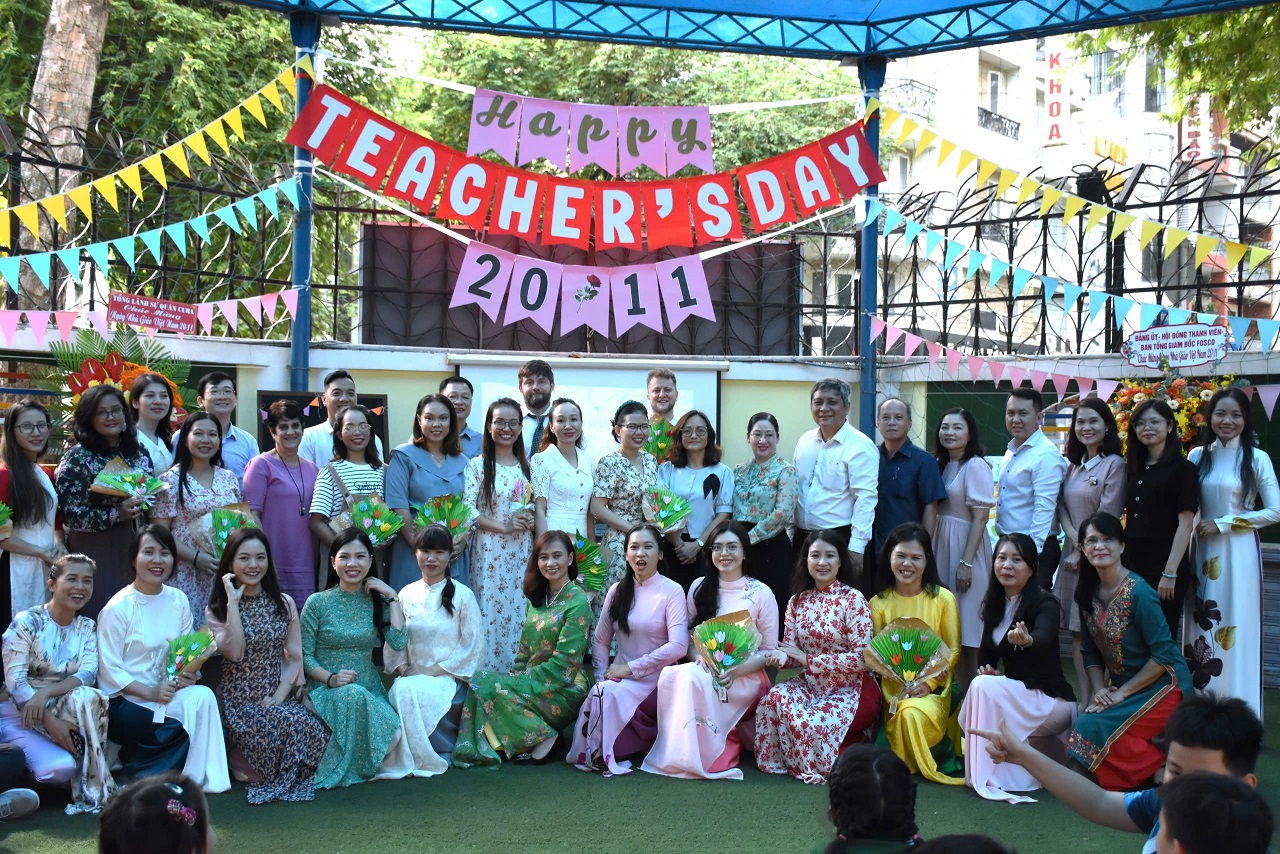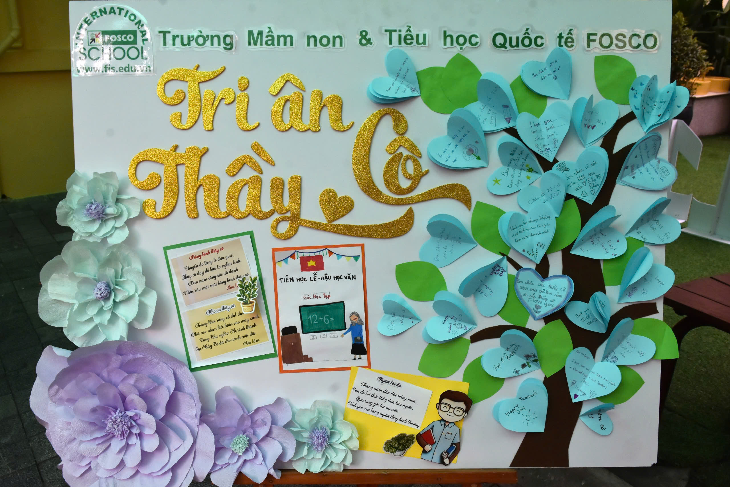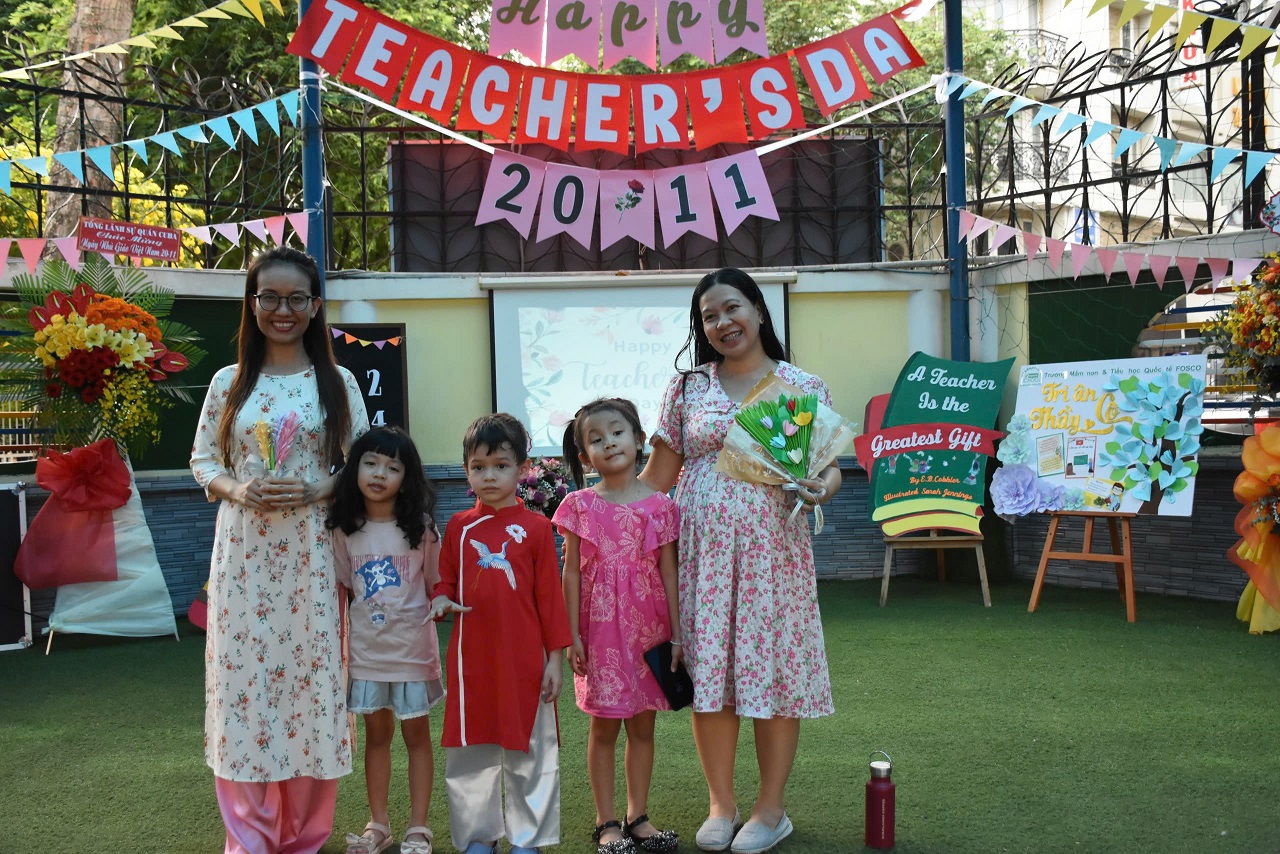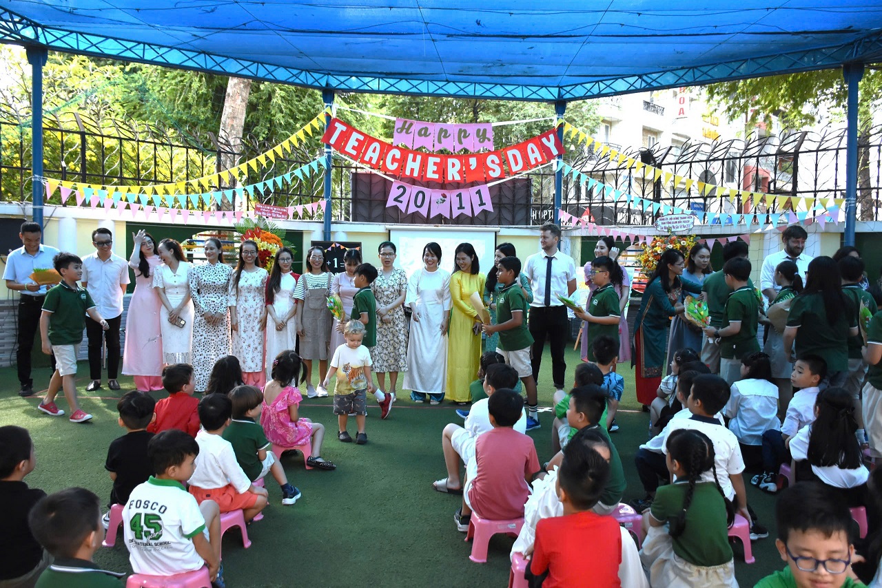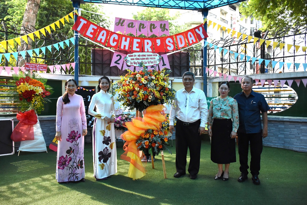 Nhà trường rất vinh hạnh khi được đón tiếp đoàn đại biểu đến từ Ban lãnh đạo Công ty TNHH MTV Dịch vụ Cơ quan Nước ngoài (FOSCO), trưởng đoàn, bà Nguyễn Thị Hương Giang – Tổng Giám đốc, bà Lê Kim Tuyền – Thành viên Hội đồng Thành viên, ông Hồ Trọng Trí – Phó Tổng Giám đốc, ông Nguyễn Nam Thắng – Kiểm soát viên, Đại diện từ các đơn vị trực thuộc, Tổng lãnh sự Cuba, các đối tác, nhà cung cấp đã gửi những lời chúc, hoa và quà tặng tri ân đến Trường Quốc tế FOSCO nhân dịp này. Buổi lễ trở nên đặc biệt hơn với những bài hát và điệu nhảy đáng yêu của các em học sinh Mầm non, Mẫu giáo và Tiểu học cho đến những tấm thiệp, áp phích và bó hoa thủ công do học sinh tự làm tuyệt đẹp. Mỗi khoảnh khắc đều là sự thể hiện tình yêu thương dành cho quý thầy cô của chúng tôi!