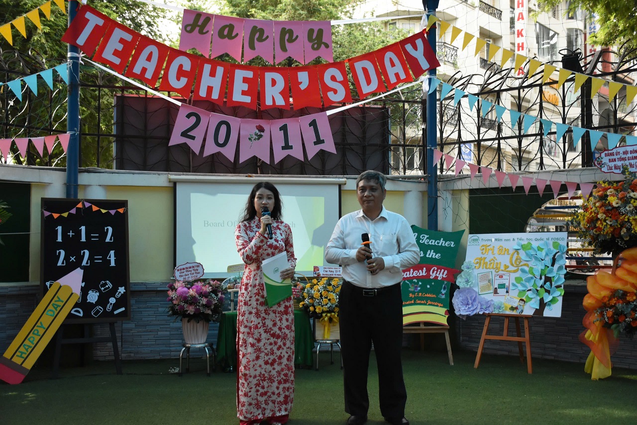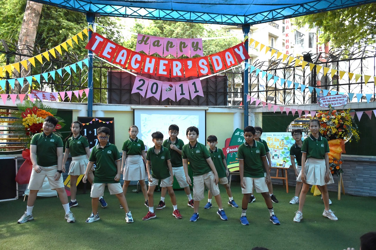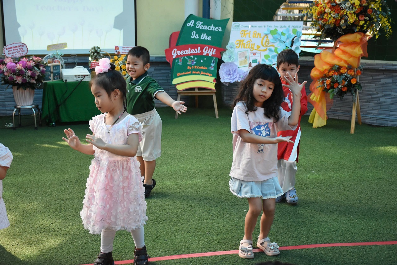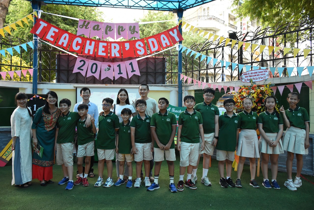 Nhà trường rất vinh hạnh khi được đón tiếp đoàn đại biểu đến từ Ban lãnh đạo Công ty TNHH MTV Dịch vụ Cơ quan Nước ngoài (FOSCO), trưởng đoàn, bà Nguyễn Thị Hương Giang – Tổng Giám đốc, bà Lê Kim Tuyền – Thành viên Hội đồng Thành viên, ông Hồ Trọng Trí – Phó Tổng Giám đốc, ông Nguyễn Nam Thắng – Kiểm soát viên, Đại diện từ các đơn vị trực thuộc, Tổng lãnh sự Cuba, các đối tác, nhà cung cấp đã gửi những lời chúc, hoa và quà tặng tri ân đến Trường Quốc tế FOSCO nhân dịp này. Buổi lễ trở nên đặc biệt hơn với những bài hát và điệu nhảy đáng yêu của các em học sinh Mầm non, Mẫu giáo và Tiểu học cho đến những tấm thiệp, áp phích và bó hoa thủ công do học sinh tự làm tuyệt đẹp. Mỗi khoảnh khắc đều là sự thể hiện tình yêu thương dành cho quý thầy cô của chúng tôi!