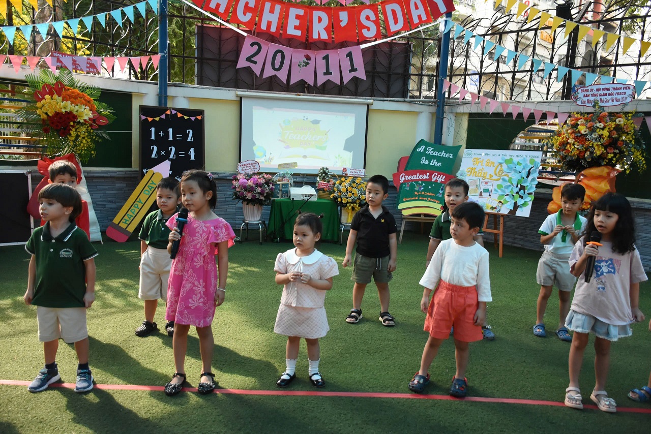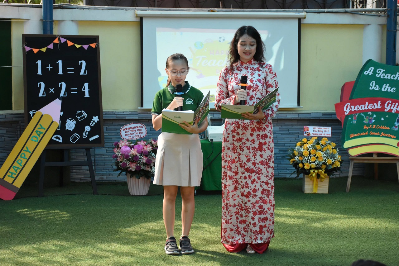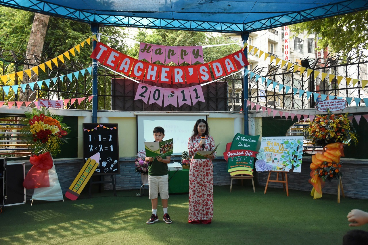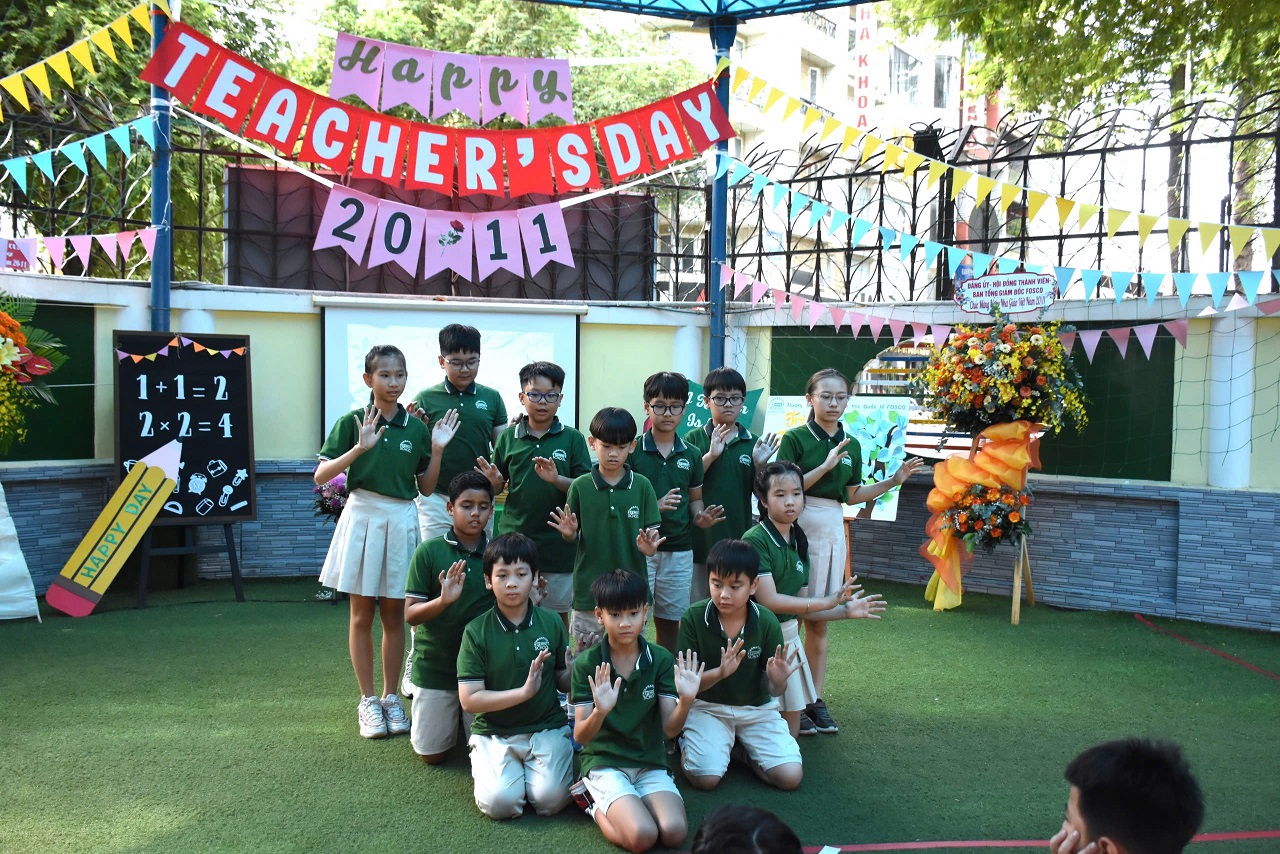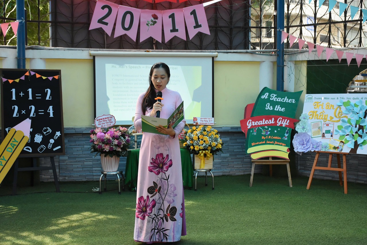 Nhà trường rất vinh hạnh khi được đón tiếp đoàn đại biểu đến từ Ban lãnh đạo Công ty TNHH MTV Dịch vụ Cơ quan Nước ngoài (FOSCO), trưởng đoàn, bà Nguyễn Thị Hương Giang – Tổng Giám đốc, bà Lê Kim Tuyền – Thành viên Hội đồng Thành viên, ông Hồ Trọng Trí – Phó Tổng Giám đốc, ông Nguyễn Nam Thắng – Kiểm soát viên, Đại diện từ các đơn vị trực thuộc, Tổng lãnh sự Cuba, các đối tác, nhà cung cấp đã gửi những lời chúc, hoa và quà tặng tri ân đến Trường Quốc tế FOSCO nhân dịp này. Buổi lễ trở nên đặc biệt hơn với những bài hát và điệu nhảy đáng yêu của các em học sinh Mầm non, Mẫu giáo và Tiểu học cho đến những tấm thiệp, áp phích và bó hoa thủ công do học sinh tự làm tuyệt đẹp. Mỗi khoảnh khắc đều là sự thể hiện tình yêu thương dành cho quý thầy cô của chúng tôi!