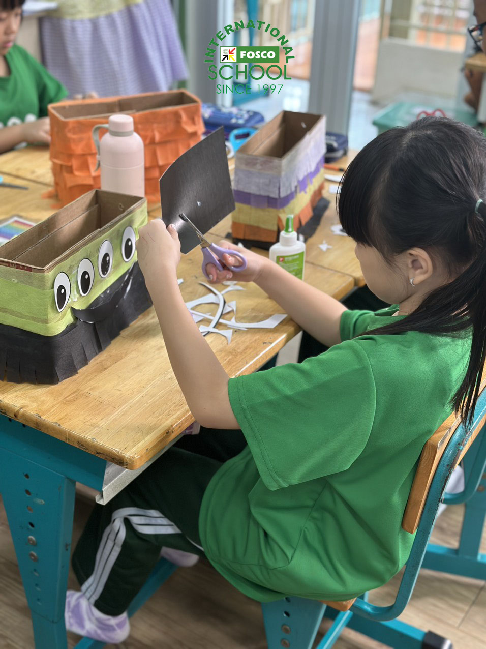 Lớp 2 thích thể hiện khía cạnh sáng tạo của mình! Đối với sự kiện Halloween của chúng tôi vào ngày 31 tháng 10, các EM học sinh đã dành hai ngày để tạo ra những chiếc túi Piñata đựng kẹo của mình. Các em đã tìm hiểu về lịch sử đằng sau phong tục "cho kẹo hay bị ghẹo" và cách sử dụng piñata ở Châu Mỹ Latinh để đựng kẹo. Các em học sinh thông minh của chúng ta đã có rất nhiều niềm vui khi cắt các hình dạng để tạo nên những khuôn mặt vừa ma quái vừa đáng yêu! Tuyệt vời lắm lớp 2 ơi!